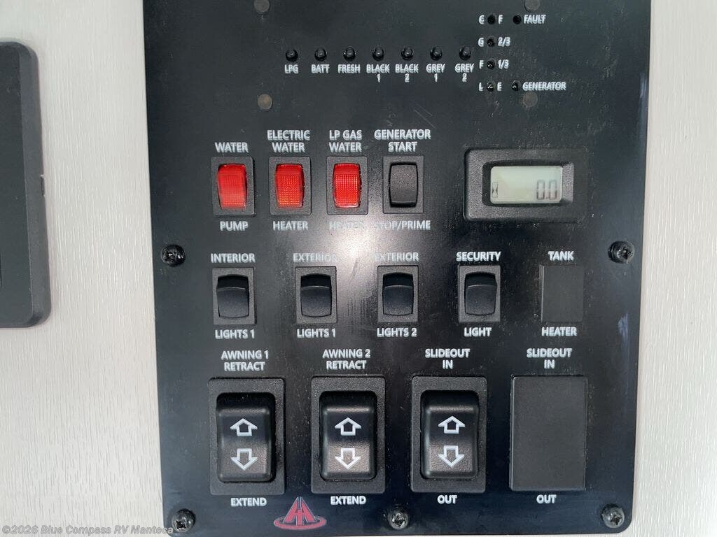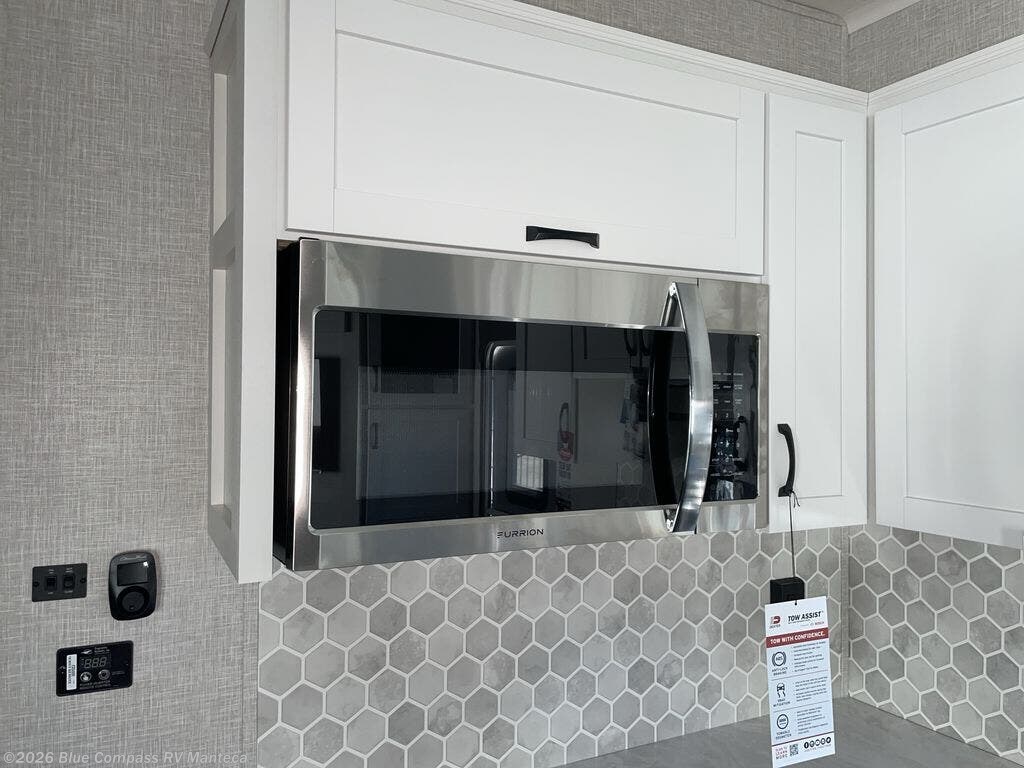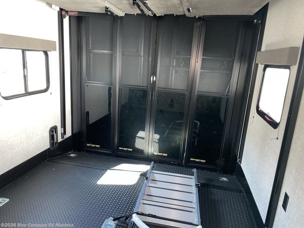 Get ready for outdoor adventures in this spacious toy hauler. Your guests will have the 11' separate garage area with its own half bath, a queen bed with rear convertible sofas, plus an overhead storage area for their things. The main living area includes a large slide out for added space, and here you can relax on the sofa that sits across from the entertainment center and fireplace. The chef will love the U-shaped kitchen counter, 17 cu. ft. 12V refrigerator, and residential oven with a three burner cooktop. You will feel right at home in the front private bedroom with its slide out wardrobe and king bed for all-around comfort.