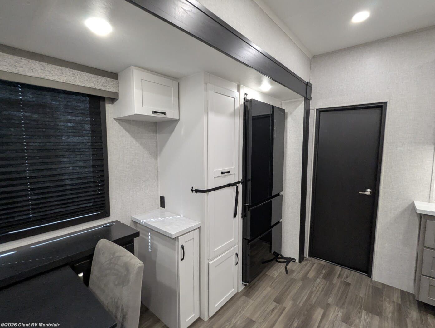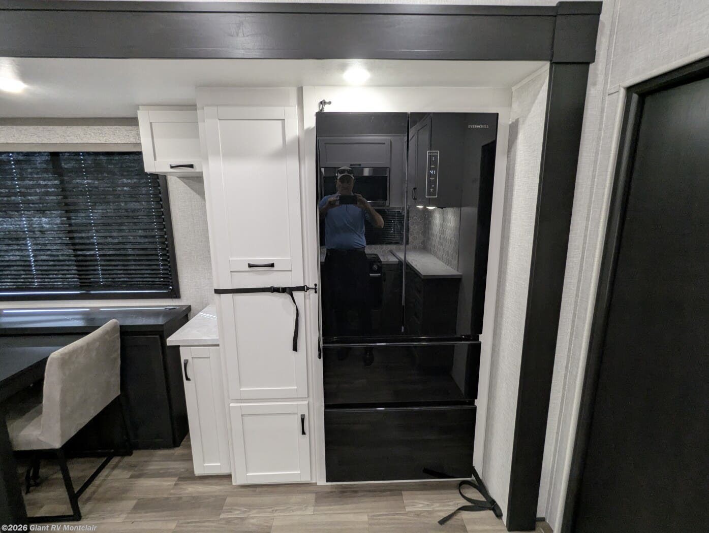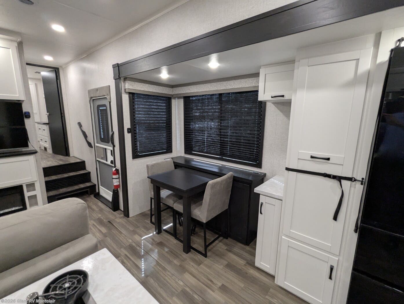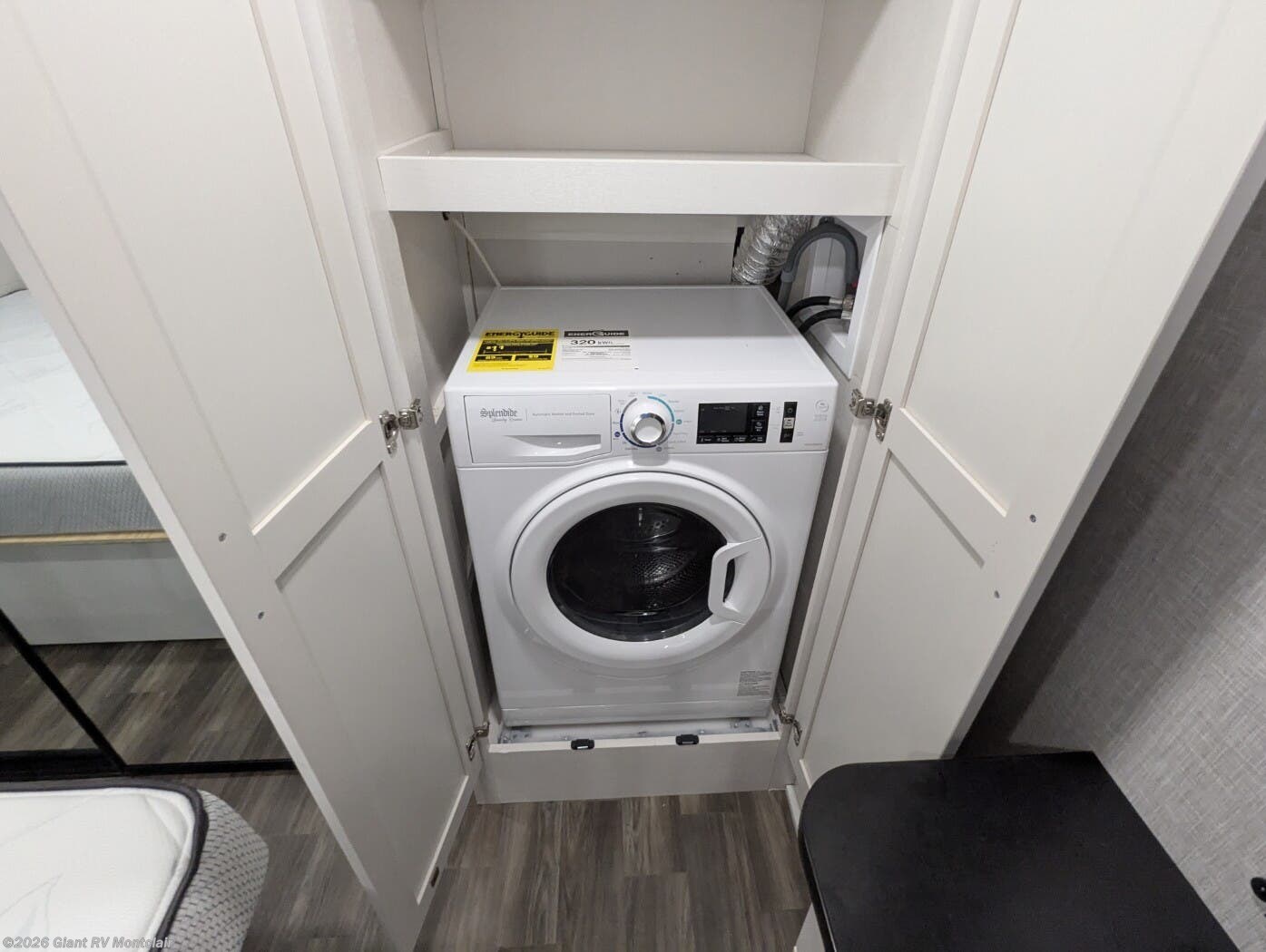 - Modern Kitchen: Features a 16 cu. ft. 12V refrigerator, 21" oven, 30" microwave, and residential sink for gourmet meals.