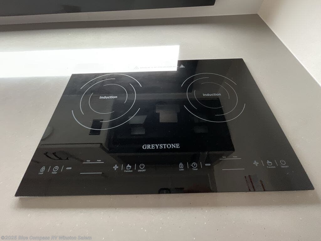 The whole family can join in on the fun with this motorhome! The bunk over cab, the set of bunk beds and king bed slide with power head lift in the rear private bedroom offer comfortable places to sleep. Plus, the hide-a-bed sofa and the booth dinette can also transform into extra sleeping spaces when you're not using the dinette for meals and the sofa for seating to watch a movie on the 50" LED HD Smart Fire TV and fireplace. Everyone will stay squeaky clean with the 30" x 36" shower in the full bathroom, and their bellies full with the two burner induction cooktop and residential refrigerator!