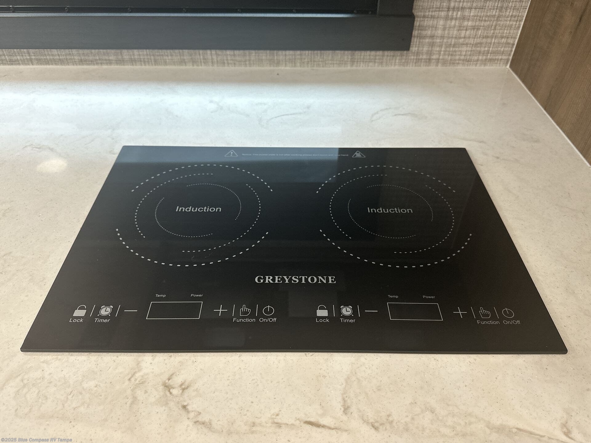The whole family can join in on the fun with this motorhome! The bunk over cab, the set of bunk beds and king bed slide with power head lift in the rear private bedroom offer comfortable places to sleep. Plus, the hide-a-bed sofa and the booth dinette can also transform into extra sleeping spaces when you're not using the dinette for meals and the sofa for seating to watch a movie on the 50" LED HD Smart Fire TV and fireplace. Everyone will stay squeaky clean with the 30" x 36" shower in the full bathroom, and their bellies full with the two burner induction cooktop and residential refrigerator!