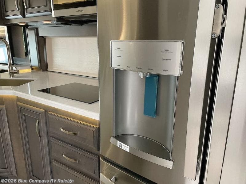 You will be quite impressed with the Jayco Seneca Prestige Super C diesel motorhome! The construction consists of a Stronghold VBL roof, floor, and sidewalls, and the premium Sikkens full-body paint is going to draw attention as you cruise down the highway. The entrance door has the industry's largest travel-view window, and you have four 6V AGM (220Ah) house batteries on a slide out tray for convenience. The JAYCOMMAND control system powered by Firefly will give you access to your coach's functions from the smartphone in your hand, and the matte-finish woodgrain polished porcelain tile flooring has a heated floor mat for extra comfort. The luxury continues on with the addition of the solid-surface countertops and water filtration system, and the 9" Sony® infotainment center with Apple CarPlay® and Android Auto™ as well as the backup and sideview cameras are an excellent contribution to the front cab area.