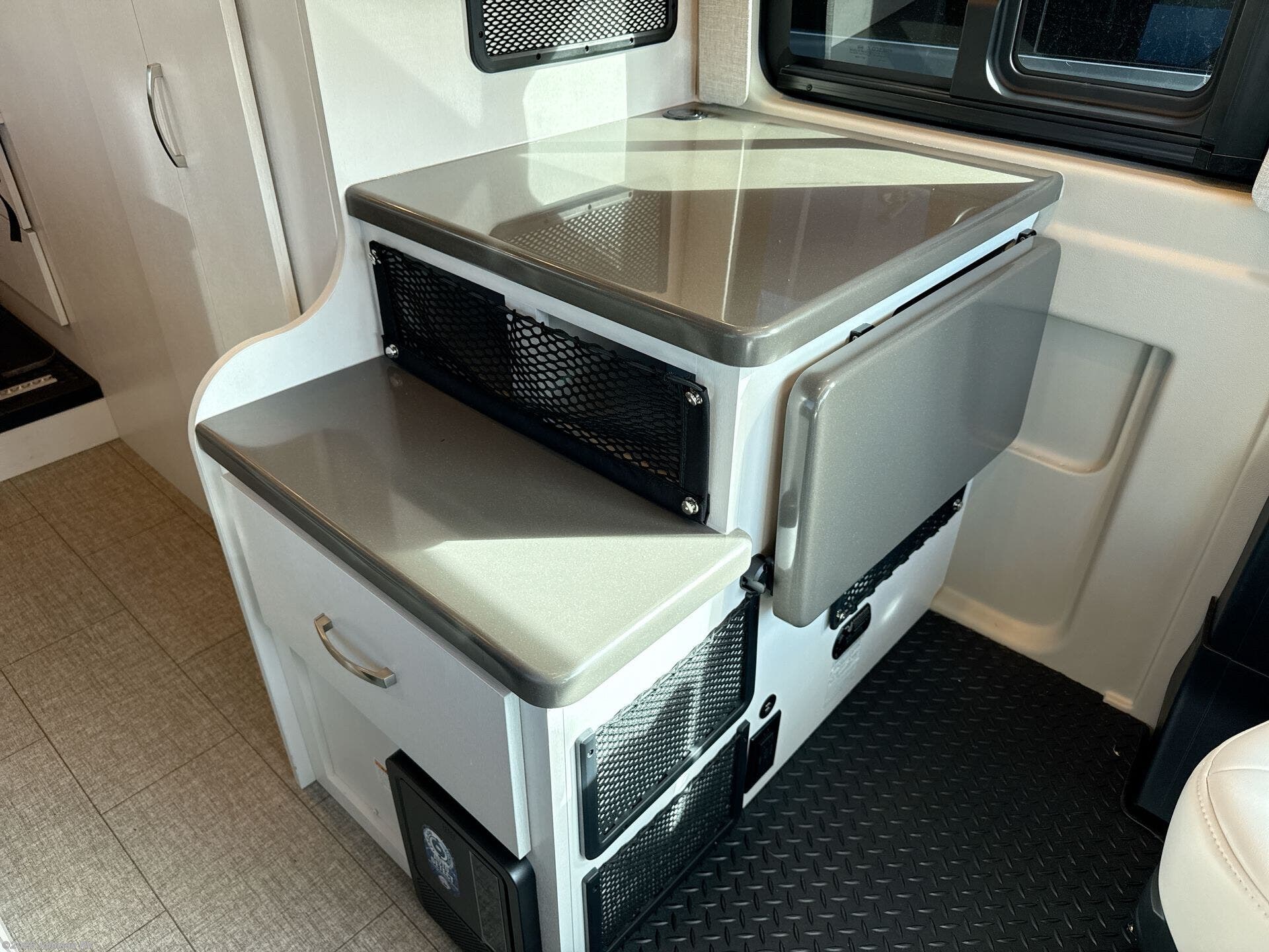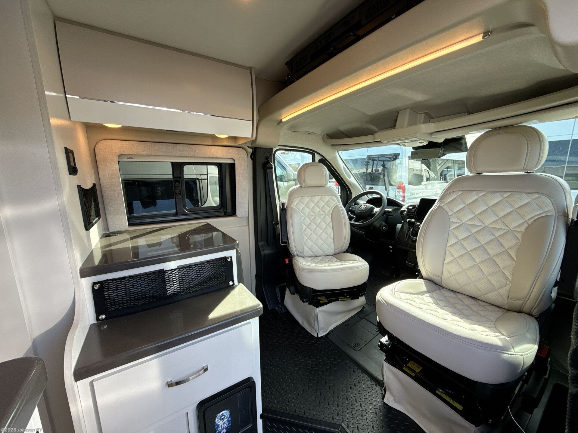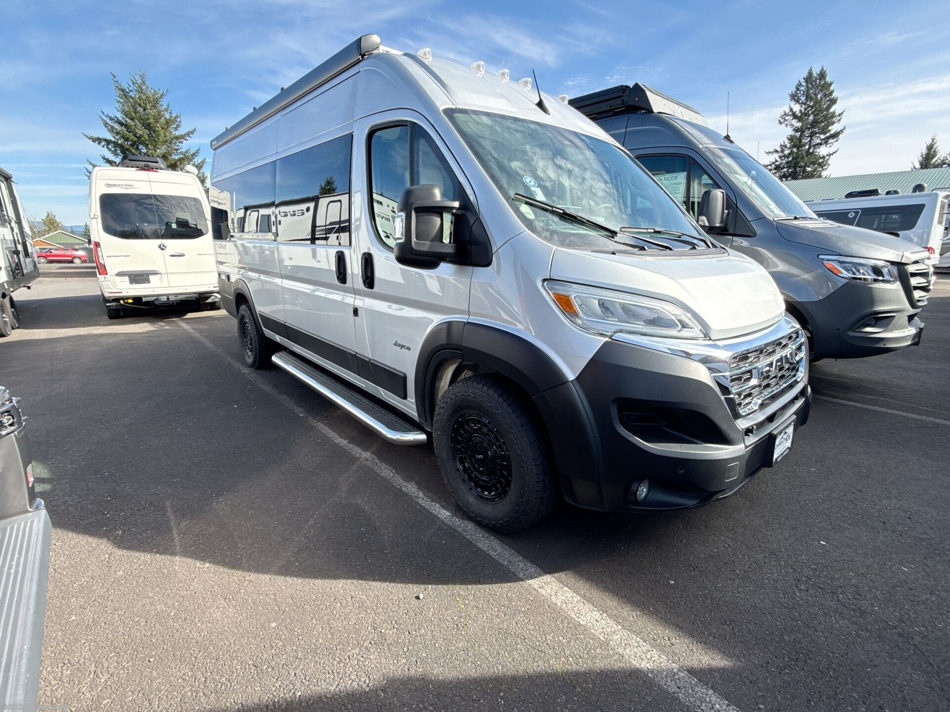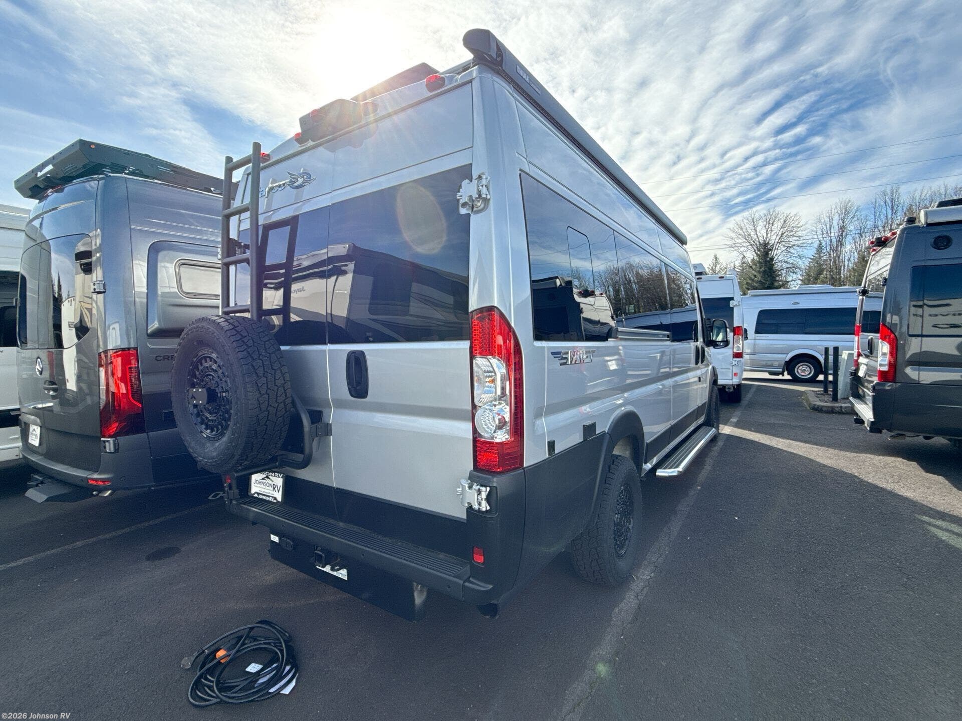 The 2025 Jayco Swift 20E is a Class B motorhome that combines compact design with practical amenities, making it an ideal choice for travelers seeking versatility and comfort. Built on the RAM ProMaster 3500 chassis and powered by a 3.6L V6 engine delivering 276 horsepower, this coach offers a smooth and responsive driving experience. Inside, the Swift 20E features a thoughtfully designed living space with a rear Murphy bed measuring 59" x 73", providing a comfortable sleeping area that can be stowed away to maximize interior space. The well-equipped kitchen includes a two-burner gas cooktop, convection microwave, and a 3.0 cu. ft. DC refrigerator, making meal preparation convenient on the road. The wet bath offers a shower with magnetic curtain surround, toilet with foot flush, and a medicine cabinet with mirror, ensuring the comforts of home wherever you travel. Additional amenities such as the 13-foot Thule® armless patio awning with LED light strip, Tecnoform® European-style high-gloss cabinetry, and JBL® Flip 6 removable wireless Bluetooth speaker enhance the overall travel experience.