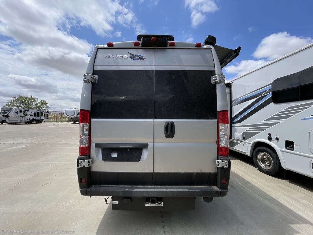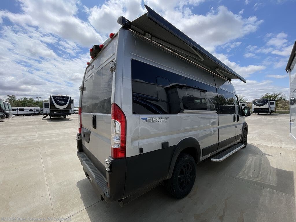 Head out on your greatest adventures with one of these Jayco Swift Class B gas motorhomes! Off-grid camping is made hassle-free with the 200-watt roof-mounted GoPower solar panel, plus there is an Onan 2800W generator with auto-gen start for all your other power needs. Each model includes the JRide system with Hellwig helper springs and a premium heavy-duty suspension for smooth handling, and the Thule armless patio awning with LED lights will create an outdoor living space you are sure to love. Head inside to find a solid surface kitchen countertop with a pull-out extension, sliding vented windows, a soft-touch vinyl ceiling, plus many more comforts. The Uconnect 5 NAV infotainment center with Apple CarPlay® and Android Auto™ will also come in handy as you travel to your destination!