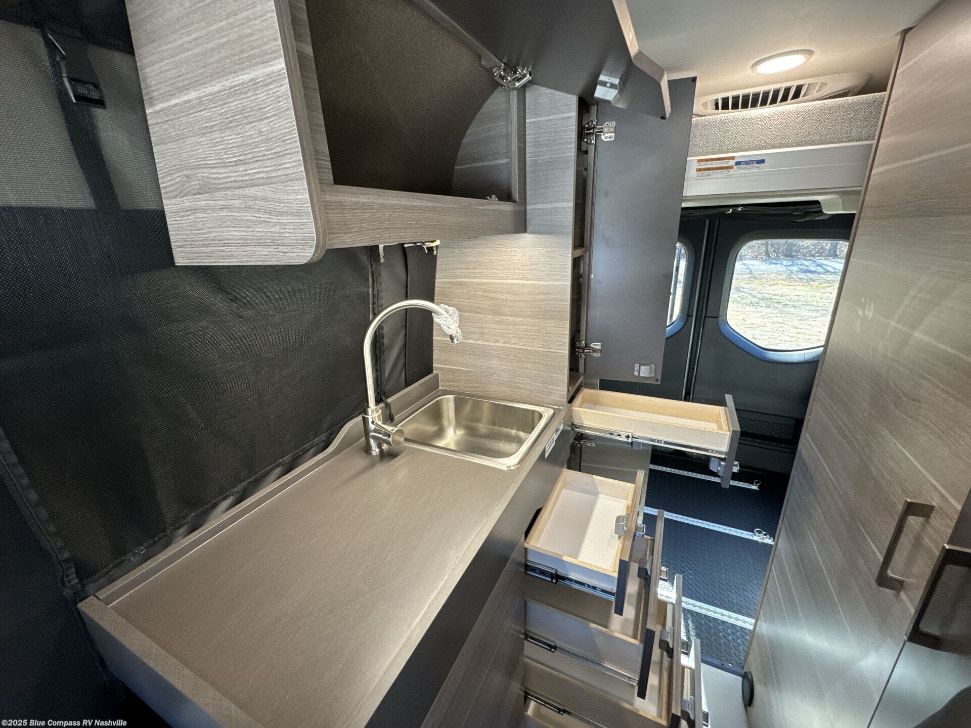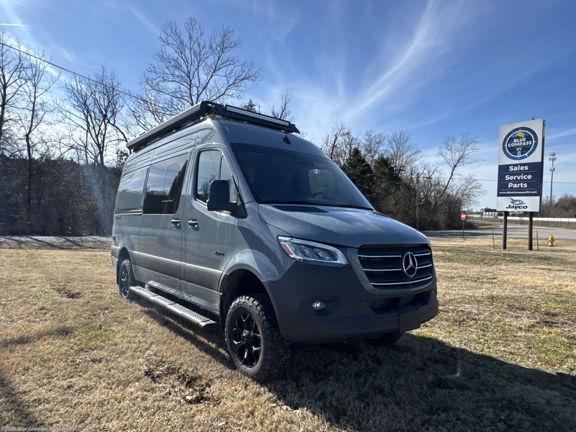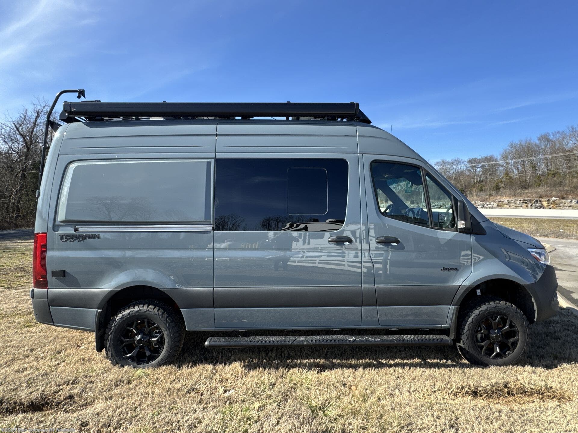 The Jayco Terrain Class B diesel motorhome is just waiting for you to hit the trails with it! The Mercedes-Benz Sprinter 2500 AWD chassis will provide an outstanding driving experience, plus there is a 9-speed transmission and a 2.0L 4-cyliner diesel engine with 211HP and 332 ft.-lb. of torque to power your adventures. You will appreciate the added safety features, such as active lane keeping assist, attention assist, and the parking package with a 360° camera that will help keep you stay safe on the road. This coach includes a 48V-165 amp hour smart lithium battery that provides 7.9kW of hours of power when you're off-grid, and when you're back at camp, you can check in using the Starlink satellite internet system. The Tecnoform European-style cabinetry is ultra stylish and the durable rubber floor will withstand your spontaneous van life. And don't overlook the exterior with its Carefree armless awning with an LED light, a double roof rack and moveable roof ladder, a fold-down exterior table, and more!