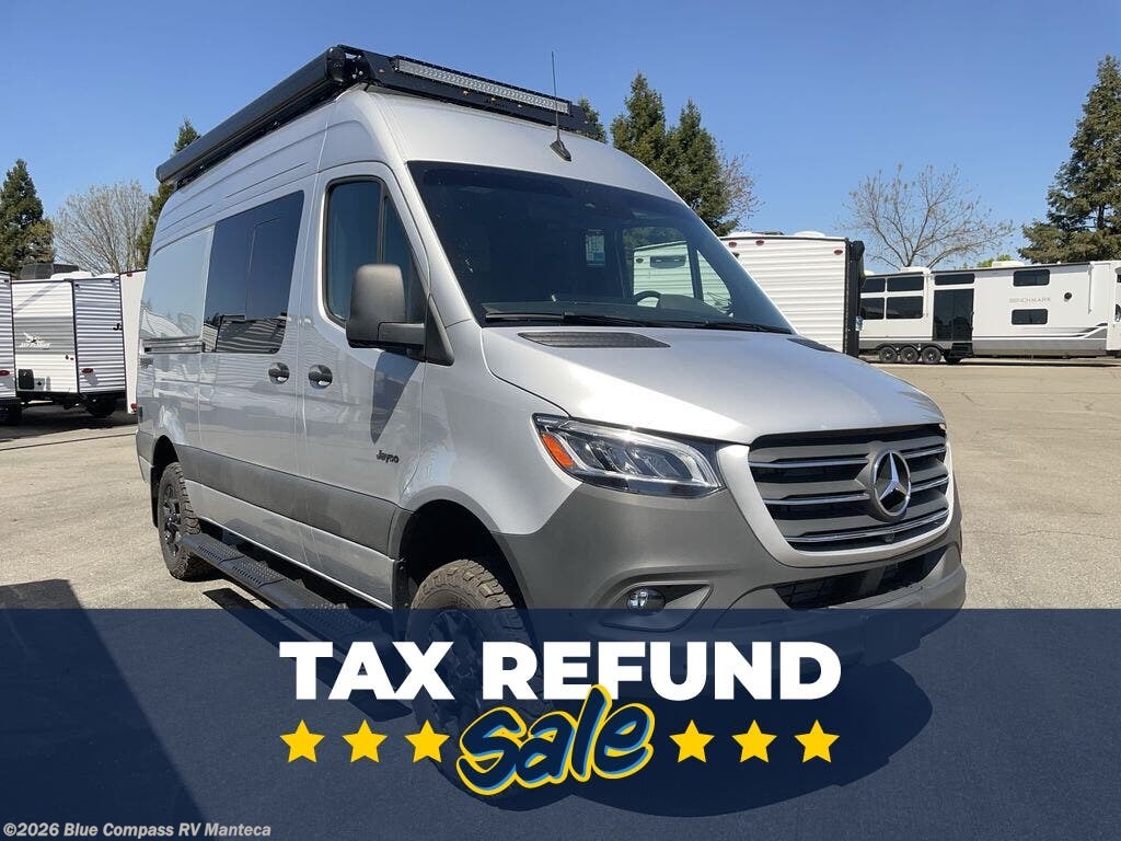 The Jayco Terrain Class B diesel motorhome is just waiting for you to hit the trails with it! The Mercedes-Benz Sprinter 2500 AWD chassis will provide an outstanding driving experience, plus there is a 9-speed transmission and a 2.0L 4-cyliner diesel engine with 211HP and 332 ft.-lb. of torque to power your adventures. You will appreciate the added safety features, such as active lane keeping assist, attention assist, and the parking package with a 360° camera that will help keep you stay safe on the road. This coach includes a 48V-165 amp hour smart lithium battery that provides 7.9kW of hours of power when you're off-grid, and when you're back at camp, you can check in using the Starlink satellite internet system. The Tecnoform European-style cabinetry is ultra stylish and the durable rubber floor will withstand your spontaneous van life. And don't overlook the exterior with its Carefree armless awning with an LED light, a double roof rack and moveable roof ladder, a fold-down exterior table, and more!
