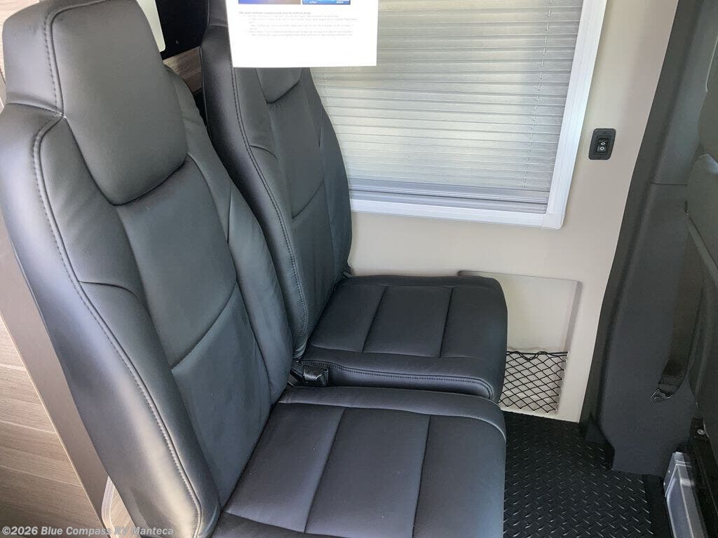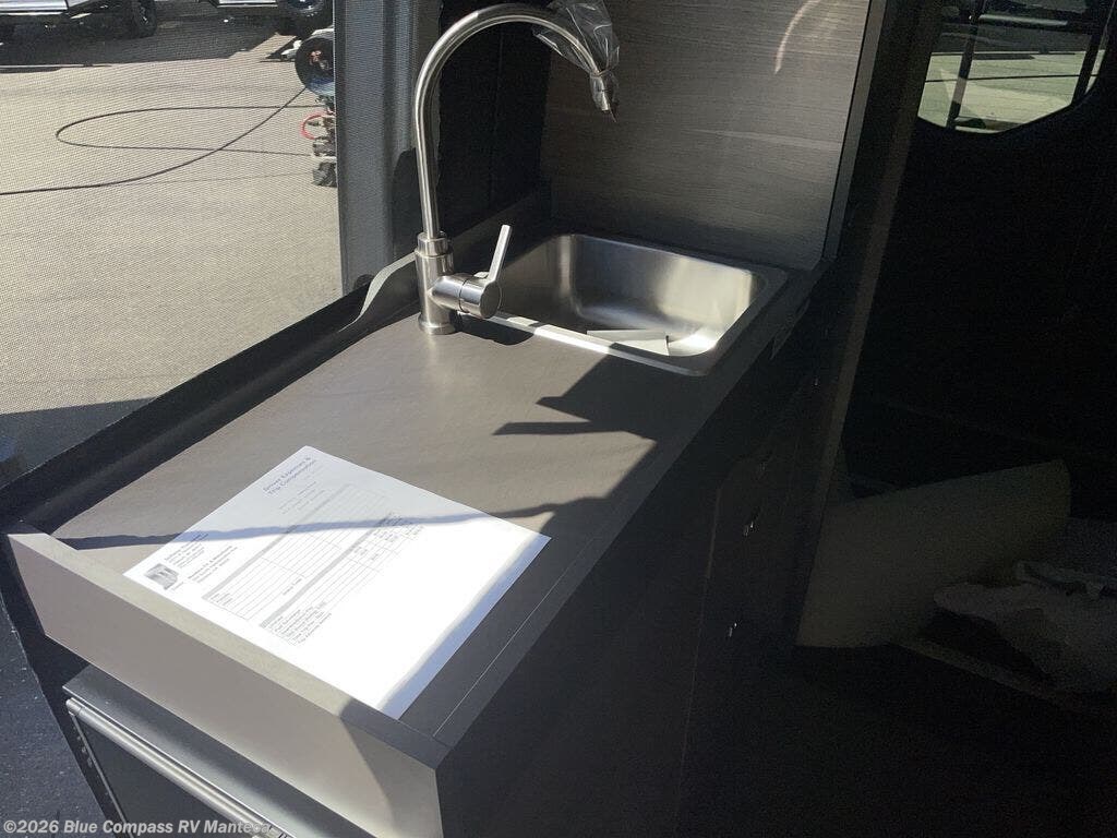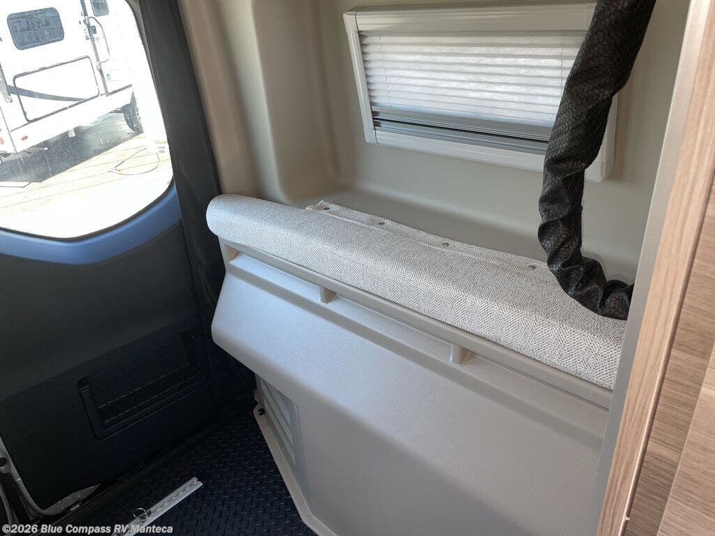 Take some time to get away with your favorite person in this Terrain Class B diesel motorhome! Not only is there room to sleep two with the power lift bed that has a 750-LB capacity, but there is also room to seat a total of four people on the two heated power swivel cab seats and the two additional bucket seats with slide and recline features in front of the removable/adjustable table. You'll love cooking in the kitchen with a portable induction cooktop, stainless steel sink, plus a pantry and 3 cu. ft. DC refrigerator for food storage. The wet bath is very functional with its removable bamboo shelf, powered roof vent, and retractable clothes line.