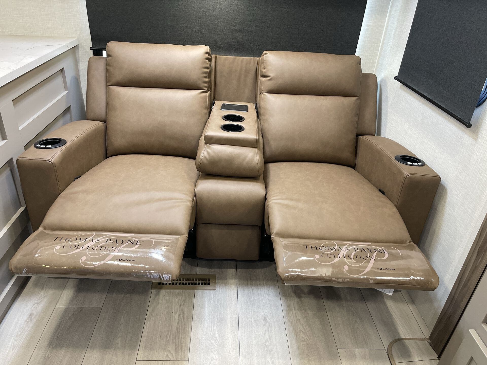 This travel trailer comfortably sleeps up to six people, making it ideal for family vacations or group getaways. Its thoughtfully designed floorplan, the C241RLK, includes one slideout that expands the living space, creating a welcoming and open environment. The interior boasts modern comforts such as a cozy fireplace, a king-size bed for restful nights, and a booth dinette perfect for meals and socializing. The kitchen is fully equipped with a microwave, oven, stovetop burner, and a refrigerator, allowing you to prepare home-cooked meals wherever your adventures take you. Notable features include a skylight that fills the interior with natural light, an outside kitchen and grill for outdoor cooking, and exterior speakers for entertainment during gatherings.