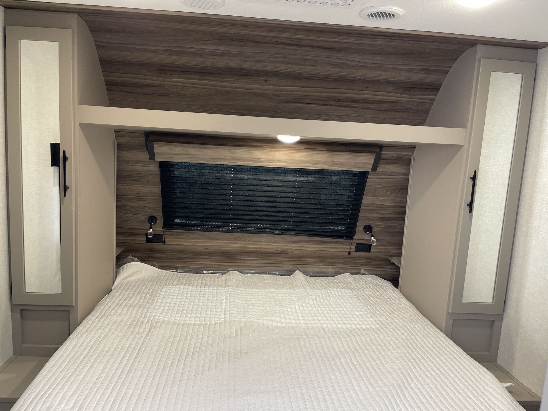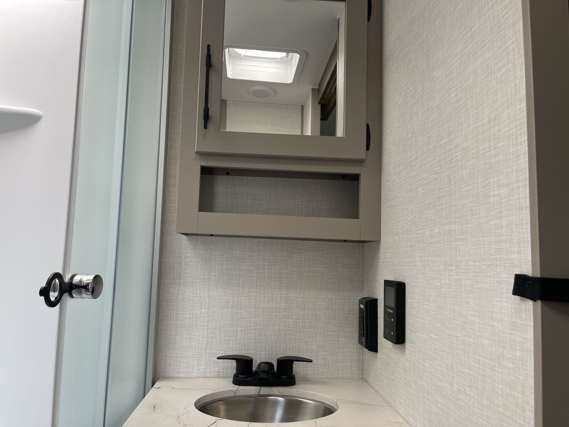 Designed for convenience and comfort, the K-Z Connect includes one air conditioner with a 13,500 BTU capacity, ensuring a cool ambiance even on hot days. The bathroom amenities feature a spacious shower, toilet, and medicine cabinet for added convenience. Additional features include a water heater, external shower, multiple roof vents, and levelers like jacks and a luggage rack to make setup easy at each destination. Safety is prioritized with smoke and CO detectors, LP detector, and optional external features such as an awning, exterior LED-lit speakers, and a ladder for roof access.