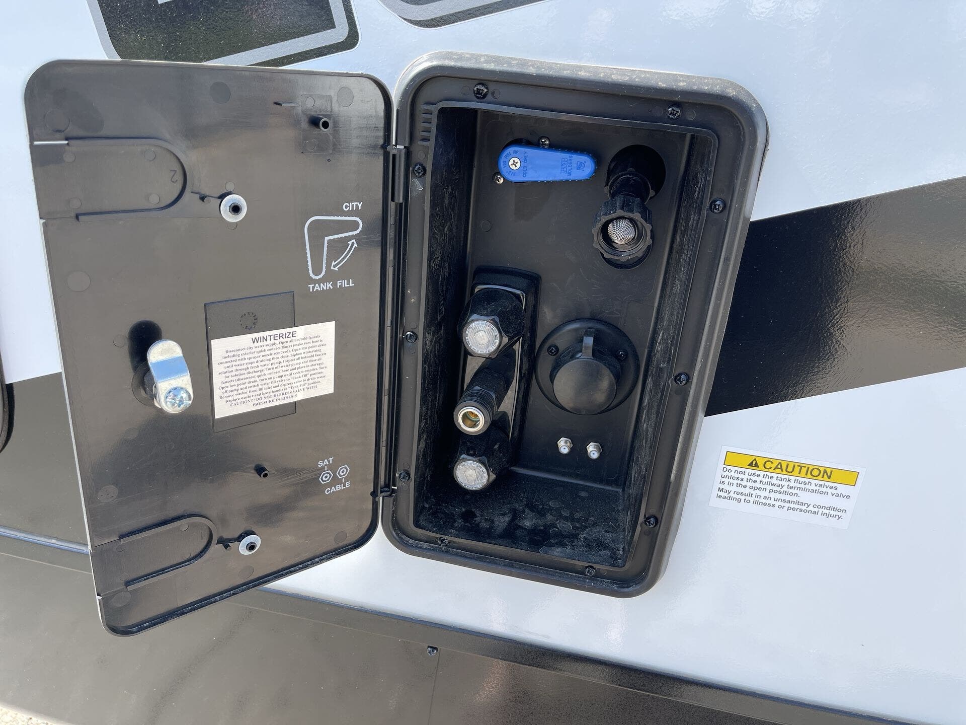 Awning, Exterior Grill, Exterior Speakers, External Shower, Hitch, Ladder, Leveling Jacks, Luggage Rack, Outside Kitchen, Skylight, Slideout, Spare Tire Kit -