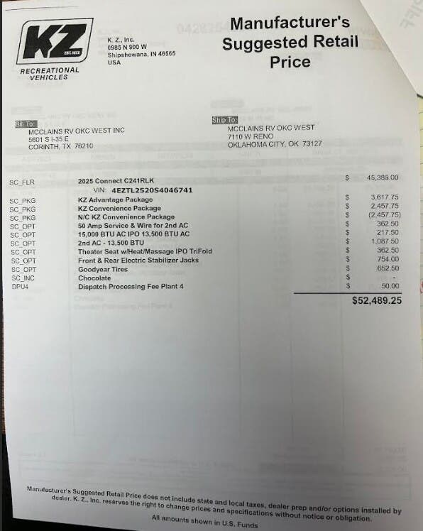Request More Info on this 2025 K-Z Connect 241RLK Offered for sale by McClain's RV Oklahoma City