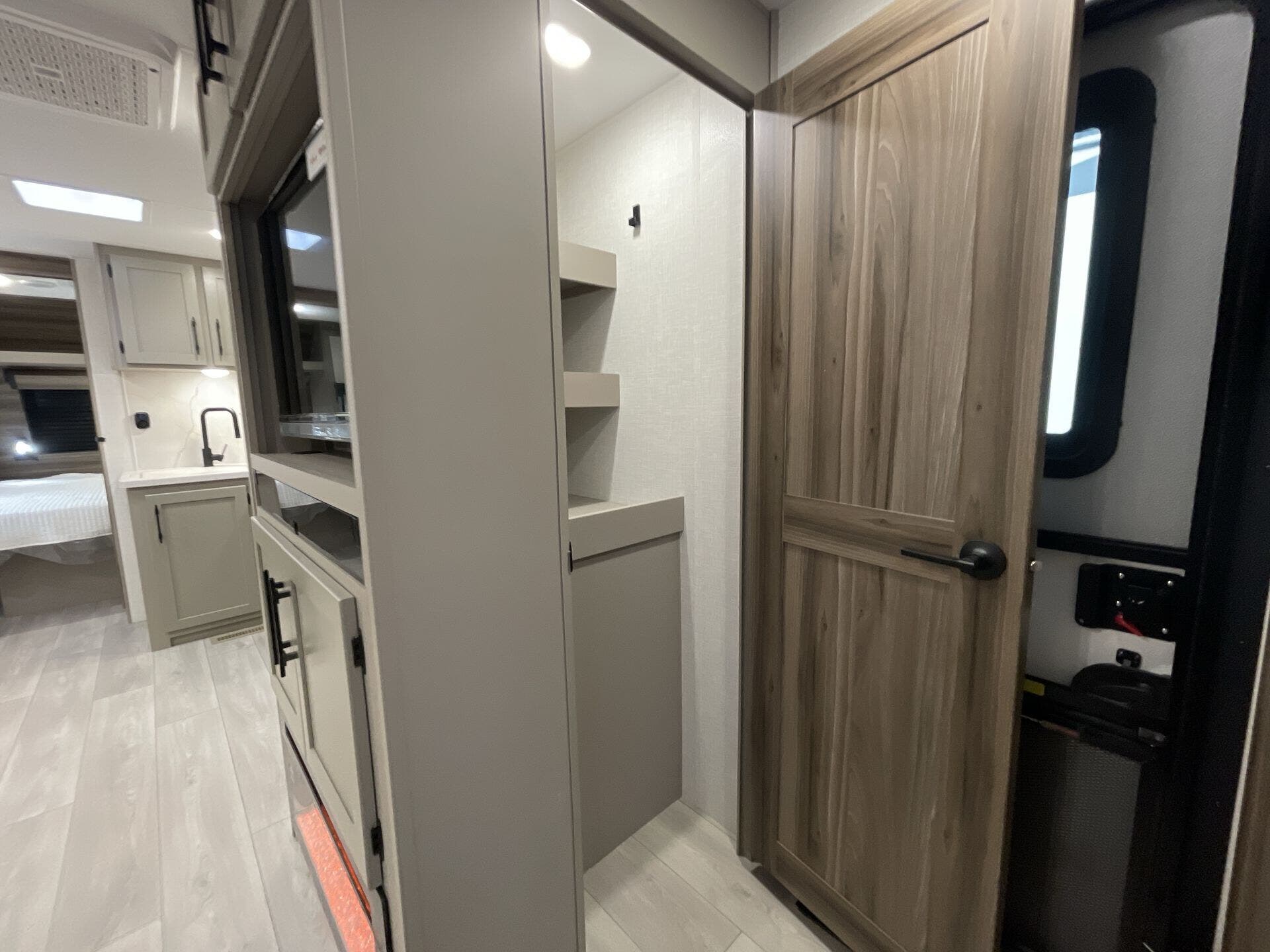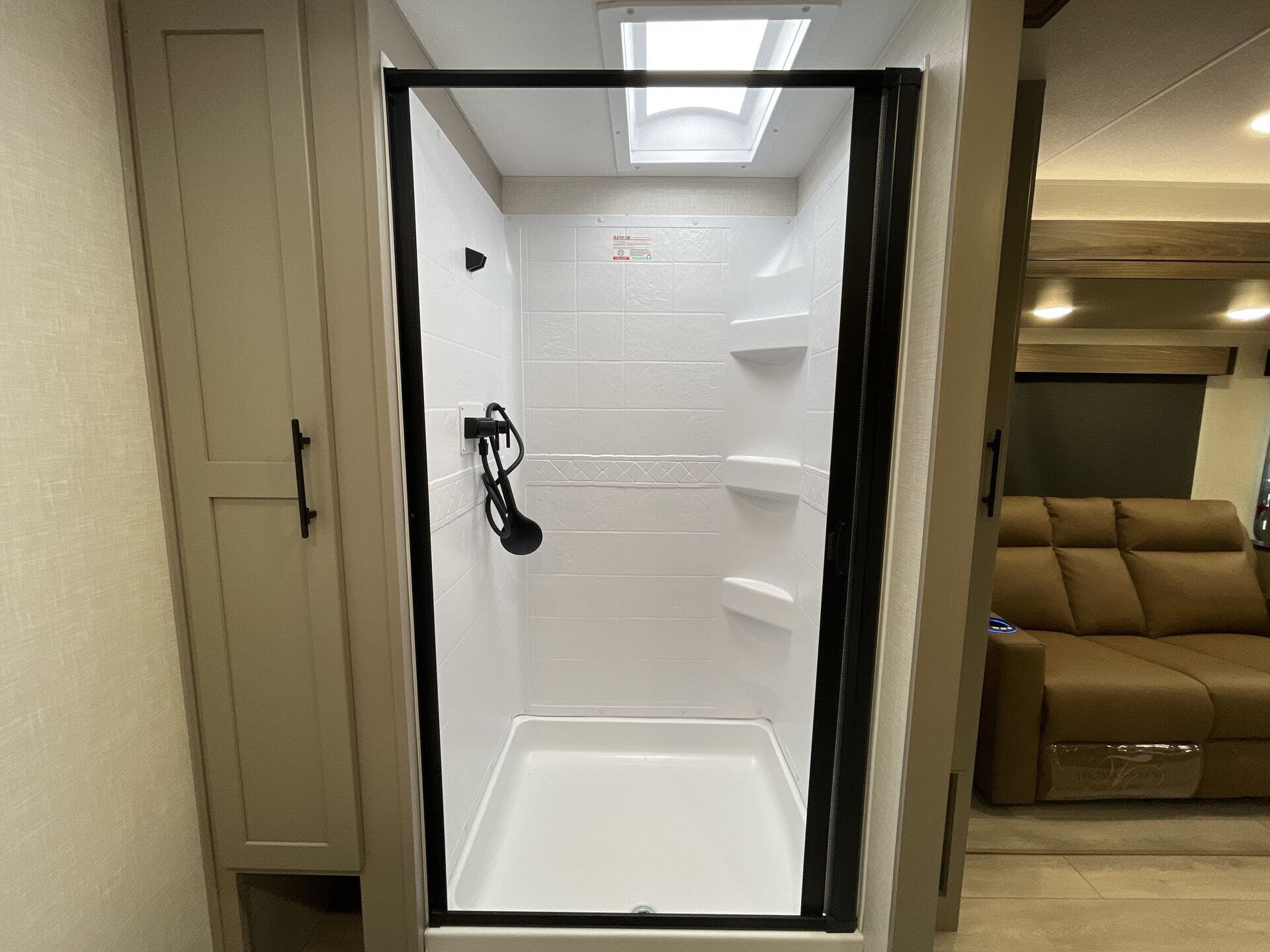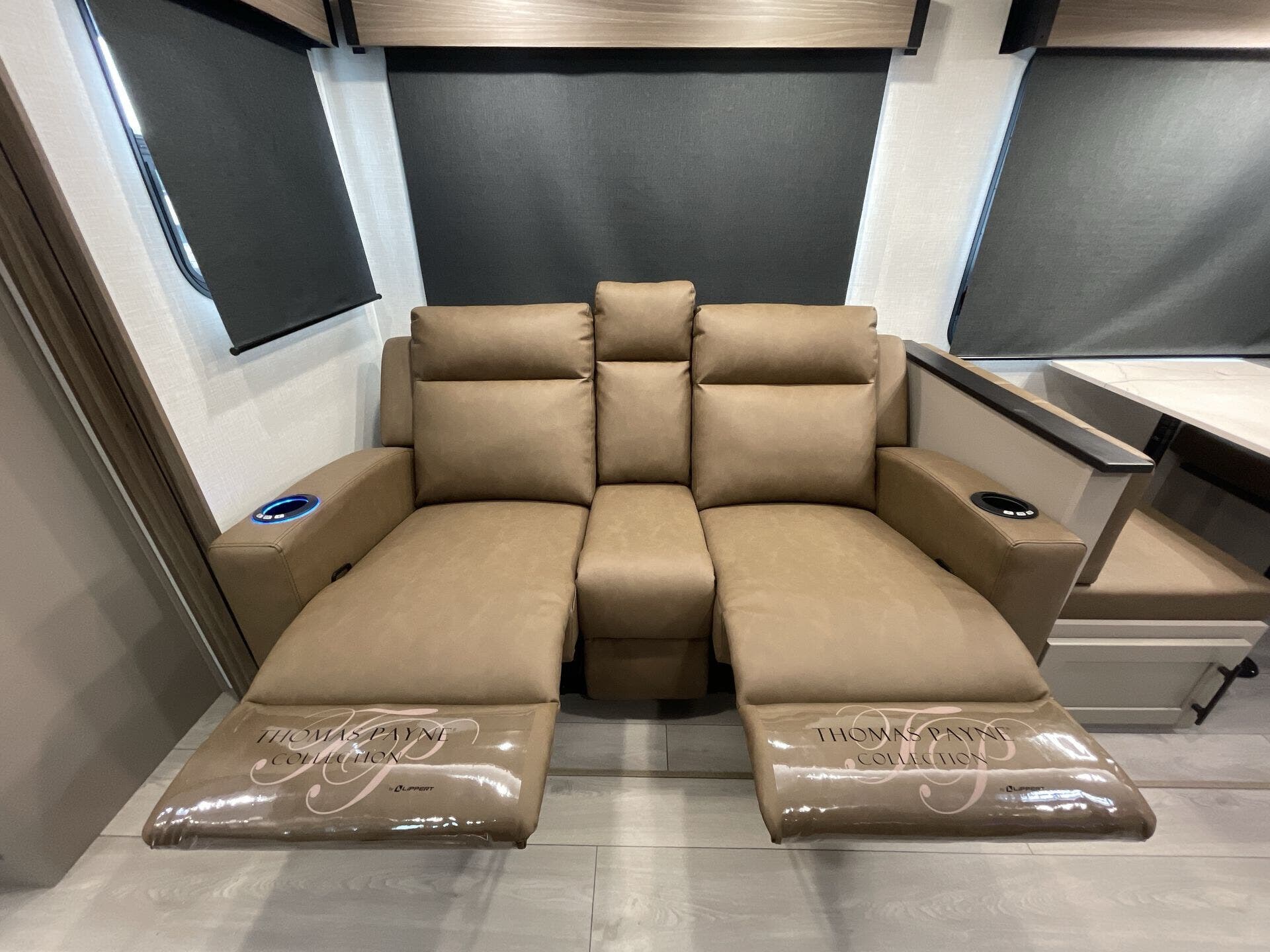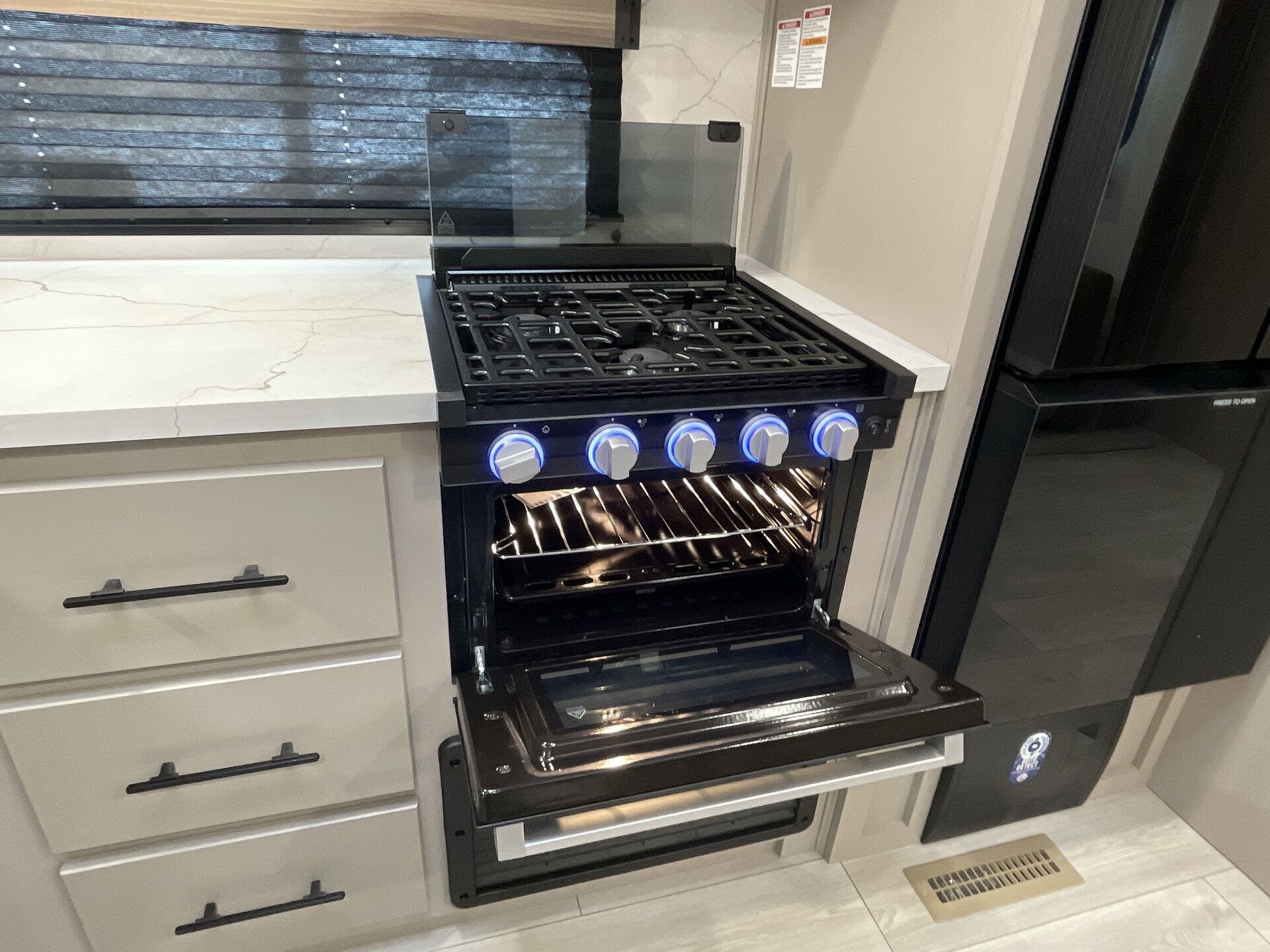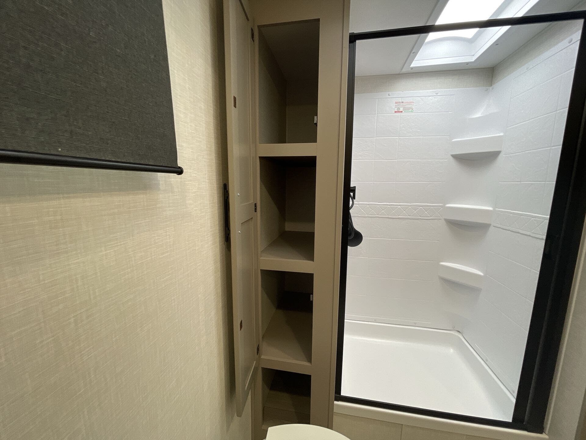 This new model boasts a comprehensive list of amenities to enhance your travel experience. Inside, you'll find a well-equipped kitchen featuring a microwave, oven, refrigerator, and a stove top burner, allowing you to prepare meals with ease. The interior is illuminated with a skylight, creating a bright and inviting atmosphere. For added comfort, a cozy fireplace provides warmth during chilly nights, while the booth dinette offers a space for dining and socializing.