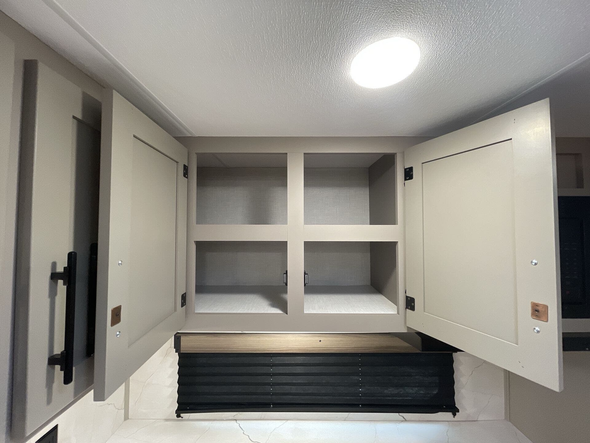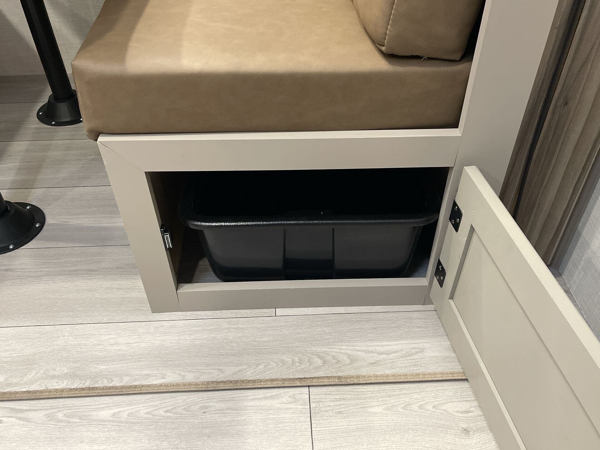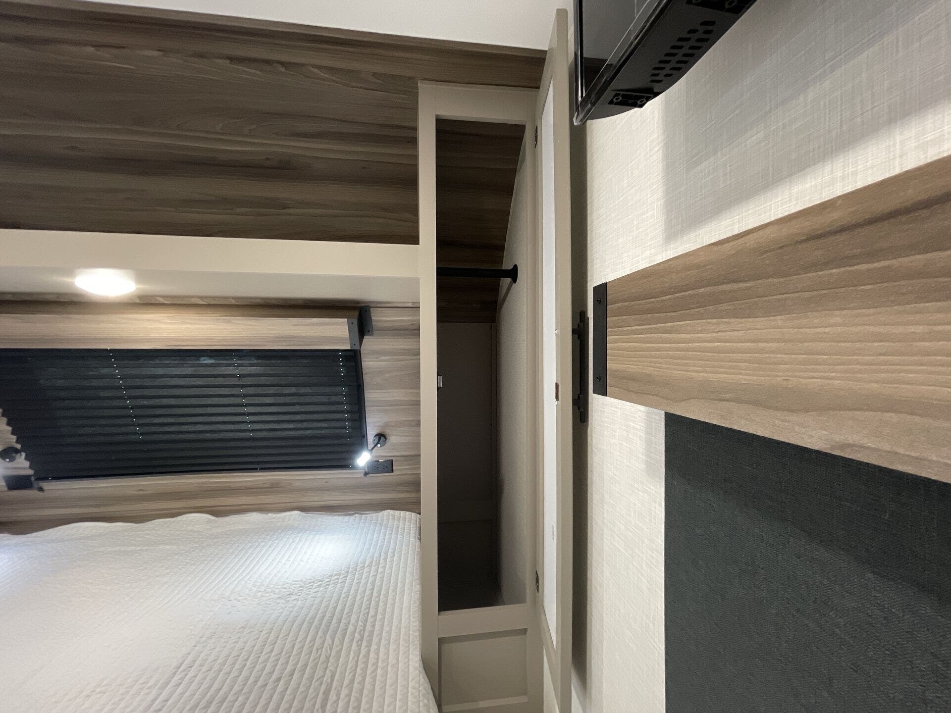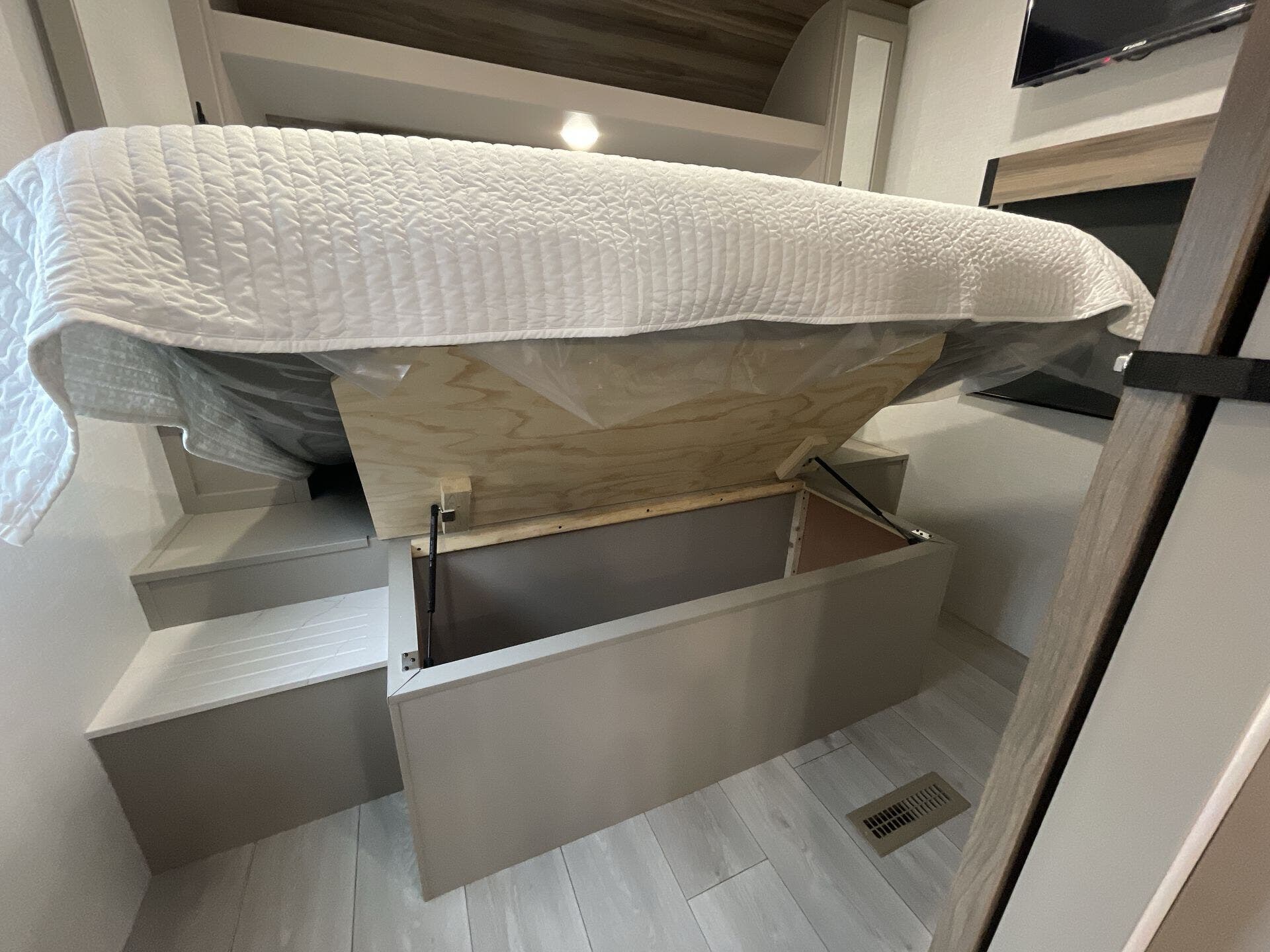 This new model boasts a comprehensive list of amenities to enhance your travel experience. Inside, you'll find a well-equipped kitchen featuring a microwave, oven, refrigerator, and a stove top burner, allowing you to prepare meals with ease. The interior is illuminated with a skylight, creating a bright and inviting atmosphere. For added comfort, a cozy fireplace provides warmth during chilly nights, while the booth dinette offers a space for dining and socializing.