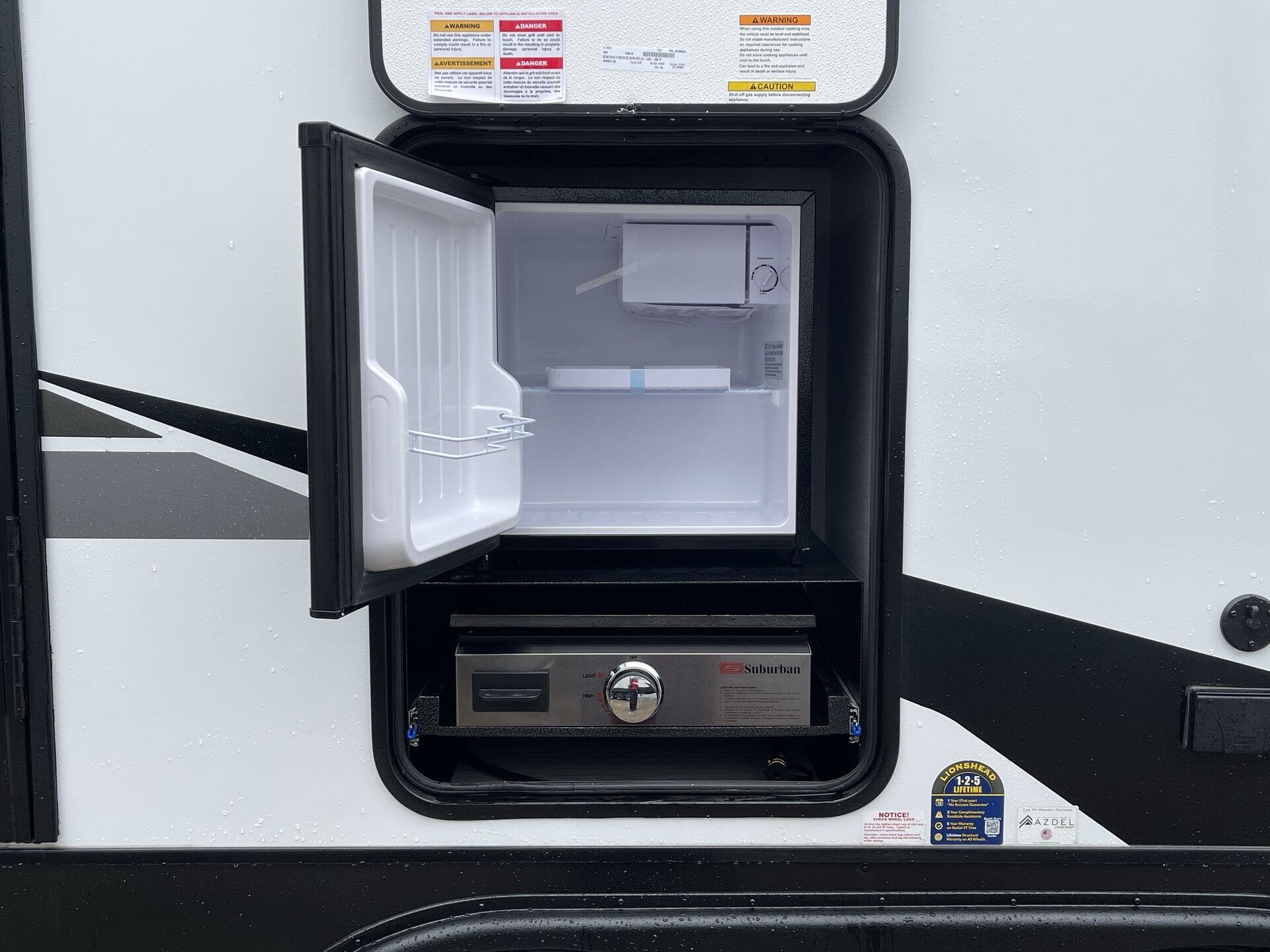 Awning, Exterior Grill, Exterior Speakers, External Shower, Hitch, Ladder, Leveling Jacks, Outside Kitchen, Skylight, Slideout, Spare Tire Kit -