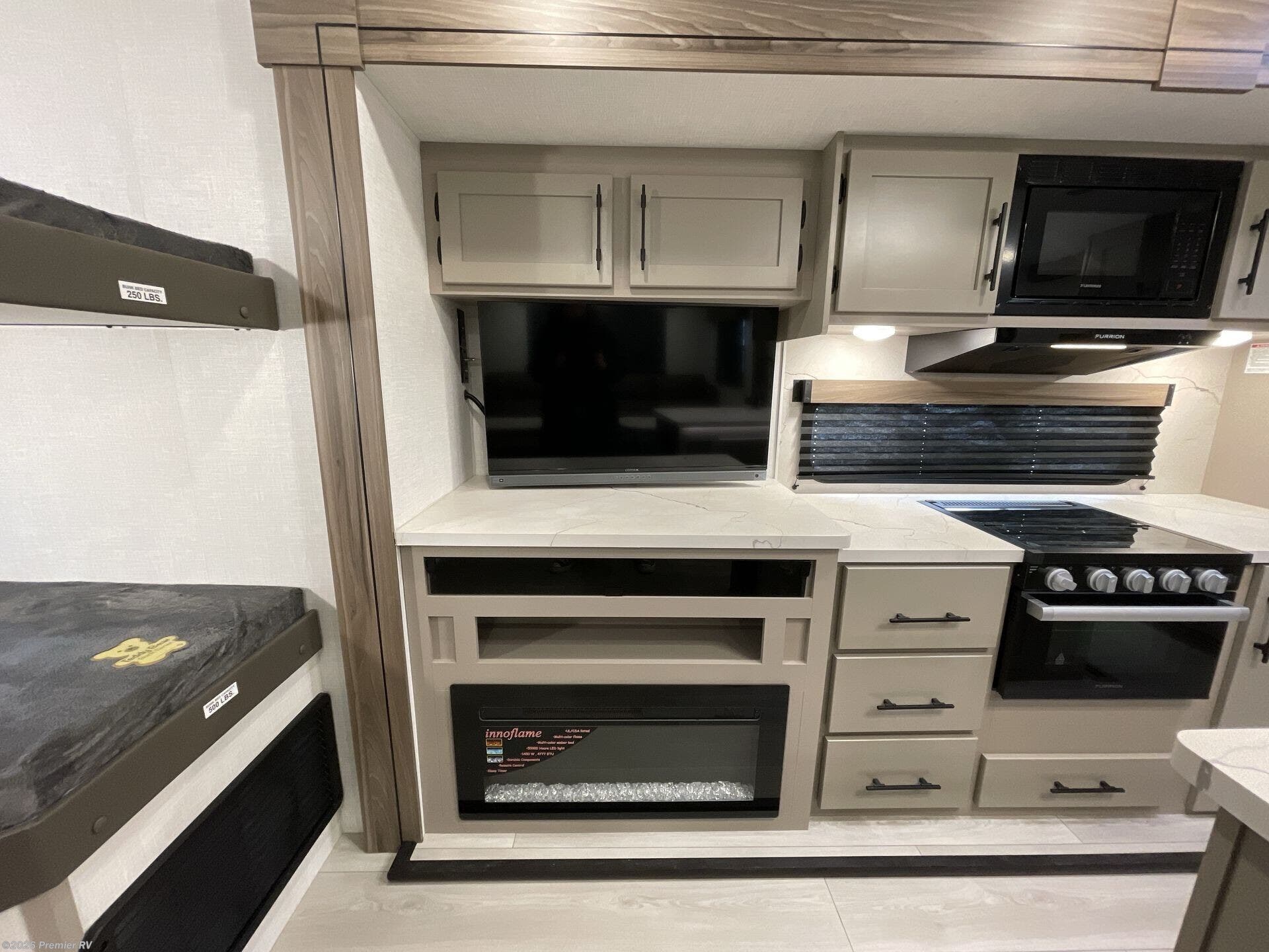 KZ ADVANTAGE PACKAGE (MAND), ROOF LADDER SOLAR ROOF PREP-EXTERIOR DOCKING STATION, BLACK TANK FLUSH-FRESH TANK FILL-PRESSURE FILL, OUTSIDE SHOWER-CABLE HOOKUP, WHITE EXTERIOR FIBERGLASS, FULL PAINT FIBERGLASS FRONT CAP W/FRONT WINDSHIELD, 2in ACCESSORY HITCH, FLIP UP ENTRY STEP (MAIN ENTRY), FULL GLASS FRICTION HINGE ENTRY DOOR W/SHADE PREP, & SCREENSHOT FEATURES-POWER FRONT JACK, KEY ALIKE PROGRAM FOR BAGGAGE & ENTRY DOORS, MAGNETIC CATCHES FOR BAGGAGE DOORS, LARGE FOLDING GRAB HANDLE-EXT SPEAKERS, SPARE TIRE-BACKUP CAMERA PREP, EQUA FLEX SUSPENSION, GOODYEAR NITROGEN FILLED TIRES-BATTERY DISCONNECT SWITCH, CLIMATE PACKAGE (HEATED INSULATED, & ENCLOSED UNDERBELLY), LEASH LATCH W/BONUS BEVERAGE OPENER, LUXURY WOVEN VINYL FLOORING IN SLIDE-OUTS, LITHIUM READY CONVERTER-RV AIRFLOW A/C SYSTEM W/ AIR FILTER, LITHIUM READY CONVERTER, 82in INTERIOR CEILING HEIGHT, 70 1/2in SLIDE CEILING HEIGHT, ENCLOSED DUMP VALVES & WATER LINES, 42K BTU TANKLESS HOT WATER HEATER, (2) 12V USB PORTS IN BEDROOM, ROLLER SHADES, MULTI MEDIA ENTERTAINMENT SYSTEM W/DVD, SEAMLESS COUNTERTOPS W/DEEP UNDERMOUNT, STAINLESS STEEL KITCHEN SINK-SINK COVER, BEDROOM PILLOW PACKAGE, PLYWOOD BED BASE W/GAS STRUTS, 12V DUAL USB IN BUNK AREA-LED TV, HDMI & USB CHARGE-LED MOTION SENSOR LIGHT-2, 70X80 SERTA COMFORT FOAM KING MATTRESS, 36in STORAGE BINS AT DINETTE-KITCHEN SKYLIGHT, BRIGHT WHITE LED LIGHT STRIP ABOVE, SLIDE OUT ROOM (MAIN LR ONLY), FLUSH FLOOR SLIDE-OUTS, WIDER POCKET/PASSAGE INTERIOR DOORS, PAINTED HARDWOOD CABINET DOORS, RESIDENTIAL CABINET DOOR HARDWARE, TRI-FOLD SOFA, 17in OVEN, STAINLESS STEEL LAV SINK, KZ CONVENIENCE PACKAGE (MAND), ONE CONTROL MONITOR PANEL, KZ ENGAGE:POWERED BY ONE CONTROL, (MONITORS:BATTERY LEVELS CONTROLS:SLIDE ROOMS, LEVELING SYSTEM AWING(S) INSIDE/OUTSIDE LIGHTS, TPMS PREP)-ELECTRIC FIREPLACE-ALUMINUM WHEELS, POWER AWNING W/LED LIGHT STRIP, OMNIDIRECTIONAL HDTV ANTENNA W/WI-FI PREP, LED LIGHTS IN EXTERIOR SPEAKERS, UPGRADED LINOLEUM 12V W/DUAL TEMP CONTROL, STAINLESS STEEL MICROWAVE, MATTE BLACK RESIDENTIAL KITCHEN FAUCET W/, ACCENT TRIM ON CORNERS/ENTRY DOORS, PORCELAIN TOILET W/FOOT FLUSH, 15 000 A/C IPO 13 500 BTU, THEATER SEATING W/HEAT & MASSAGE IPO JACKKNIFE (N/A C313MK), FRONT & REAR ELECTRIC STABILIZER JACKS, GOODYEAR TIRES, RVIA SEAL, 2YR MANUFACTURER'S WARRANTY, PREMIER RV DIFFERENCE, NO PRESSURE FAMILY STYLE SALES, LOCALLY OWNED & OPERATED, OVER 25 000 SQ FT FACILITY ON 9 ACRES, NO HIDDEN FEES-BATTERY PREP LP FRT OR FINANCE FEES, TRANSPARENT PRICING, PREMIER PACKAGE AVAILABLE ASK SALESPERSON FOR DETAILS, FREE ORIENTATION WITH QUALIFIED SERVICE TECHNICIAN, ''WHAT CUSTOMERS WANT AND DESERVE'', EVERY EFFORT IS MADE TO GIVE OUR CUSTOMERS, THE MOST ACCURATE INFORMATION AND, WEB PHOTOS. DUE TO MANUFACTURERS VARIANCE, WEBSITE IMAGES MAY BE TAKEN OF STOCK, UNITS AND MAY DIFFER FROM ACTUAL, UNITS BEING SOLD., NOT RESPONSIBLE FOR DISCREPANCIES.