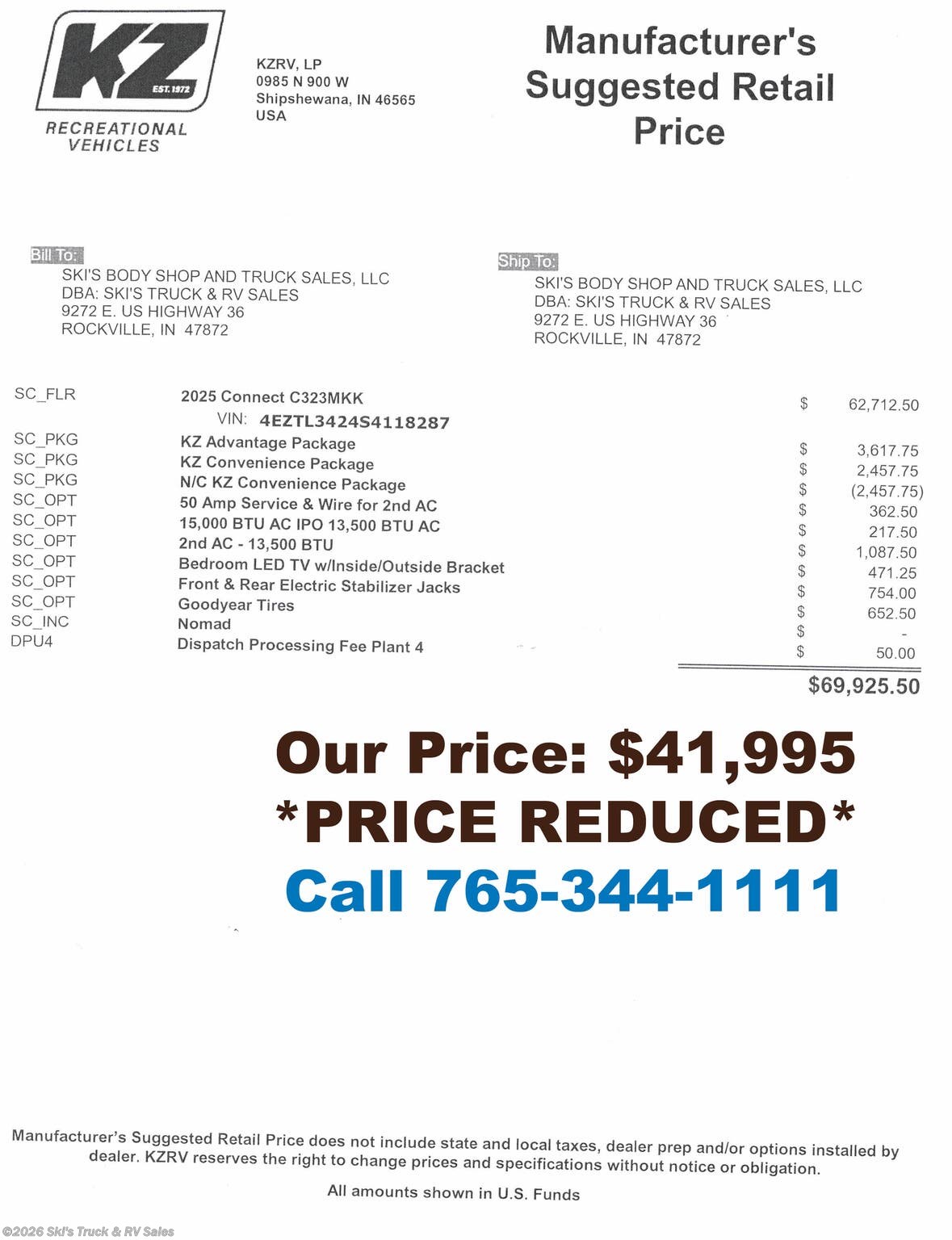 Request More Info on this 2025 K-Z Connect C323MKK Offered for sale by Ski's Truck & RV Sales