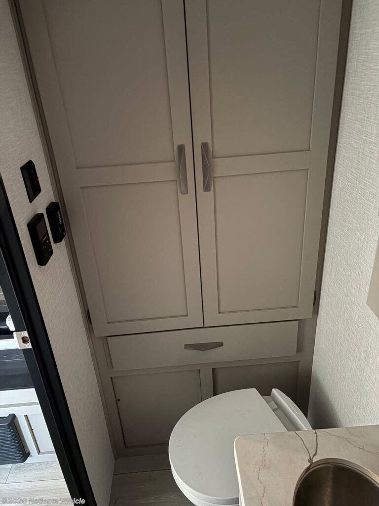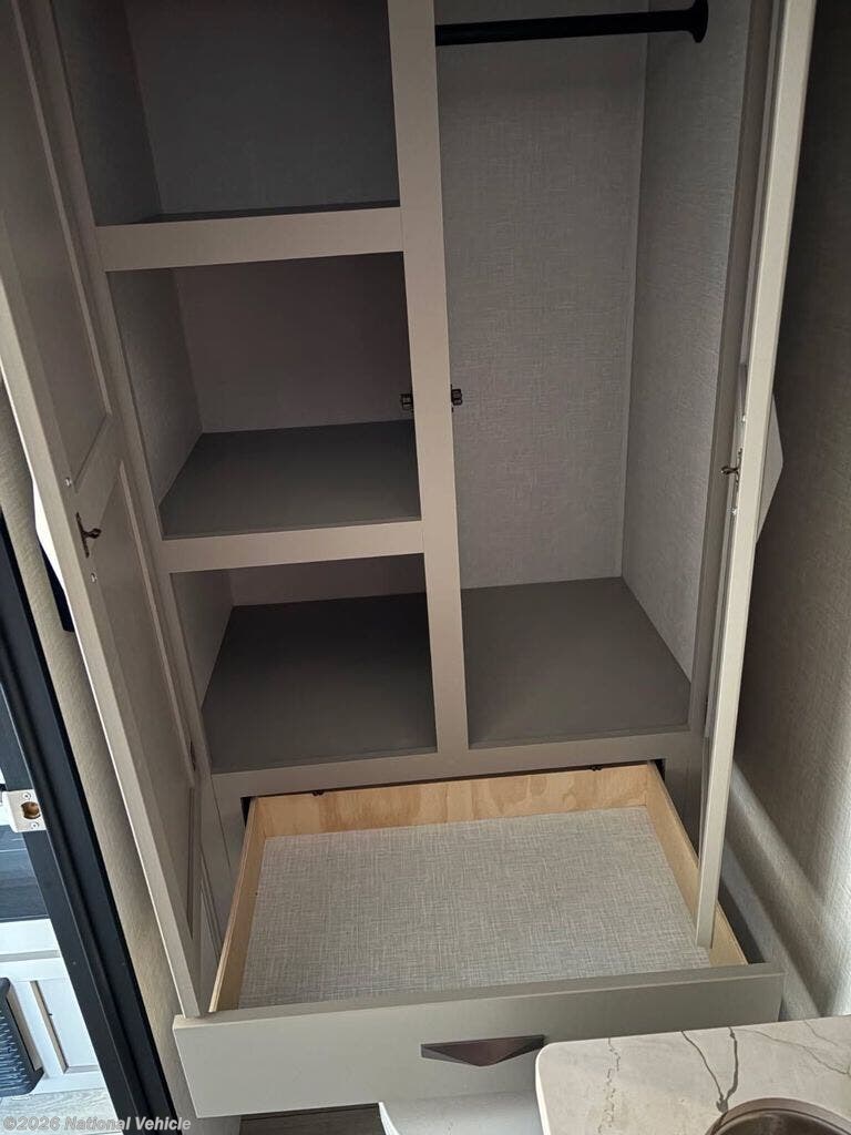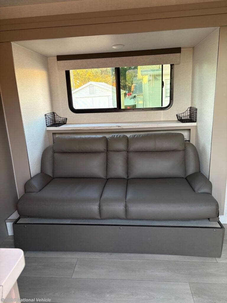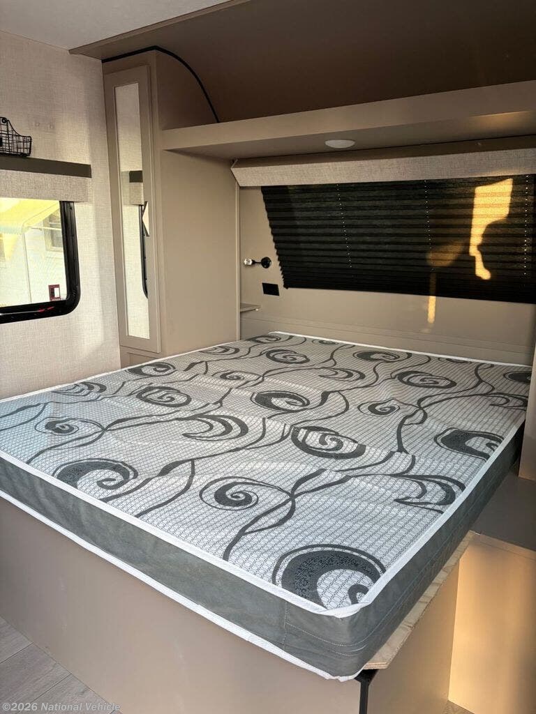 Inside, the layout is bright, open, and thoughtfully arranged for maximum comfort. The front bedroom features a true RV Queen bed (60? x 74?), offering residential-style sleeping space and a relaxing retreat after a day of exploring.