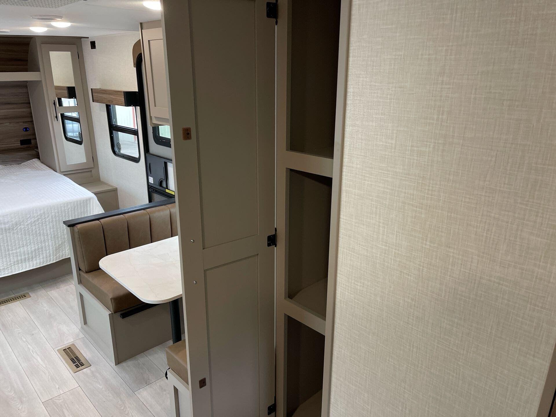 Booth Dinette, Medicine Cabinet, Queen Bed, Rocker Recliner(s), Roof Vents, Shower, Toilet -