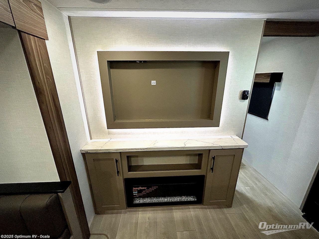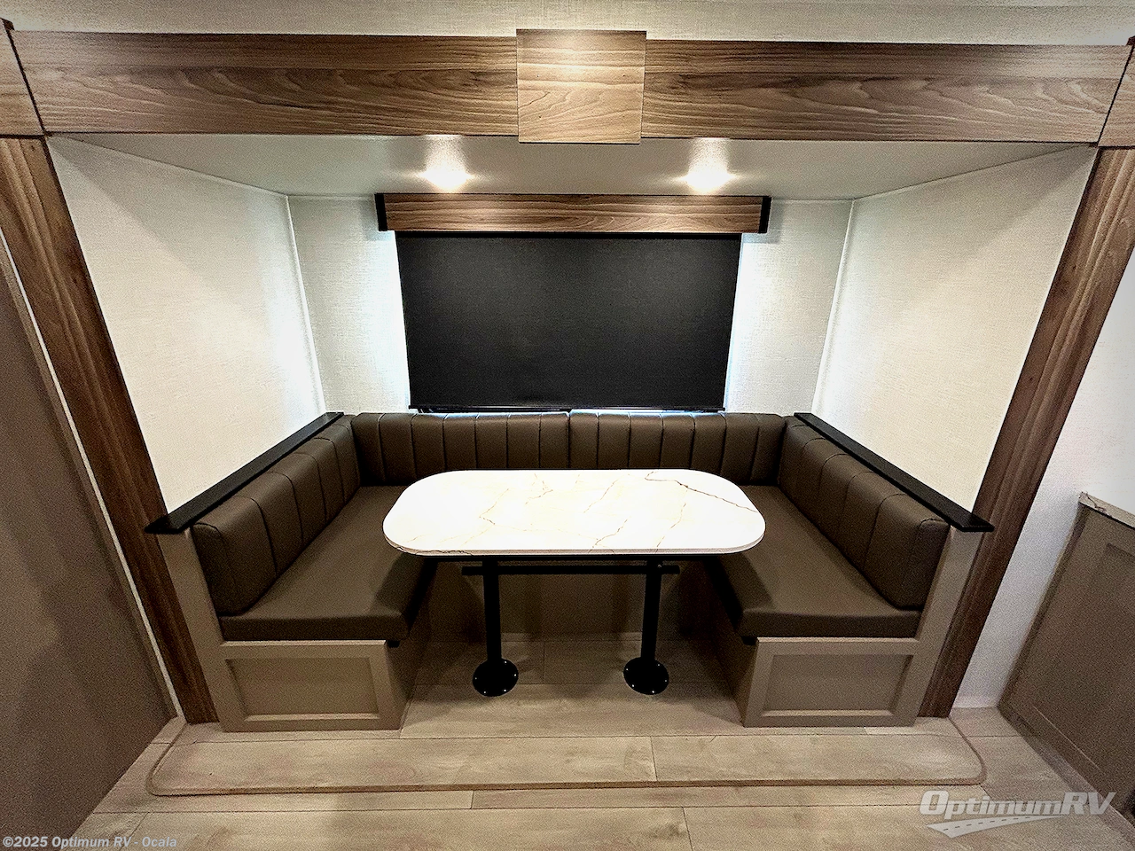 Get ready for outdoor fun at your favorite campground or RV park, and relaxation both outside and inside this trailer! The 18' power awning provides protection from the elements and the LED light strip allows you to stay up late, the outside kitchen and griddle provide amenities to make meals in the great outdoors, plus the trunk door and the pass-through storage give you access to stow items away. When you are ready to call it a night, there is a queen bed in the front private bedroom, double-size bunks next to the full bathroom, and a U-shaped dinette slide offers extra sleeping space. The next morning, the cook can make meals using the L-shaped kitchen with full amenities, or head back outdoors to use the outside amenities.