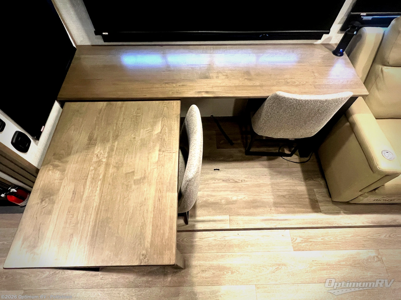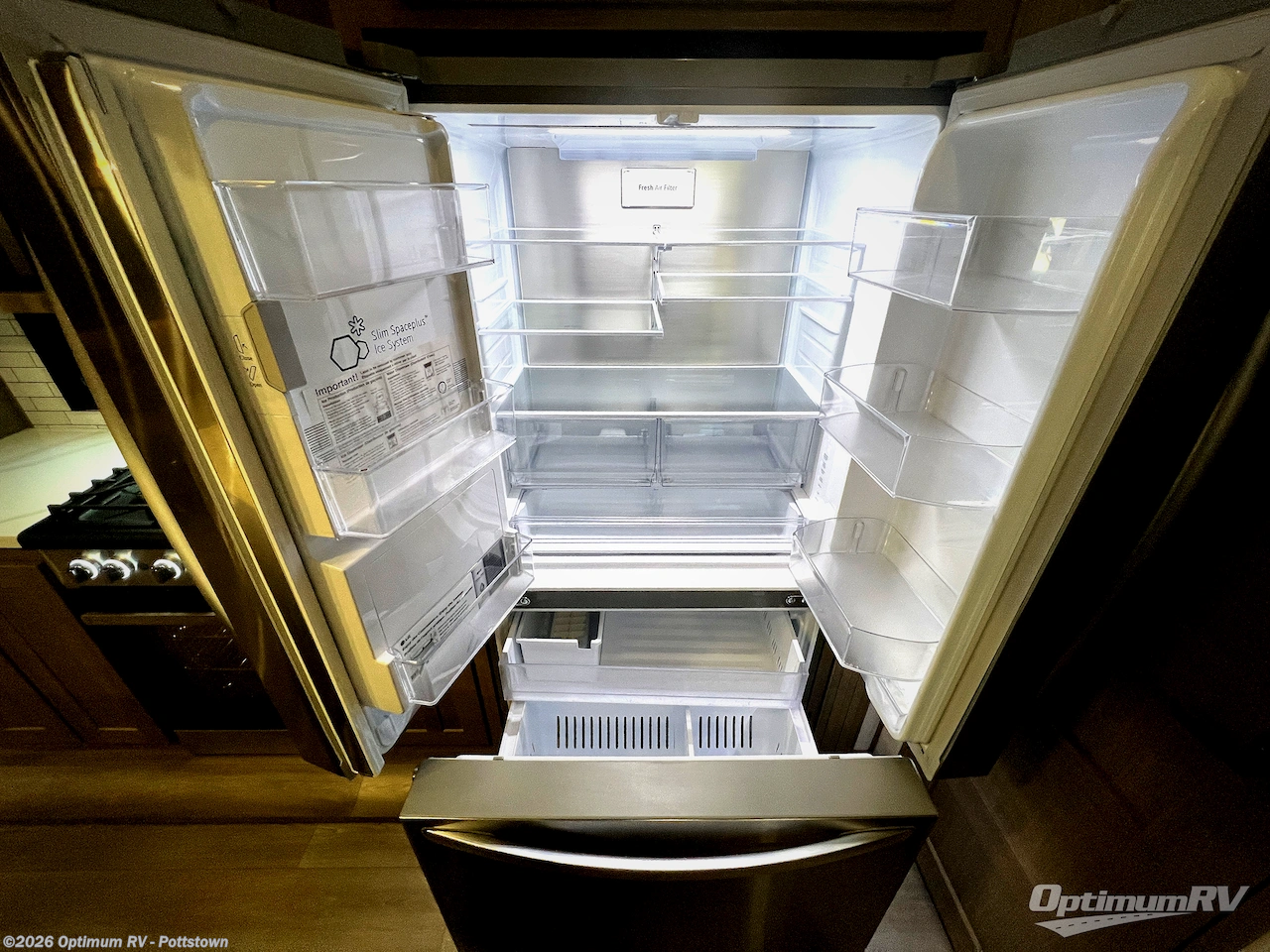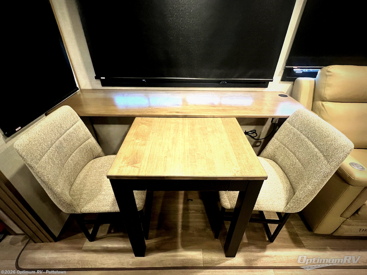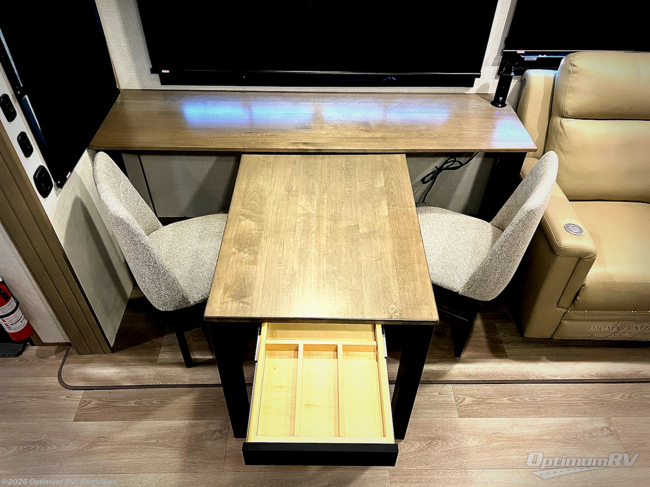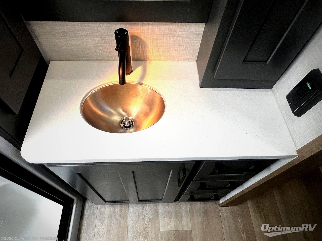 Camp wherever you want and stay as long as you desire with this full-time fifth wheel! You will love the spacious interior which includes a front bedroom with an electric tilt king bed slide with drawers underneath, a front wardrobe with washer and dryer prep, a closet with a built-in hamper, plus a slide out dresser with 32" Smart LED TV above. The full bathroom offers a residential shower with a seat plus linen storage, and the kitchen gives the cook a dream kitchen that includes a farmhouse stainless steel sink and dishwasher in the center island, a 26 cu. ft. house refrigerator with a 2,000W inverter, and more. The 50" Smart LED TV with a fireplace below can be seen from the sliding table / desk and chairs, the comfortable theater seats and the hide-a-bed sofa. Yet you might like to add the 10' 6" awning option, and there are more options to customize your Durango Gold.