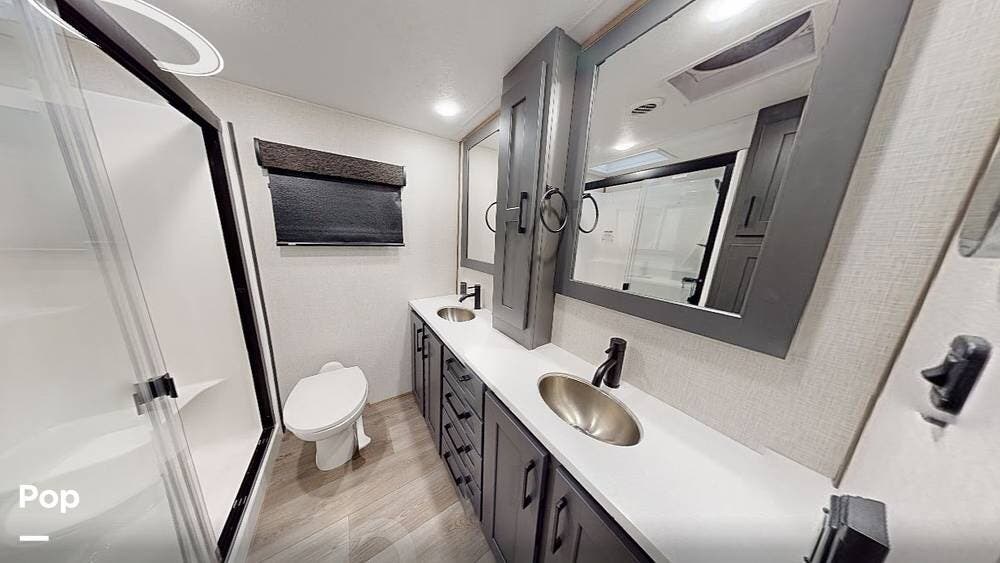 As you make your way to the front of the Durango, you will find a spacious bath with dual vanities and large mirrors. A large walk-in shower complements this room, as does plenty of storage for towels and other necessities.