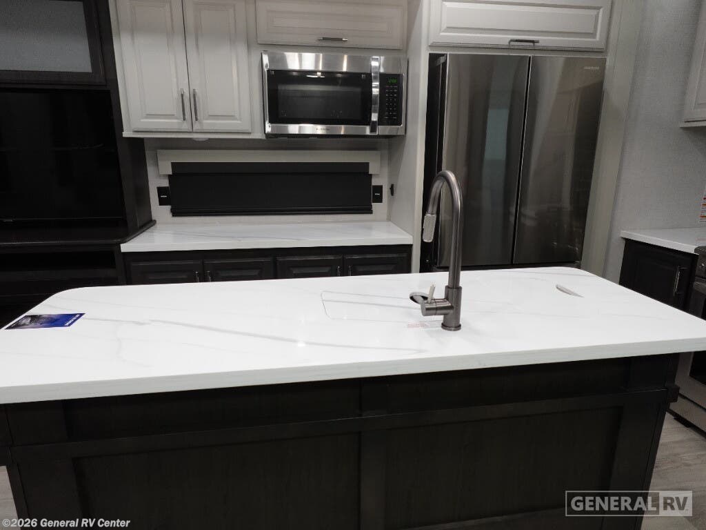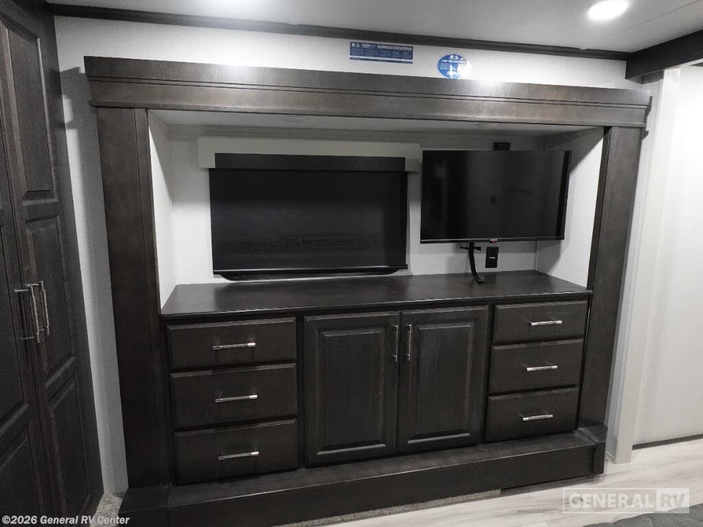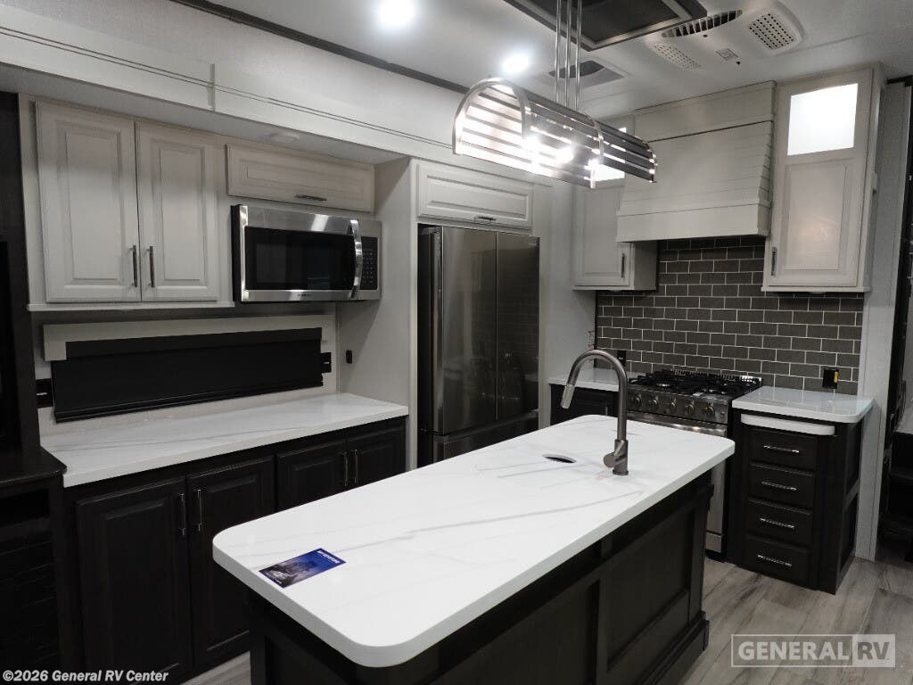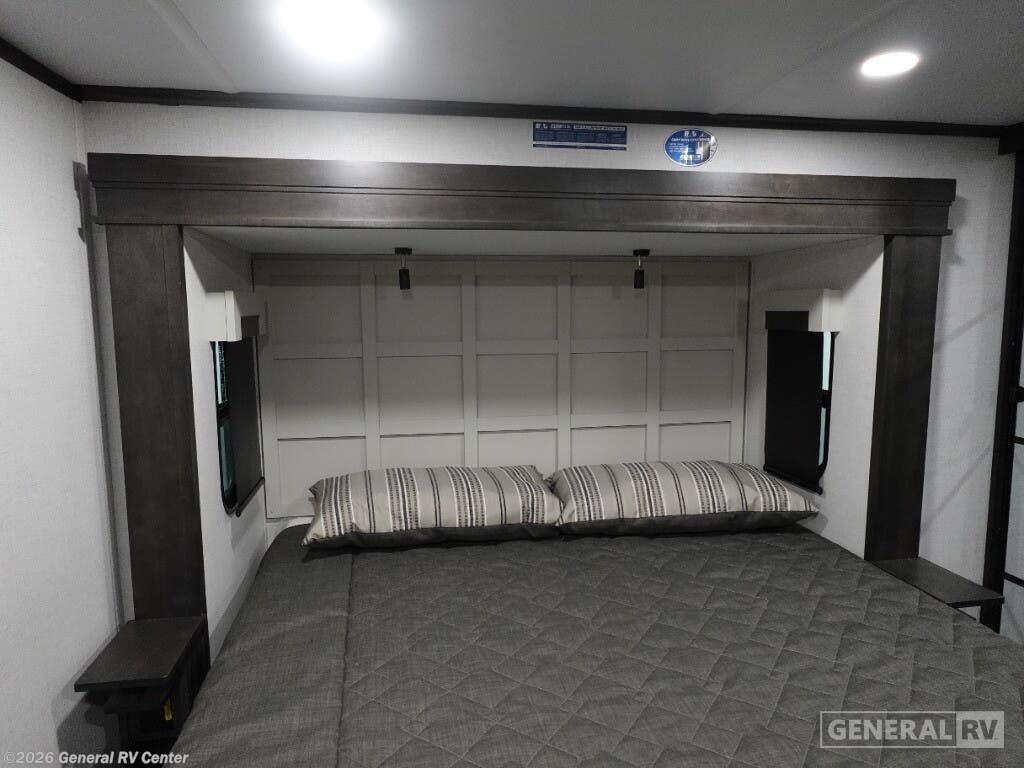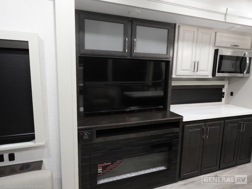 Discover the 2025 Keystone Alpine 3303CK, where luxury meets adventure. This stunning fifth wheel is designed to elevate your travels with its thoughtfully crafted layout and premium features. As you enter, you'll be greeted by a spacious rear living area complete with theater seating and a cozy fireplace, perfect for relaxing evenings. The center kitchen boasts a full-size electric refrigerator, convection microwave, and a three-burner cooktop, making it ideal for preparing gourmet meals on the road. With a free-standing dinette, dining in style is always an option. The master suite offers a king-sized bed with ample storage underneath, ensuring a restful night's sleep. Prepped for a washer and dryer, the front bedroom is both practical and luxurious. The center bath provides convenience with a sleek shower and ample storage, while the dual awnings extend your living space outdoors, offering shade and comfort. With a generous cargo capacity and robust towing capability, the Alpine 3303CK is ready for any adventure you dream up. Visit your nearest General RV dealership to experience this exceptional RV firsthand.