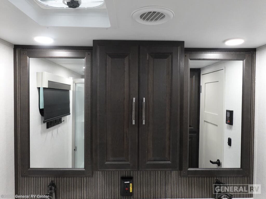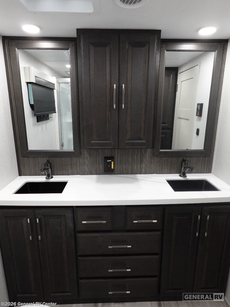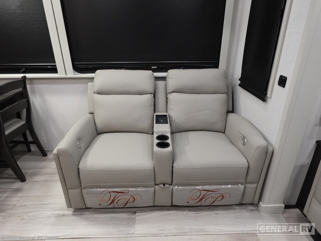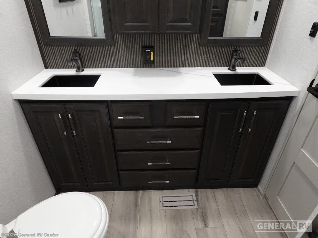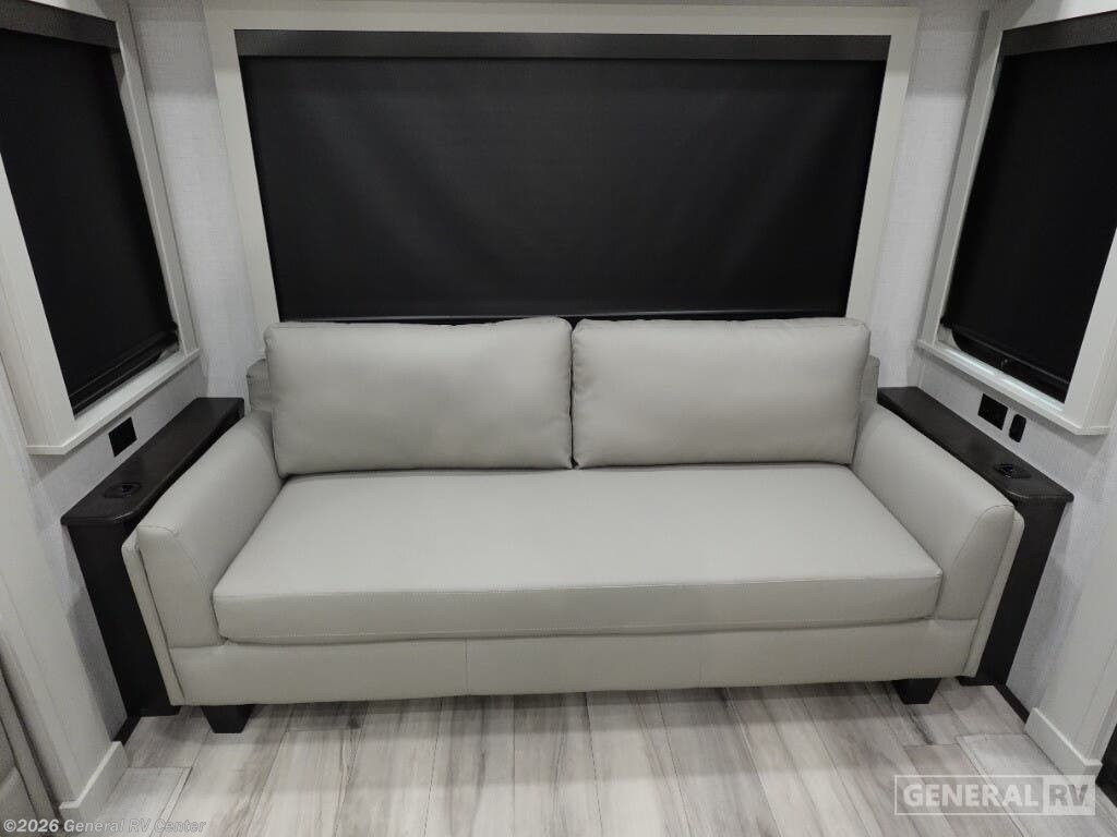 Discover the 2025 Keystone Alpine 3303CK, where luxury meets adventure. This stunning fifth wheel is designed to elevate your travels with its thoughtfully crafted layout and premium features. As you enter, you'll be greeted by a spacious rear living area complete with theater seating and a cozy fireplace, perfect for relaxing evenings. The center kitchen boasts a full-size electric refrigerator, convection microwave, and a three-burner cooktop, making it ideal for preparing gourmet meals on the road. With a free-standing dinette, dining in style is always an option. The master suite offers a king-sized bed with ample storage underneath, ensuring a restful night's sleep. Prepped for a washer and dryer, the front bedroom is both practical and luxurious. The center bath provides convenience with a sleek shower and ample storage, while the dual awnings extend your living space outdoors, offering shade and comfort. With a generous cargo capacity and robust towing capability, the Alpine 3303CK is ready for any adventure you dream up. Visit your nearest General RV dealership to experience this exceptional RV firsthand.
