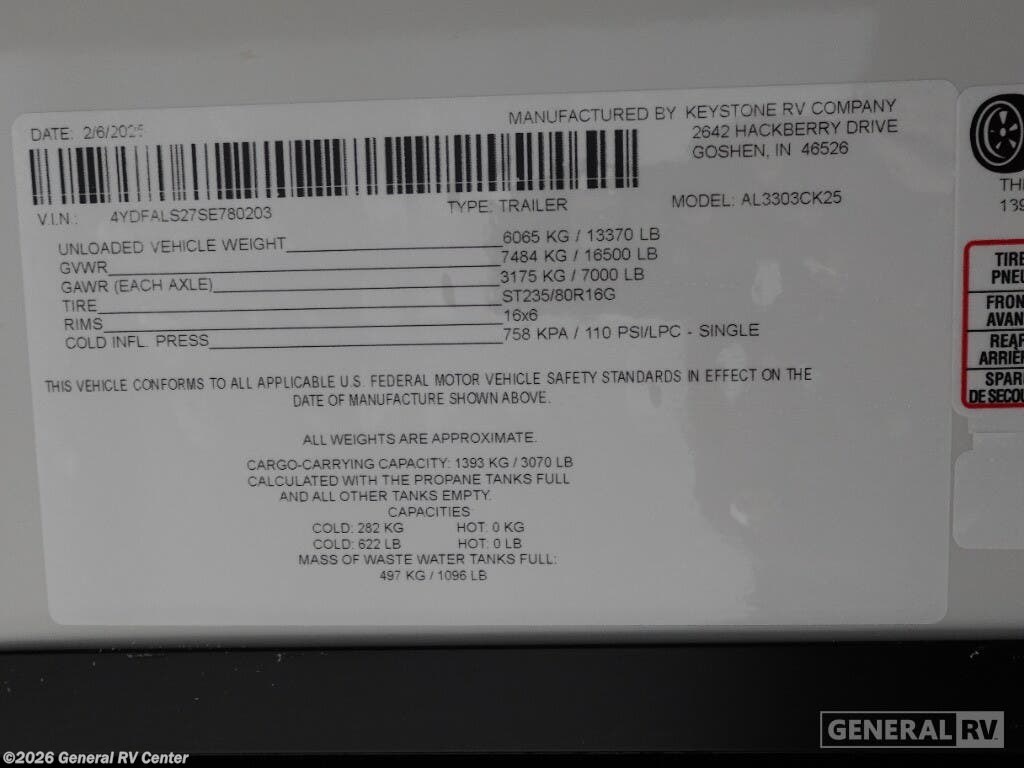 Request More Info on this 2025 Keystone Alpine 3303CK-3A Offered for sale by General RV Center
