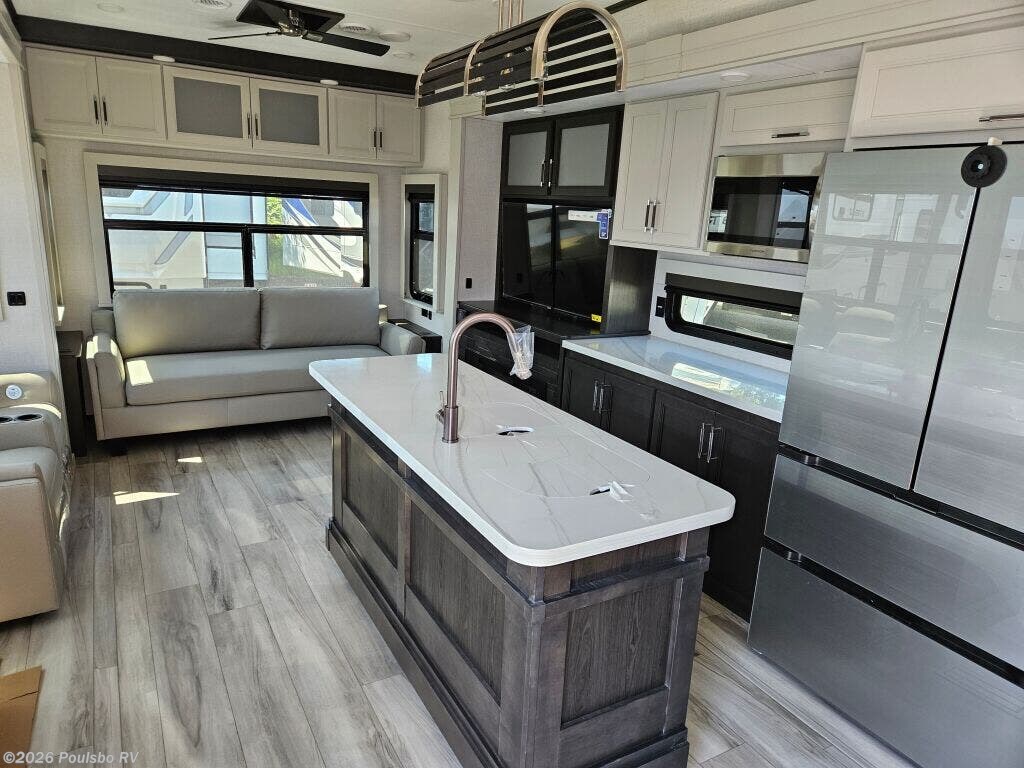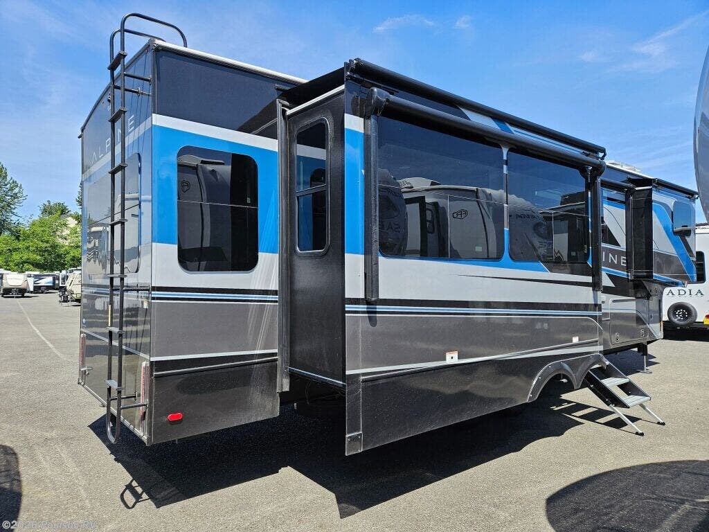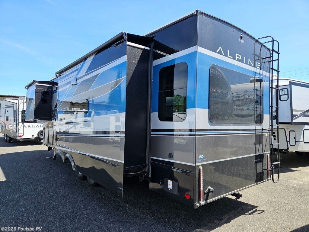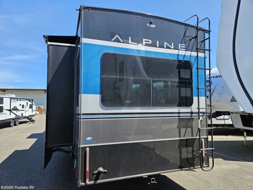 Discover the 2025 Keystone Alpine 3303CK, a stunning new travel trailer designed for those who appreciate the great outdoors while enjoying the comforts of home. This well-crafted RV boasts a length of 37.4 feet and a dry weight of 13,133 pounds, making it perfect for family adventures or weekend getaways. With a sleeping capacity of four, this model provides ample space for relaxation at the end of a long day on the road. The living area features a thoughtfully designed layout that promotes comfort and convenience. This RV includes four slide-outs, which enhance the living space significantly, allowing for a spacious atmosphere that is perfect for family bonding or entertaining friends. Equipped with front and rear power leveling jacks, setup becomes a hassle-free process, enabling you to focus on enjoying your time away from home. The dual awnings offer a shaded retreat, making your outdoor experience more enjoyable even in the warmer months. Safety and convenience are paramount in the Alpine 3303CK, which includes various features such as audio systems for entertainment on the go. With its exceptional design and robust construction, this RV is geared towards those who seek to create unforgettable memories while exploring the beauty of nature. As a family-owned, award-winning local RV dealer with multiple locations in Sumner, Everett, Kent, and Mt. Vernon Washington, Poulsbo RV is here to help you find the perfect RV. Stock#: E5907, VIN: 4YDFALS23SE780294.