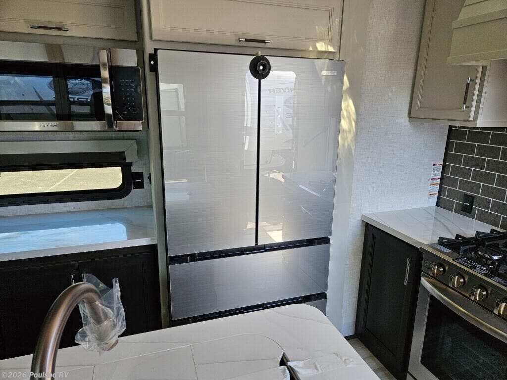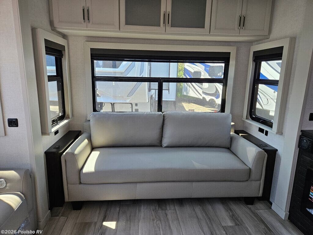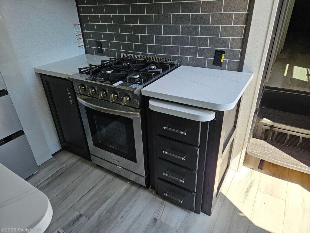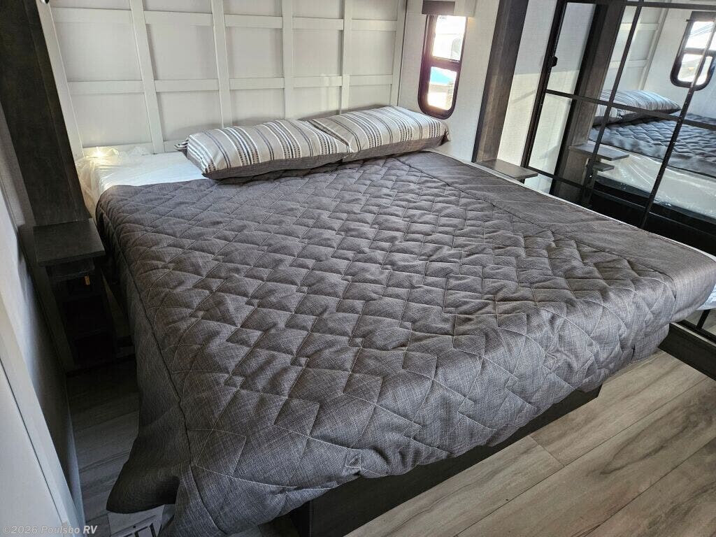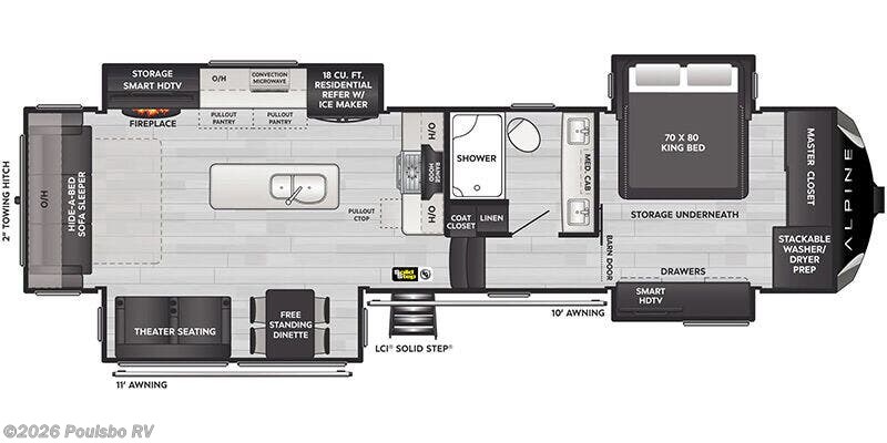 Discover the 2025 Keystone Alpine 3303CK, a stunning new travel trailer designed for those who appreciate the great outdoors while enjoying the comforts of home. This well-crafted RV boasts a length of 37.4 feet and a dry weight of 13,133 pounds, making it perfect for family adventures or weekend getaways. With a sleeping capacity of four, this model provides ample space for relaxation at the end of a long day on the road. The living area features a thoughtfully designed layout that promotes comfort and convenience. This RV includes four slide-outs, which enhance the living space significantly, allowing for a spacious atmosphere that is perfect for family bonding or entertaining friends. Equipped with front and rear power leveling jacks, setup becomes a hassle-free process, enabling you to focus on enjoying your time away from home. The dual awnings offer a shaded retreat, making your outdoor experience more enjoyable even in the warmer months. Safety and convenience are paramount in the Alpine 3303CK, which includes various features such as audio systems for entertainment on the go. With its exceptional design and robust construction, this RV is geared towards those who seek to create unforgettable memories while exploring the beauty of nature. As a family-owned, award-winning local RV dealer with multiple locations in Sumner, Everett, Kent, and Mt. Vernon Washington, Poulsbo RV is here to help you find the perfect RV. Stock#: E5907, VIN: 4YDFALS23SE780294.