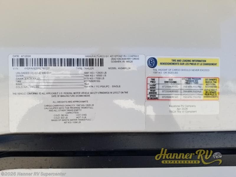 Request More Info on this 2025 Keystone Alpine Avalanche Edition 346FL Offered for sale by Hanner RV Supercenter