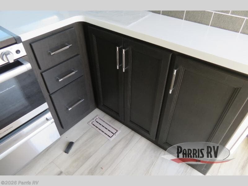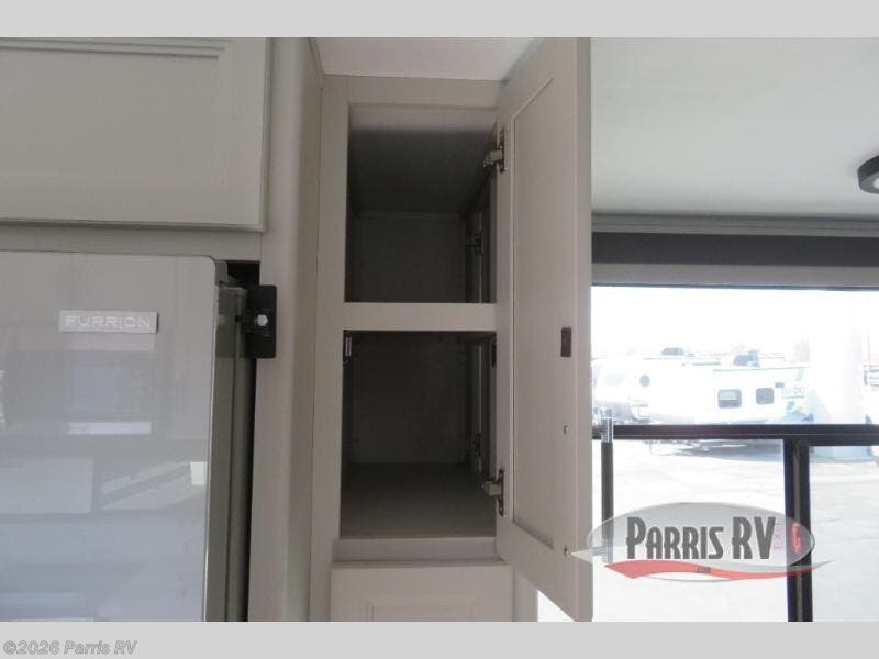 Are you looking for a spacious fifth wheel with space for you and your guests? Look no further than this four slide out unit with dual entry doors, a front master bedroom, and a rear bedroom/den with a loft! There is also a half bath here and a hide-a-bed sofa with storage underneath. You'll find the second hide-a-bed sofa in the living room, along with theater seating, a feature wall with a 50" TV, and a free-standing dinette with chairs where you can dine together. Furrion appliances in the kitchen let you create yummy meals each day, and there is a pantry and residential refrigerator to keep food stocked. Head to the front master bedroom where you can relax on the king bed slide out, store your clothes in the master closet, and easily use the dual entry bath. There is even stackable washer and dryer prep if you want the option to make laundry day easier!
