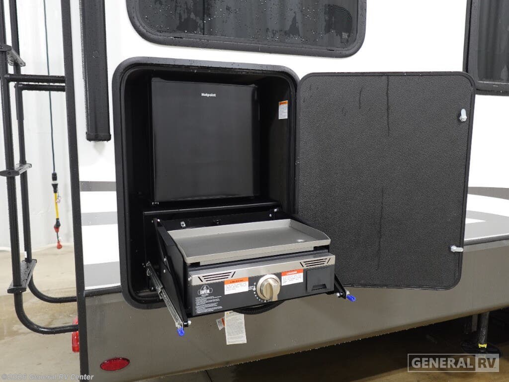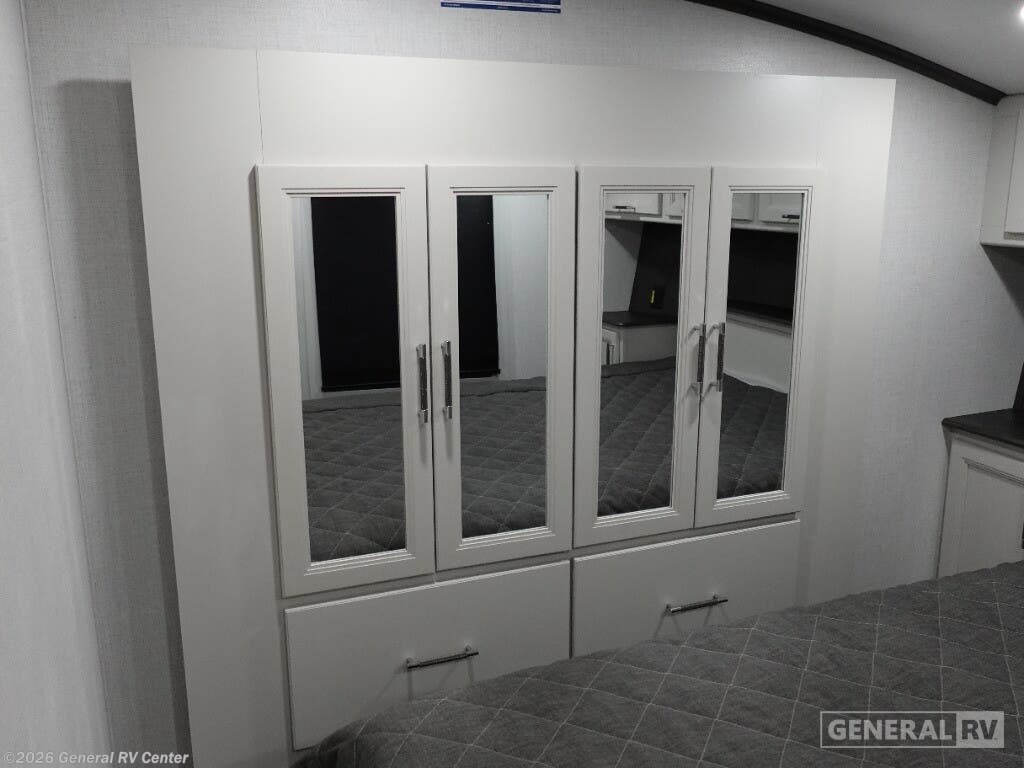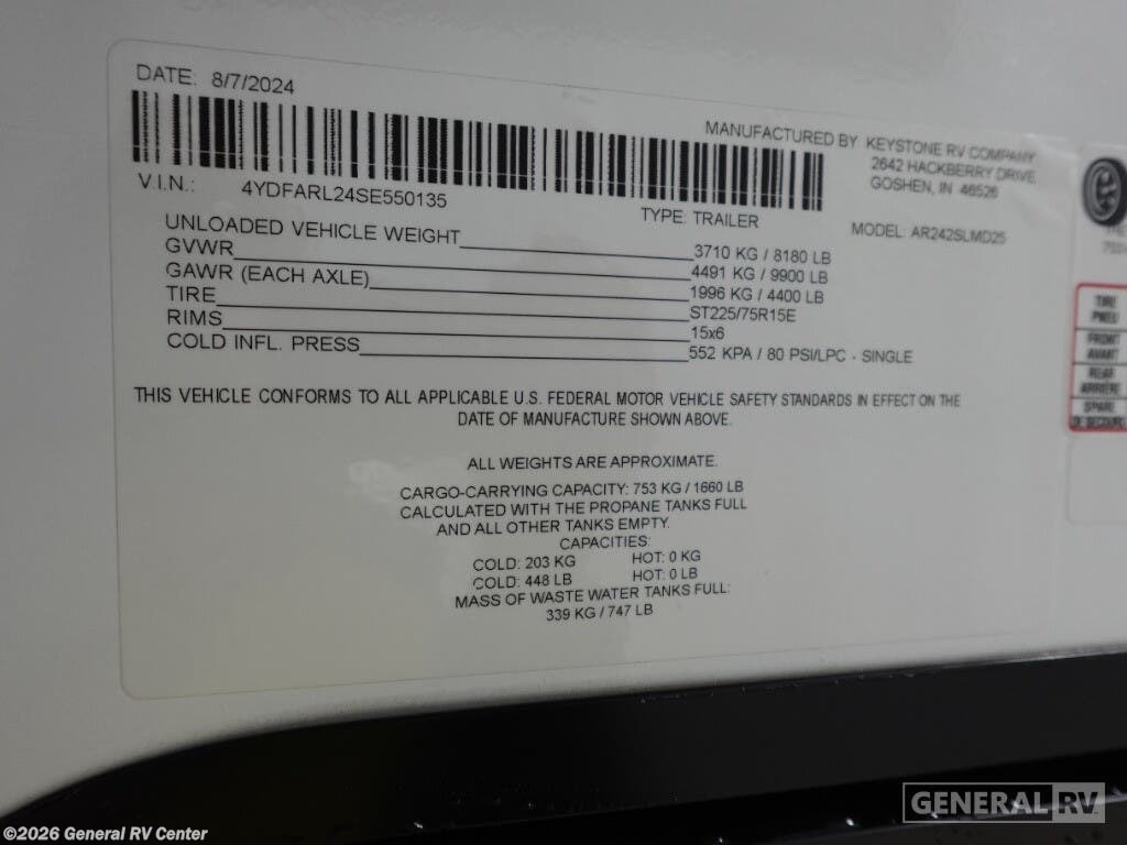 The 2025 Keystone Arcadia Super Lite 242SLMD is a masterclass in combining comfort and practicality, designed to enhance your travel experiences. This inviting RV offers a spacious layout with a rear kitchen that’s perfect for culinary adventures on the road. The full-size refrigerator and three-burner cooktop ensure you have all the conveniences of home, while the cleverly designed booth dinette provides a cozy spot for family meals or game nights. The center living area, featuring plush theater seating, is the ideal place to unwind after a day of exploration. As you move through the Arcadia, you'll appreciate the thoughtful touches in the center bath, complete with a 48" x 30" shower. The front bedroom is a sanctuary, featuring a comfortable queen bed flanked by nightstands and a wardrobe for all your storage needs. The 21 ft. powered retractable awning extends your living space outdoors, providing shade for the grill-n-chill outdoor kitchen. With a robust cargo capacity and ample tank sizes, this RV is ready for extended getaways. For more details, visit your nearest General RV dealership.