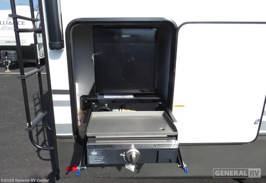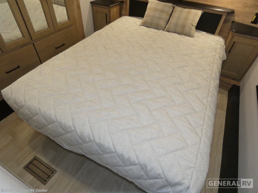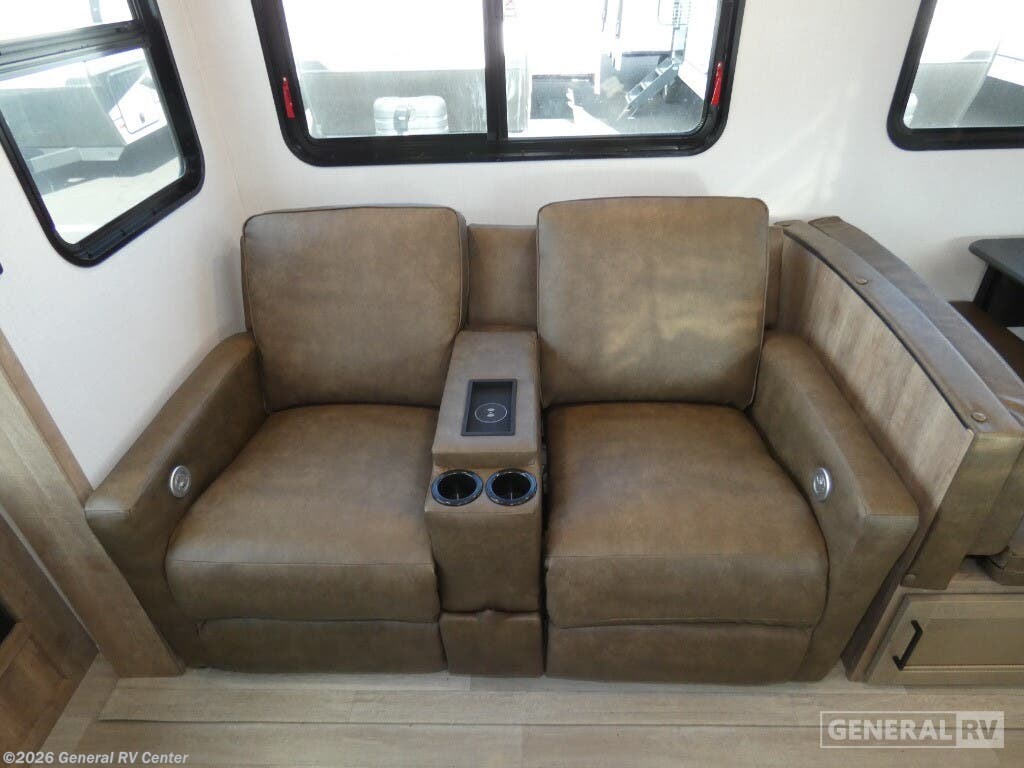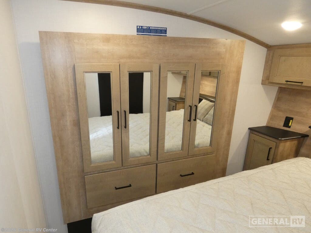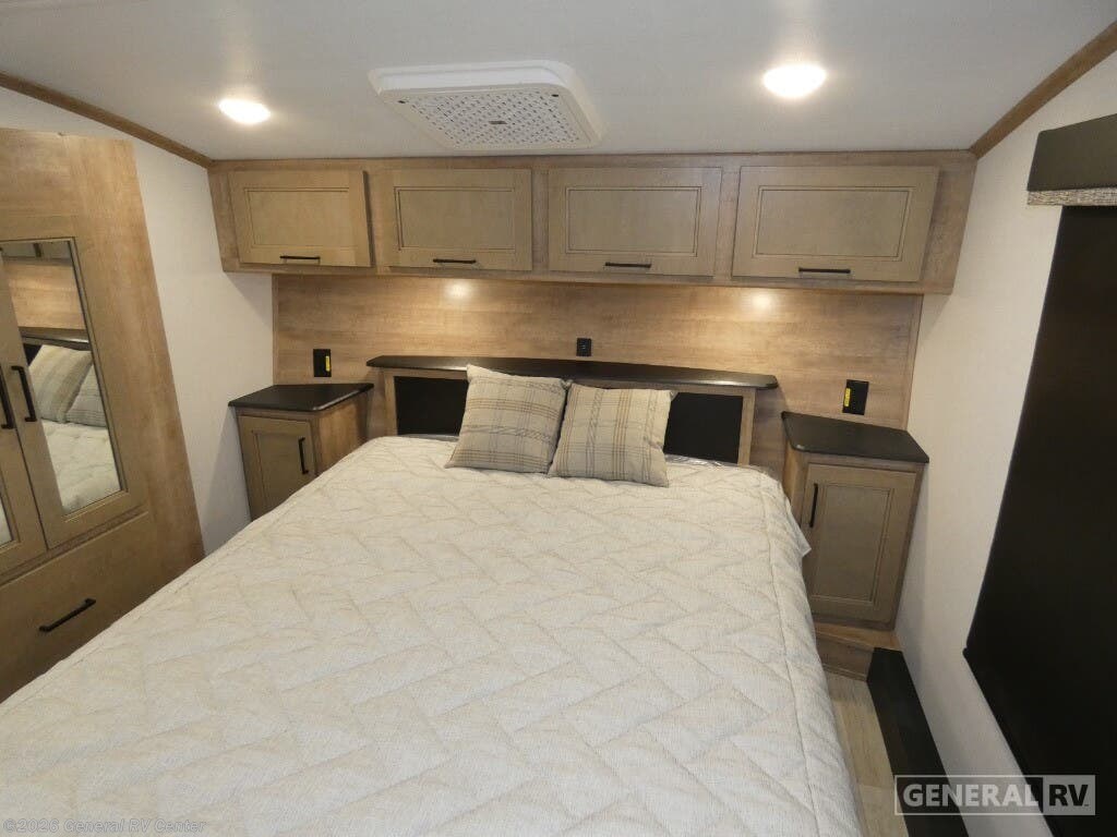 Experience the perfect blend of comfort and adventure with the 2025 Keystone Arcadia Super Lite 248SLRE. This thoughtfully designed RV offers a spacious and inviting interior, ideal for families or couples seeking a cozy retreat on the road. The rear living area features plush theater seating and a booth dinette, providing ample space for relaxation and dining. The center kitchen is equipped with a full-size electric refrigerator and a three-burner cooktop, ensuring you have everything you need to whip up delicious meals. The walk-in pantry offers generous storage, keeping your essentials organized and within reach. The front bedroom boasts a luxurious queen bed, flanked by nightstands and a wardrobe, offering a serene space for rest and rejuvenation. The center bath is conveniently located and features a 48" x 30" shower, ensuring a refreshing start to your day. With two slides, this RV expands to offer even more living space, and the 20-foot powered retractable awning creates a perfect outdoor oasis. Whether you're lounging by the fireplace or enjoying the grill-n-chill outdoor kitchen, the Arcadia Super Lite 248SLRE promises an unforgettable journey. For more details, visit your nearest General RV dealership.