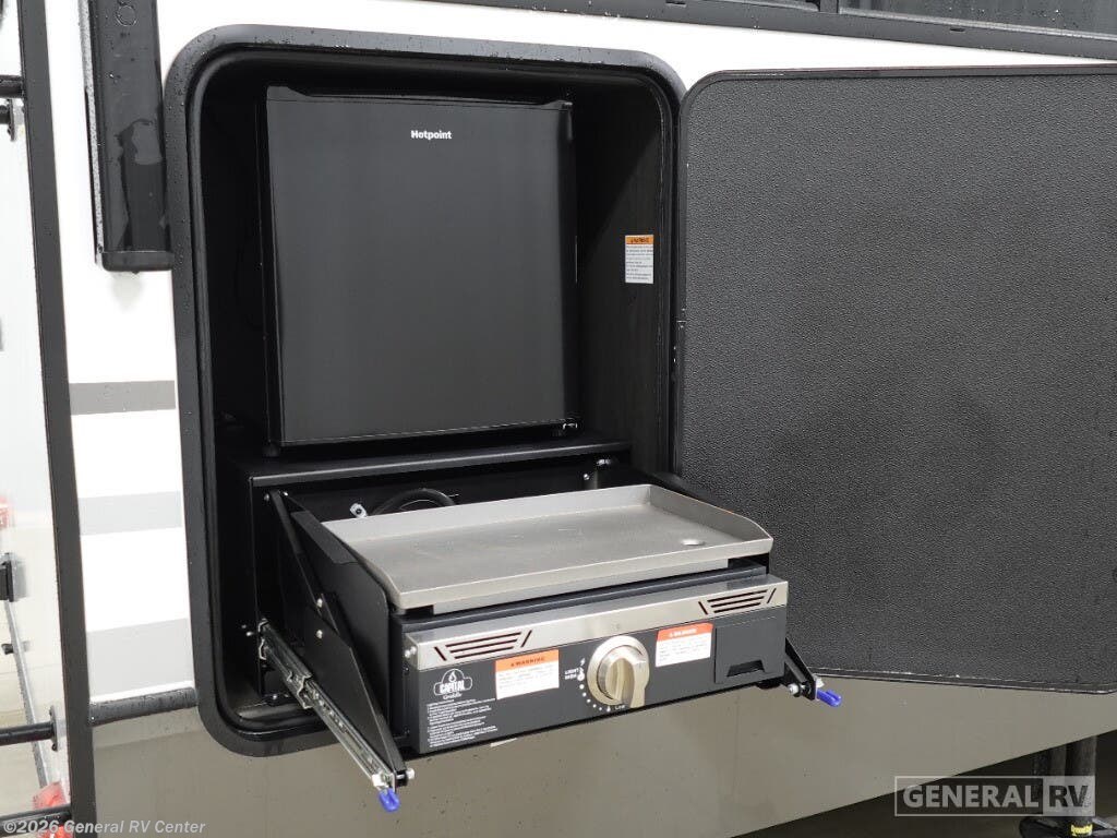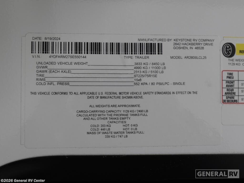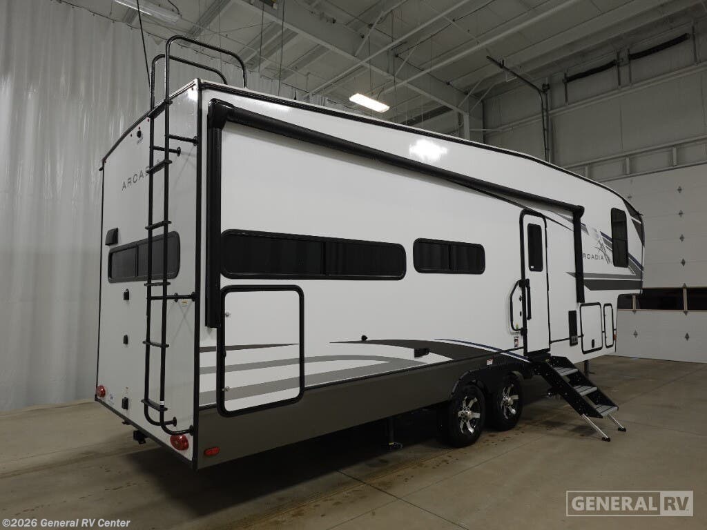 Experience the perfect blend of comfort and functionality with the 2025 Keystone Arcadia Super Lite 260SLCL. This thoughtfully designed RV invites you into a world where every detail enhances your travel experience. The rear kitchen is a culinary haven, featuring a full-size electric refrigerator and a three-burner cooktop, making meal prep a breeze. Enjoy your creations in the cozy center living area, where theater seating and a hide-a-bed provide ample space for relaxation or entertaining guests. The pull-out dinette table is perfect for intimate dinners or game nights, while the fireplace adds a touch of warmth and ambiance. Retreat to the front bedroom, where a plush queen bed awaits to cradle you in comfort after a day of adventure. The center bath offers modern conveniences with a 48" x 30" shower, ensuring you stay refreshed on the road. Step outside and extend your living space with the 19 ft. powered retractable awning, perfect for enjoying the great outdoors. The Grill-N-Chill outdoor kitchen is an added bonus, allowing you to savor alfresco dining under the stars. With its sleek design and practical features, the Arcadia Super Lite 260SLCL is your ticket to unforgettable journeys. For more information, visit your nearest General RV dealership.