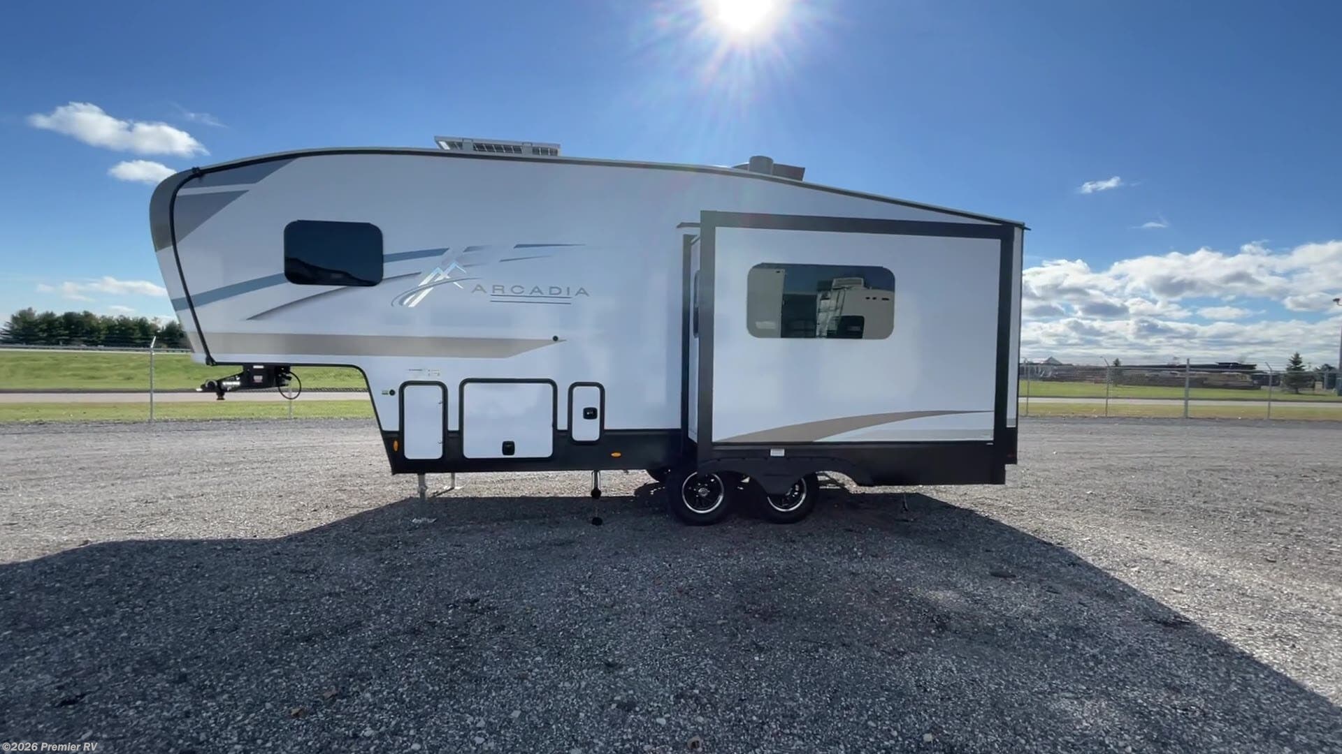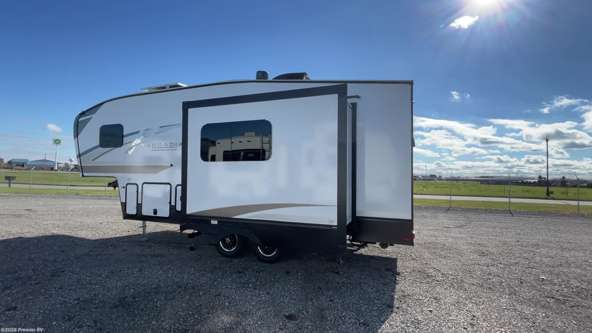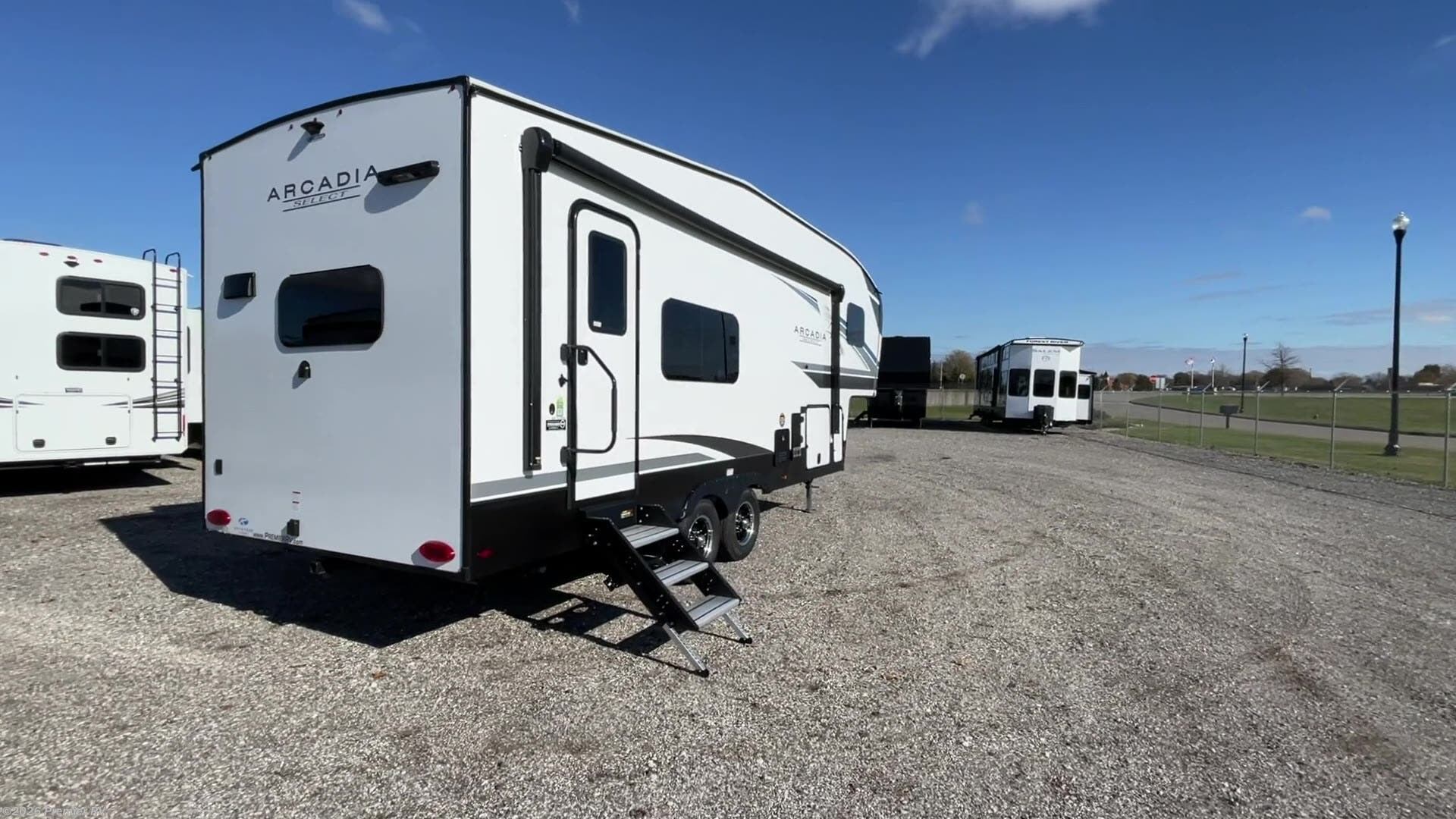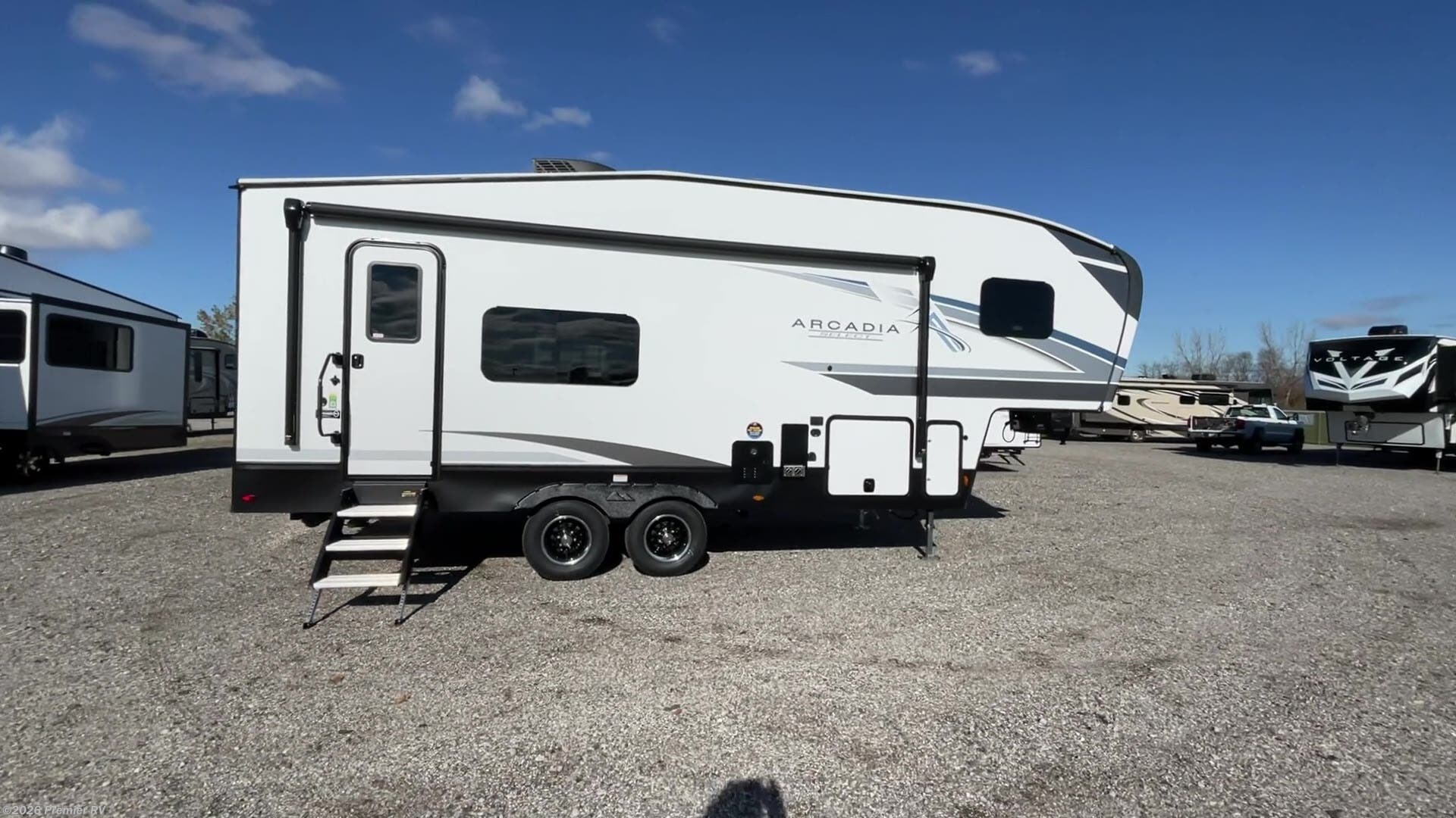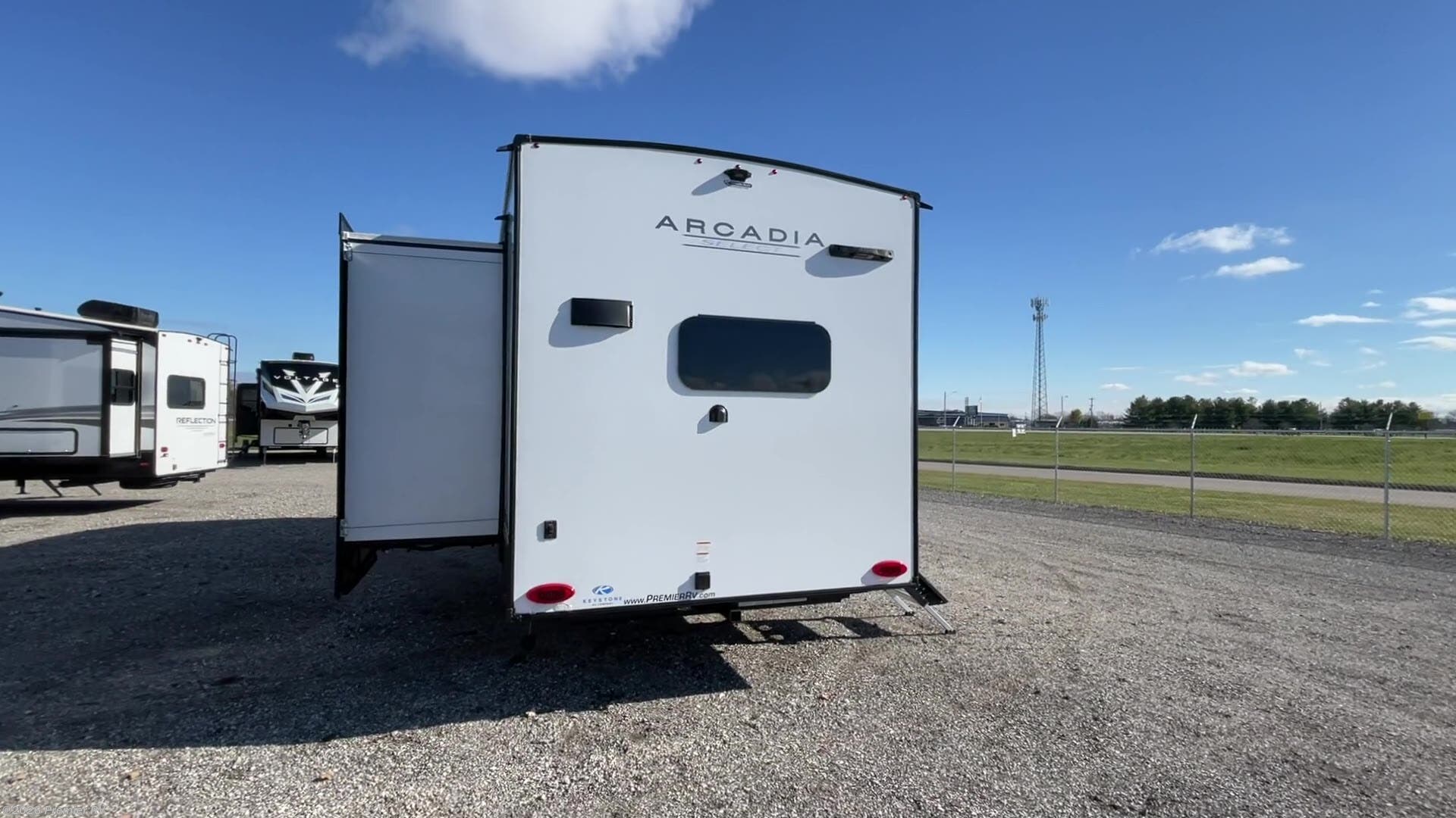 ARCADIA SELECT PACKAGE, FRAMELESS WINDOWS, SELECT GRAPHICS AND WHEEL PACKAGE, 10.4 CU FT 12V REFRIGERATOR, .9 CU FT MICROWAVE, 17 INCH OVEN, 15K MAIN AIR CONDITIONER, DETACHABLE 50 AMP SHORE CORD, DUAL ZONE BLUETOOTH RADIO W/DVD PLAYER, TANKLESS WATER HEATER, 40in TV, HEATED ENCLOSED UNDERBELLY, STANDARD TRI-FOLD SLEEPER SOFA, ROTOFLEX PIN BOX, MAX TURN TECHNOLOGY, COLOR CODED WIRING, HYPERDECK FLOORING, BACK UP CAMERA PREP, RECEIVER HITCH: TOWING OR ACCESSORY, KEY TV, GIGGY BOX-INDUSTRY'S FIRST ORGANIZED 12V WIRING DISTRIBUTION, PAINTED FIBERGLASS FRONT CAP, DUAL ATTIC VENTS, PEX PLUMBING LINES, SEALED PIN BOX, HIGH RISE KITCHEN FAUCET, RESIDENTIAL HARDWOOD CABINET DOORS, UNDER BED STORAGE WITH STRUT ASSIST, DUAL 30 LB LP TANKS, FULL SIZE SPARE TIRE, BLADE AIR HANDLING SYSTEM, ELECTRIC REAR STABILIZER JACKS, SOLAR FLEX PROTECT 220, THEATER SEATING IN PLACE OF TRIFOD SOFA (N/A 27SBH), RVIA SEAL, STRUCTURAL I-BEAM FRAME W/STAMPED STEEL CROSS MEMBERS & OUTRIGGERS, DEXTER E-Z LUBE BEARING LUBRICATION SYSTEM, DEXTER NEV-R-ADJUST ELECTRIC BRAKE SYSTEM, HEAVY DUTY LEAF SPRING AXLES W/5 YEAR LIMITED WARRANTY, ROAD ARMOR RUBBERIZED EQUALIZATION SUSPENSION SYSTEM, ROAD ARMOR GREASABLE SUSPENSION WET BOLTS W/BRONZE BUSHINGS, ROAD ARMOR HD 1/2in THICK AXLE LINKS, UPGRADED ROTOFLEX HITCH PIN, LAMINATED SIDEWALLS W/5 SIDED ALUMINUM SUPERSTRUCTURE, TINTED SAFETY GLASS WINDOWS, AUTOMOTIVE GRADE PAINTED FIBERGLASS FRONT CAP W/KEYSHIELD PROTECTION & AMBER LED LIGHTS, ALPHAPLY ROOF MEMBRANE W/LIMITED LIFETIME WARRANTY, CSA CONSTRUCTION AND SEAL, ONE PIECE HEATED & ENCLOSED POLYPROPYLENE UNDERBELLY, ELECTRIC STABILIZER JACKS, FRICTION HINGE ENTRY DOOR, LIPPERT SOLIDSTEP ON MAIN ENTRY, FULL PASS THROUGH STORAGE W/ SLAM LATCH BAGGAGE DOORS, REAR OBSERVATION PREP, BATTERY DISCONNECT, CONVENIENCE CENTER, 50 AMP ELECTRIC PRE WIRED & BRACED FOR DUCTED BEDROOM A/C OPTION, OUTSIDE SHOWER, ELECTRIC AWNING WITH GAS STRUT ARM, 2in TOWING HITCH W/300 LB PIN WEIGHT & 3 000 LB TOWING CAPACITY, FRAMELESS TINTED WINDOWS, TALL SLIDE OUT FOR ADDED COMFORT & HEAT ROOM, RESIDENTIAL PLEATED SHADES WHERE APPLICABLE, THEATER SEAT, TRIFOLD HIDE A BED SLEEPER SOFA IPO THEATER SEAT, 3 YEAR LIMITED STRUCTURAL WARRANTY, 1 YEAR LIMITED BASE WARRANTY, COLOR CODED UNIFIED WIRING STANDARD, 4G LTE & WIFI PREP, TUF LOK THERMOPLASTIC DUCT JOINERS, KEYTV MULTISOURCE SIGNAL CONTROLLER, TRU FIT SLIDE CONSTRUCTION, GIGGY BOX 12V DISTRIBUTION CENTER, SEAMLESS PRESSED COUNTERTOPS, STAINLESS STEEL UNDERMOUNT KITCHEN SINK, HIGH RISE CHEF'S FAUCET & SPRAYER, BOOTH DINETTE W/WALL MOUNT, FREE STANDING TABLE & CHAIRS, 2-30 LB LP TANKS, BLADE PURE 15K BTU DUCTED ULTRA QUIET COLEMAN MACH QUIET SERIES A/C & RESIDENTIAL FILTER, BLADE PURE 13.5K BTU DUCTED ULTRA QUIET COLEMAN MACH QUIET SERIES A/C & RESIDENTIAL FILTER IN BEDROOM, 0.9 CU FT MICROWAVE, 17in FURRION RANGE W/PIEZO IGNITION & GLASS STOVETOP COVER, LED INTERIOR AND EXTERIOR LIGHTING, 10 CU FT 12V SOLAR FRIENDLY REFRIGERATOR W/DENT RESISTANT DOORS, GIRARD ON DEMAND TANKLESS WATER HEATER, QUEEN BED W/UNDERBED STORAGE, LED READING LIGHTS, OUTLETS & USB AT HEADBOARD, CABLE TV/SATELLITE READY, SEAMLESS PRESSED COUNTERTOPS W/LARGE SINK, LARGE SHOWER W/RETRACTABLE DOOR AND SKYLIGHT, PORCELAIN FOOT FLUSH TOILET, MEDICINE CABINET, BREAKAWAY SWITCH, GFI RECEPTACLES, CARBON MONOXIDE DETECTOR, SMOKE DETECTOR, PROPANE GAS LEAK DETECTOR, FIRE EXTINGUISHER, PREMIER RV DIFFERENCE, NO PRESSURE FAMILY STYLE SALES, LOCALLY OWNED & OPERATED, OVER 25 000 SQFT ON 9 ACRES, NO HIDDEN FEES-BATTERY PREP LP FRT OR FINANCE FEES, TRANSPARENT PRICING, PREMIER PACKAGE AVAILABLE ASK SALESPERSON FOR DETAILS, FREE ORIENTATION WITH QUALIFIED SERVICE TECHNICIAN, ''WHAT CUSTOMERS WANT AND DESERVE'', EVERY EFFORT IS MADE TO GIVE OUR CUSTOMERS, THE MOST ACCURATE INFORMATION AND, WEB PHOTOS. DUE TO MANUFACTURERS VARIANCE, WEBSITE IMAGES MAY BE TAKEN OF STOCK, UNITS AND MAY DIFFER FROM ACTUAL, UNITS BEING SOLD, NOT RESPONSIBLE FOR DISCREPENCIES, RVDA TOP 50 DEALER