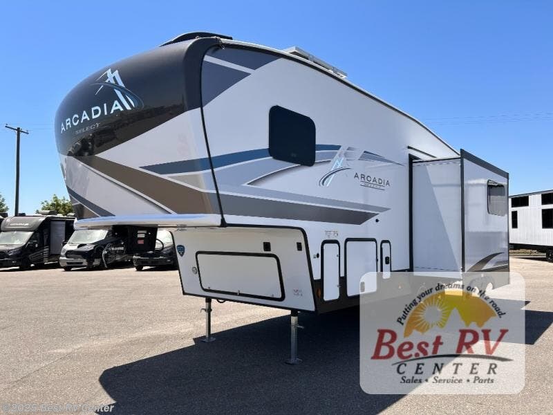 With any Arcadia Select fifth wheel by Keystone you will enjoy easy towability and at-home comforts at an affordable price! The laminated sidewalls with five sided aluminum superstructure will provide a strong foundation so you can enjoy your RV for years to come, plus a one-piece, heated and enclosed polypropylene underbelly means you can camp year around! And an upgraded Roto-Flex hitch pin with will make it easy to tow. Head inside to find tall slides for added space, seamless, pressed countertops, convenient underbed storage, and a large shower with a retractable door and skylight. These fifth wheels also include a Blade Pure A/C system, Girard on-demand tankless water heater, two 30 lb. LP tanks, and more utilities to make your camping experience run smoothly.