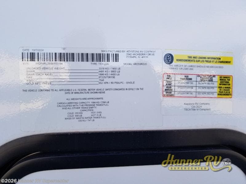 Request More Info on this 2025 Keystone Arcadia Select 25SRD Offered for sale by Hanner RV Supercenter