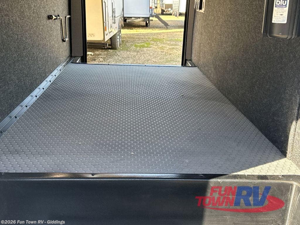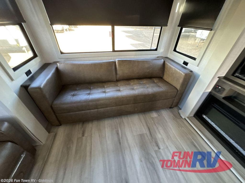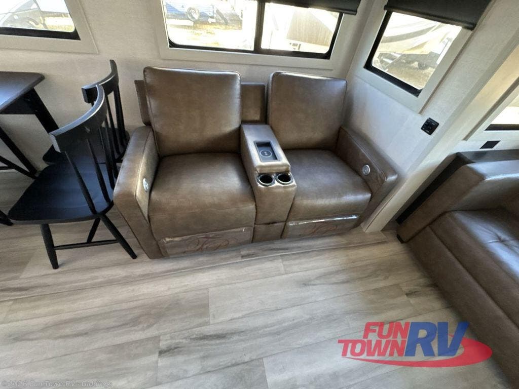Make each camping trip complete with this fifth wheel in tow! The chef of your group will love making meals each day in the fully equipped kitchen that includes a kitchen island, a hutch, plus a pantry for food storage. The booth dinette will provide a place to dine each day, and the theater seating is right across from the TV with storage behind and a fireplace for easy viewing. And if you're not needing additional sleeping space you can switch out the booth dinette for the optional free-standing dinette! If you have guests, they can sleep on the rear XL sofa sleeper each night that extends to king-size, while you take the front private bedroom. Here, you'll find a queen bed, a wardrobe slide out, plus dual nightstands for your things.