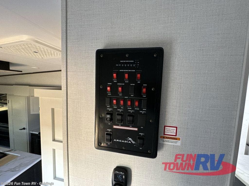 With any Arcadia Super Lite fifth wheel by Keystone, you will enjoy easy-to-tow lengths, unmatched storage, and oversized windows to let the outdoor views in. The structural I-beam frame will provide a strong foundation to your RV, and the Curt Performance Package means you can enjoy hassle-free towing. You will be able to camp year around thanks to the Peak Weather Package that includes a heated and enclosed underbelly, a 35K BTU furnace, and Keystone's exclusive HyperDeck floor that adds an additional layer of insulation to your floor. The interior will make you feel at home with residential hardware, seamless pressed countertops, black roller shades, and ample storage space. Sometimes the best things come in smaller packages; choose a Arcadia Super Lite today!