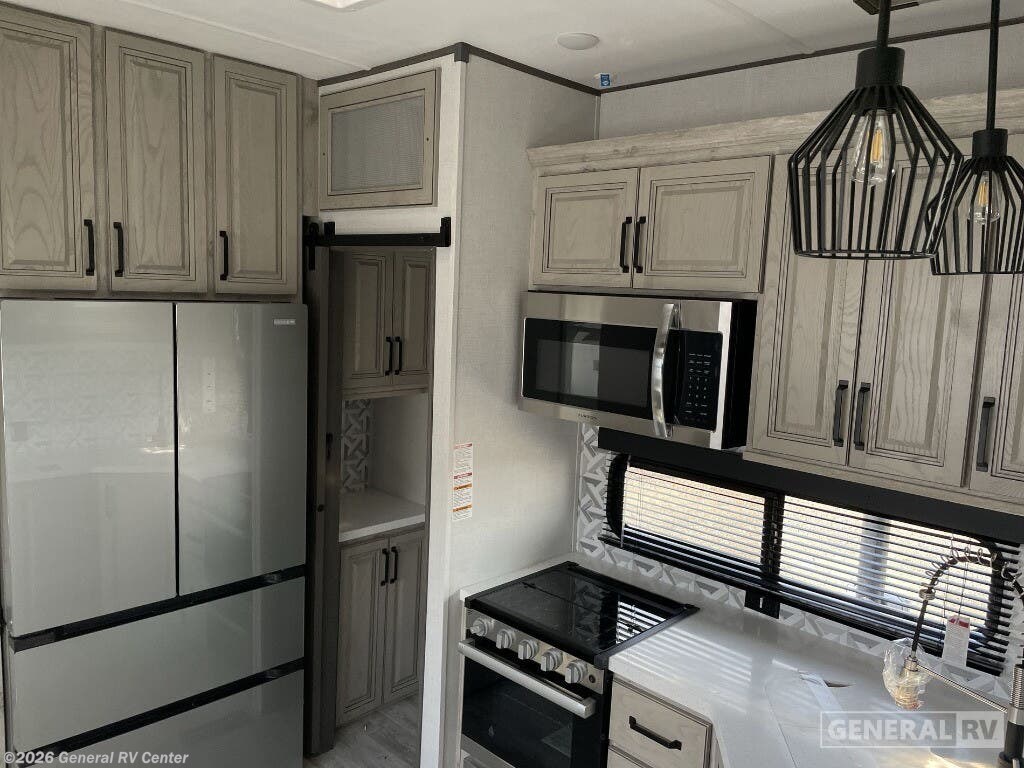 Discover the 2025 Keystone Avalanche 346FL, a spacious fifth wheel designed for those who crave luxury and comfort on the road. With its impressive 38.92-foot length and four expansive slides, this RV offers a front living area that feels like a home theater, complete with tri-fold sofa sleepers and theater seating, perfect for movie nights under the stars. The heart of this RV is its center kitchen, featuring a full-size electric refrigerator and a three-burner cooktop, making meal prep a breeze whether you're parked in the mountains or by the beach. Retreat to the rear bedroom, where a king-size bed awaits, surrounded by ample storage options, including a master closet and colossal storage below. The center bath, equipped with a stylish plastic/glass shower, ensures you’ll freshen up in comfort. With a 26-foot powered retractable awning, outdoor relaxation is just as inviting. And while this model is prepped for a washer/dryer, it's all about giving you the flexibility to customize your adventures. For more details, visit your nearest General RV dealership and start your journey today!