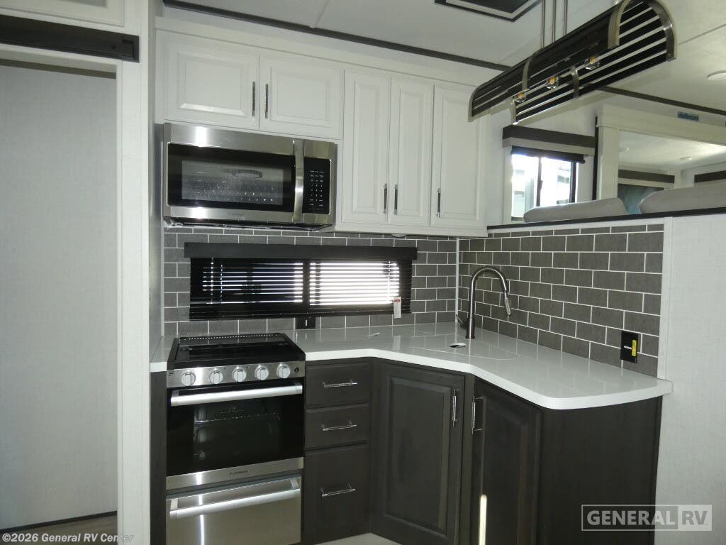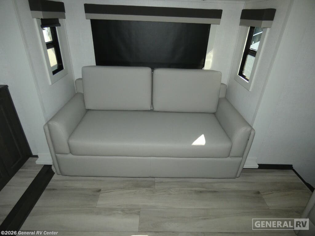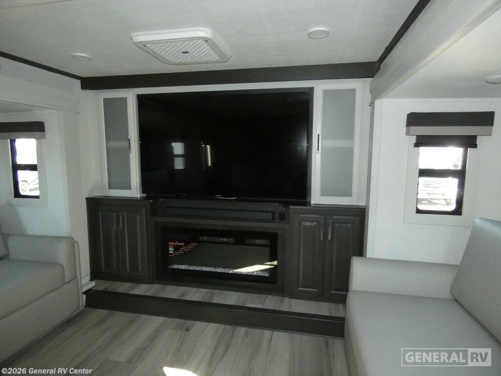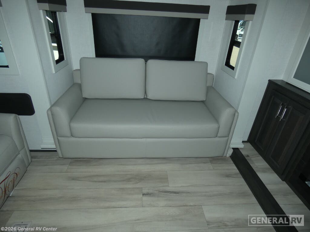 Discover the 2025 Keystone Avalanche 346FL, a spacious fifth wheel designed for those who crave luxury and comfort on the road. With its impressive 38.92-foot length and four expansive slides, this RV offers a front living area that feels like a home theater, complete with tri-fold sofa sleepers and theater seating, perfect for movie nights under the stars. The heart of this RV is its center kitchen, featuring a full-size electric refrigerator and a three-burner cooktop, making meal prep a breeze whether you're parked in the mountains or by the beach. Retreat to the rear bedroom, where a king-size bed awaits, surrounded by ample storage options, including a master closet and colossal storage below. The center bath, equipped with a stylish plastic/glass shower, ensures you’ll freshen up in comfort. With a 26-foot powered retractable awning, outdoor relaxation is just as inviting. And while this model is prepped for a washer/dryer, it's all about giving you the flexibility to customize your adventures. For more details, visit your nearest General RV dealership and start your journey today!