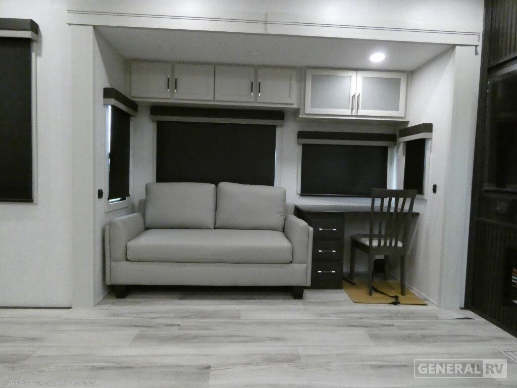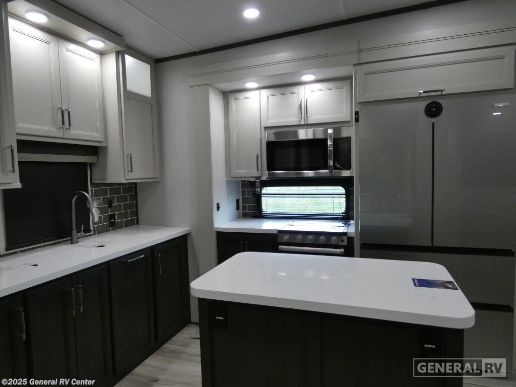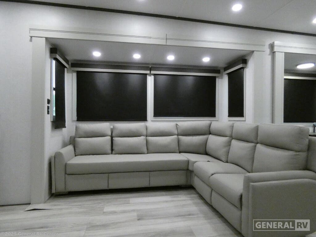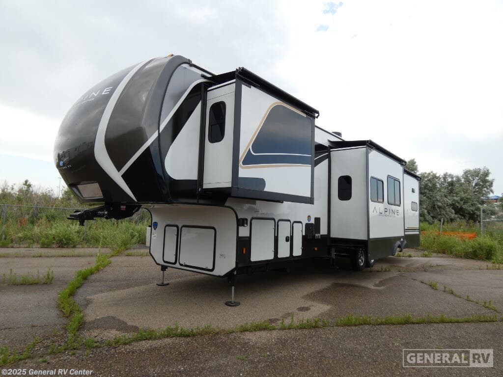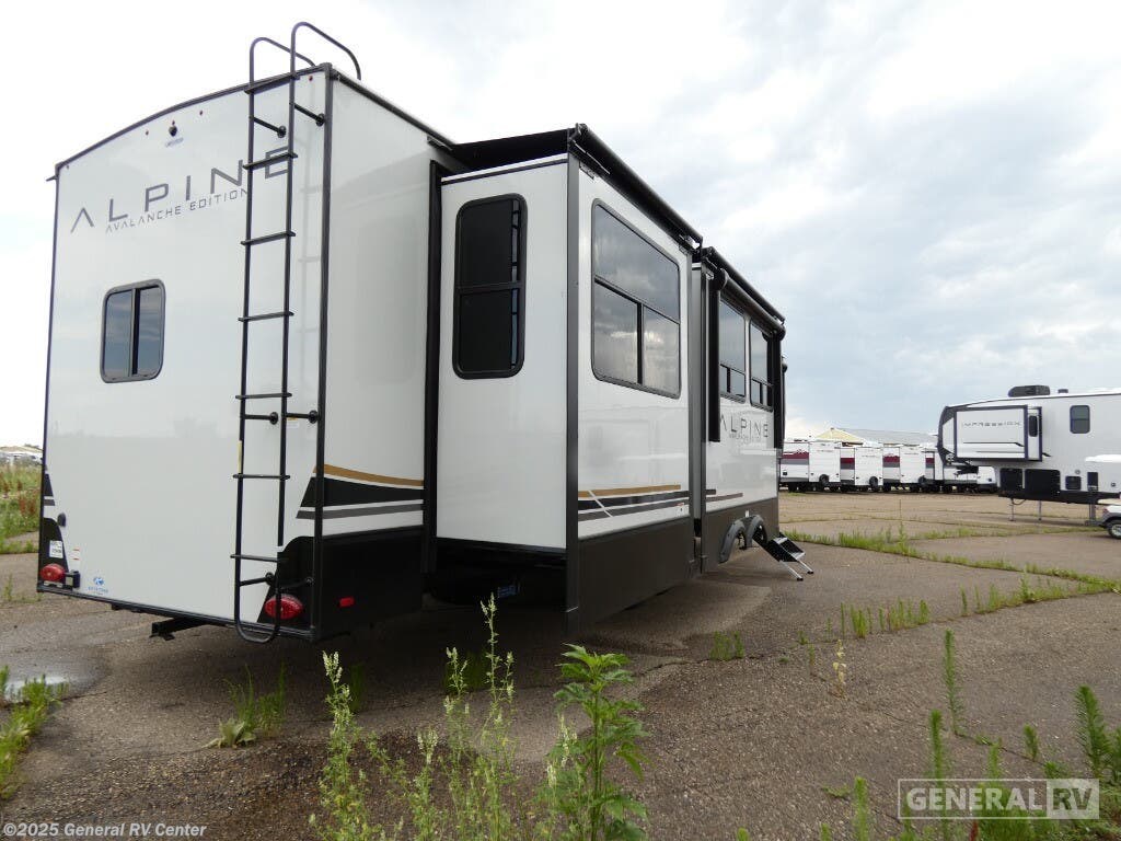 Experience the pinnacle of luxury and comfort with the 2025 Keystone Alpine 366LS. This exquisite fifth wheel is designed to elevate your adventures with its spacious and well-thought-out floorplan. The rear kitchen, equipped with a full-size electric refrigerator and a three-burner cooktop, offers a perfect space for culinary creations. The large island provides ample counter space, making meal prep a breeze. The center living area is a haven of relaxation, featuring the largest L-shaped sofa and recliners that invite you to unwind after a day of exploration. The front bedroom is a sanctuary of rest, boasting a king-sized bed with storage underneath and a master closet that’s prepped for a washer and dryer. The center bath, with its stylish plastic and glass shower, ensures convenience and privacy. With five slides, this RV offers expansive living space, and the dual powered retractable awnings extend your outdoor enjoyment. Whether you're embarking on a weekend getaway or a cross-country journey, the Alpine 366LS promises an unforgettable experience. For more details and to see this beauty in person, visit your nearest General RV dealership.