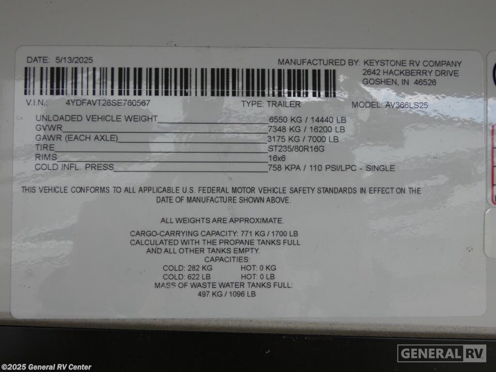 Request More Info on this 2025 Keystone Avalanche 366LS Offered for sale by General RV Center