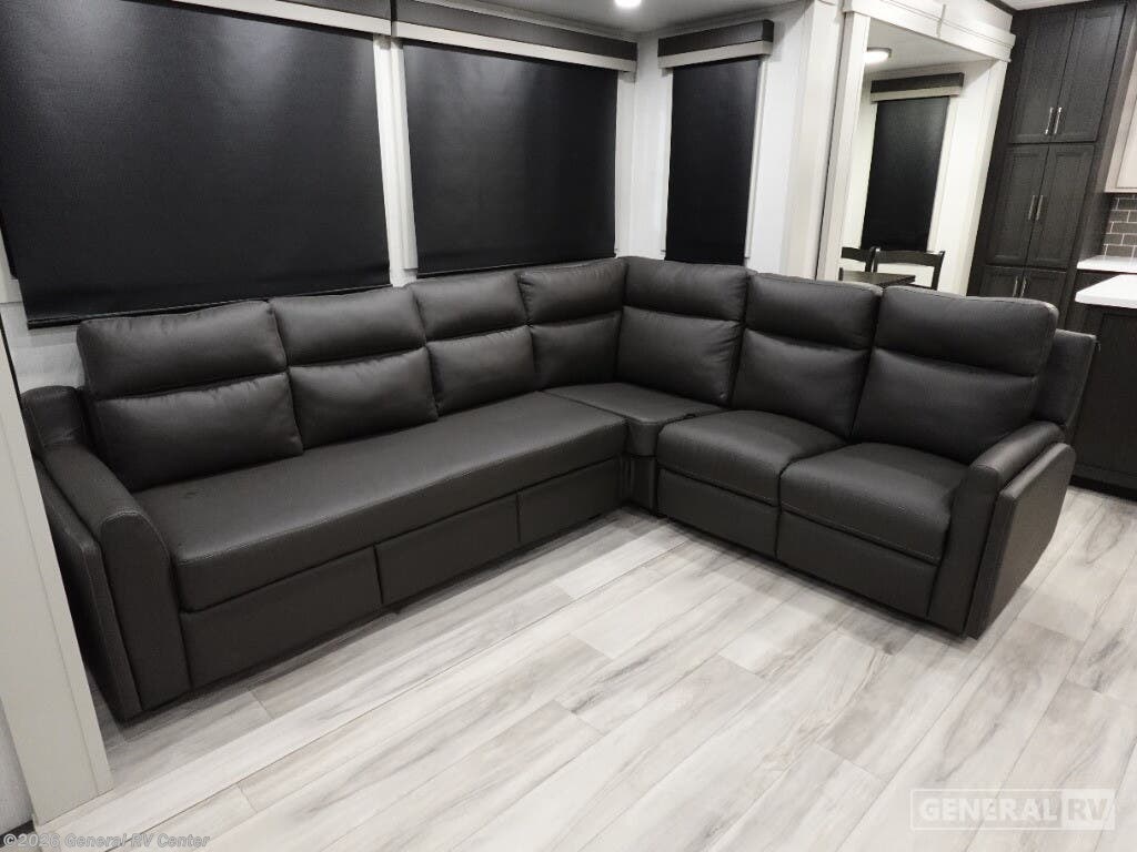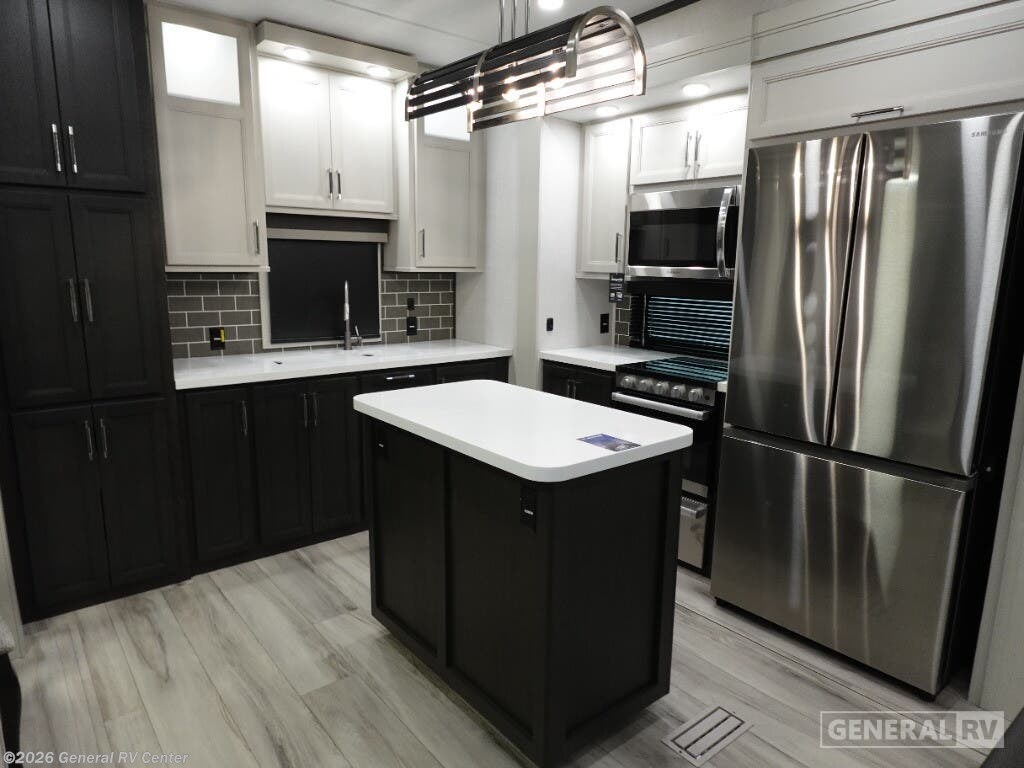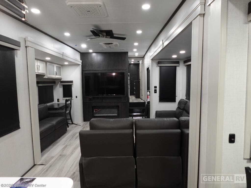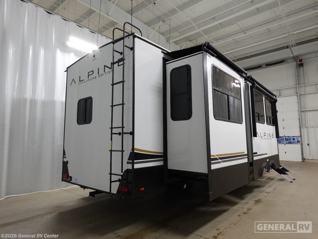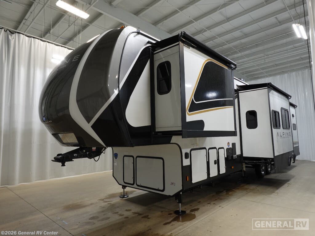 Experience the pinnacle of luxury and comfort with the 2025 Keystone Alpine 366LS. This exquisite fifth wheel is designed to elevate your adventures with its spacious and well-thought-out floorplan. The rear kitchen, equipped with a full-size electric refrigerator and a three-burner cooktop, offers a perfect space for culinary creations. The large island provides ample counter space, making meal prep a breeze. The center living area is a haven of relaxation, featuring the largest L-shaped sofa and recliners that invite you to unwind after a day of exploration. The front bedroom is a sanctuary of rest, boasting a king-sized bed with storage underneath and a master closet that’s prepped for a washer and dryer. The center bath, with its stylish plastic and glass shower, ensures convenience and privacy. With five slides, this RV offers expansive living space, and the dual powered retractable awnings extend your outdoor enjoyment. Whether you're embarking on a weekend getaway or a cross-country journey, the Alpine 366LS promises an unforgettable experience. For more details and to see this beauty in person, visit your nearest General RV dealership.