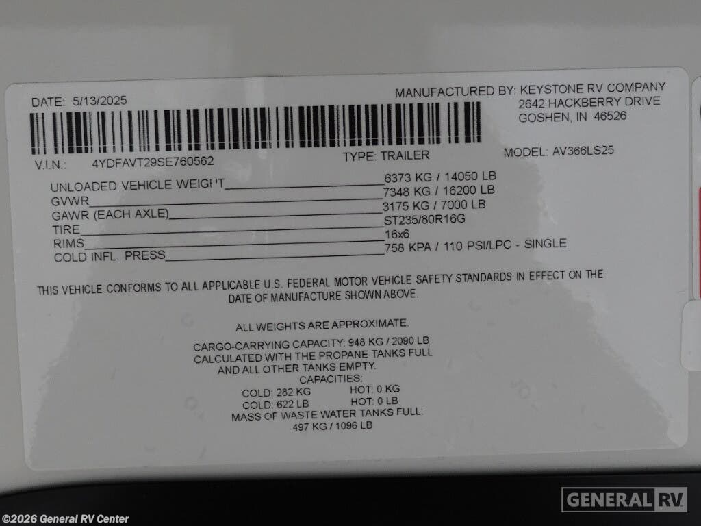 Request More Info on this 2025 Keystone Avalanche 366LS Offered for sale by General RV Center
