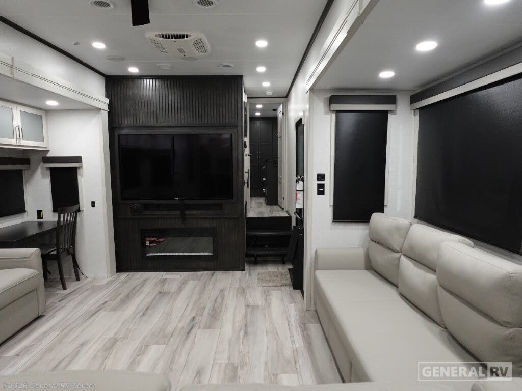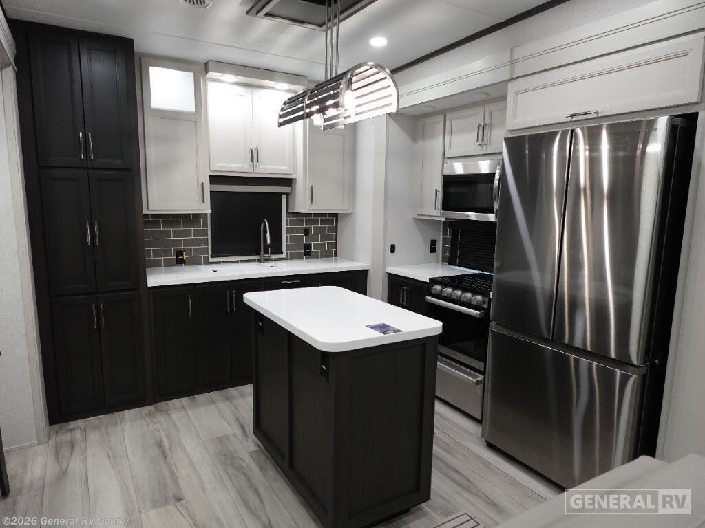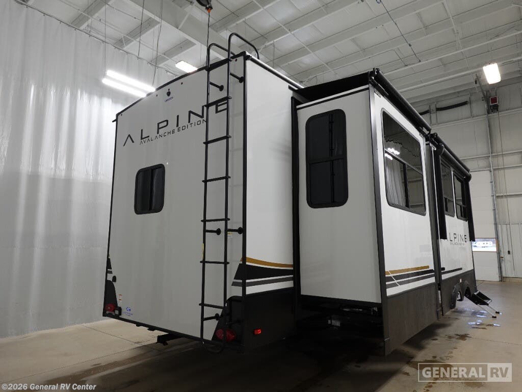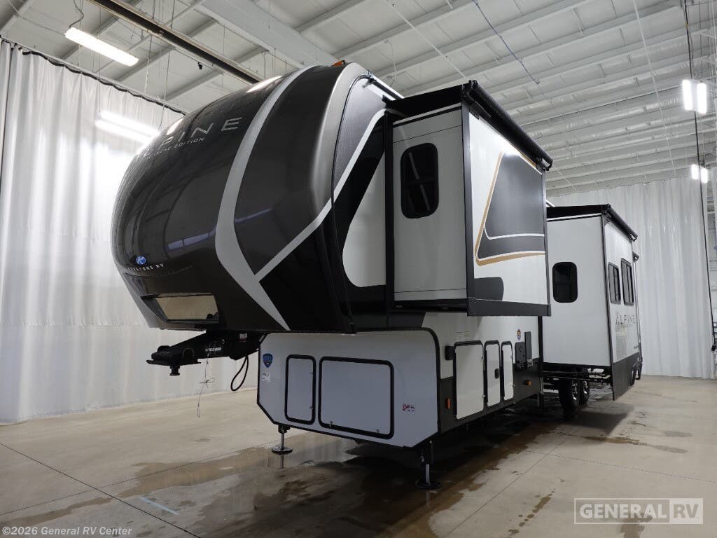 Experience the pinnacle of luxury and comfort with the 2025 Keystone Alpine 366LS. This exquisite fifth wheel is designed to elevate your adventures with its spacious and well-thought-out floorplan. The rear kitchen, equipped with a full-size electric refrigerator and a three-burner cooktop, offers a perfect space for culinary creations. The large island provides ample counter space, making meal prep a breeze. The center living area is a haven of relaxation, featuring the largest L-shaped sofa and recliners that invite you to unwind after a day of exploration. The front bedroom is a sanctuary of rest, boasting a king-sized bed with storage underneath and a master closet that’s prepped for a washer and dryer. The center bath, with its stylish plastic and glass shower, ensures convenience and privacy. With five slides, this RV offers expansive living space, and the dual powered retractable awnings extend your outdoor enjoyment. Whether you're embarking on a weekend getaway or a cross-country journey, the Alpine 366LS promises an unforgettable experience. For more details and to see this beauty in person, visit your nearest General RV dealership.
