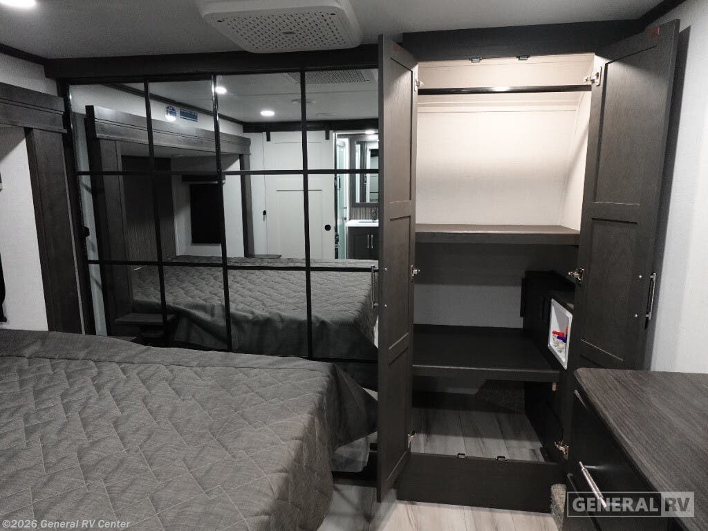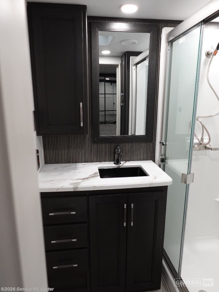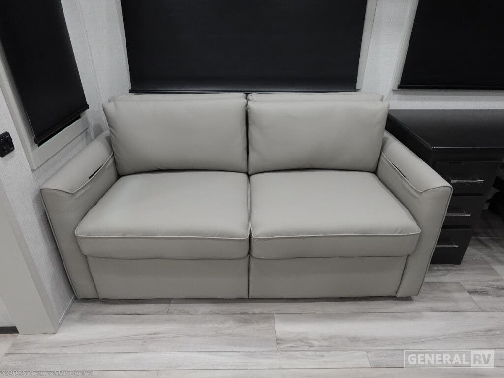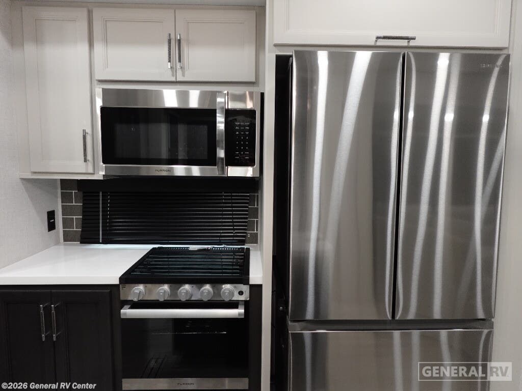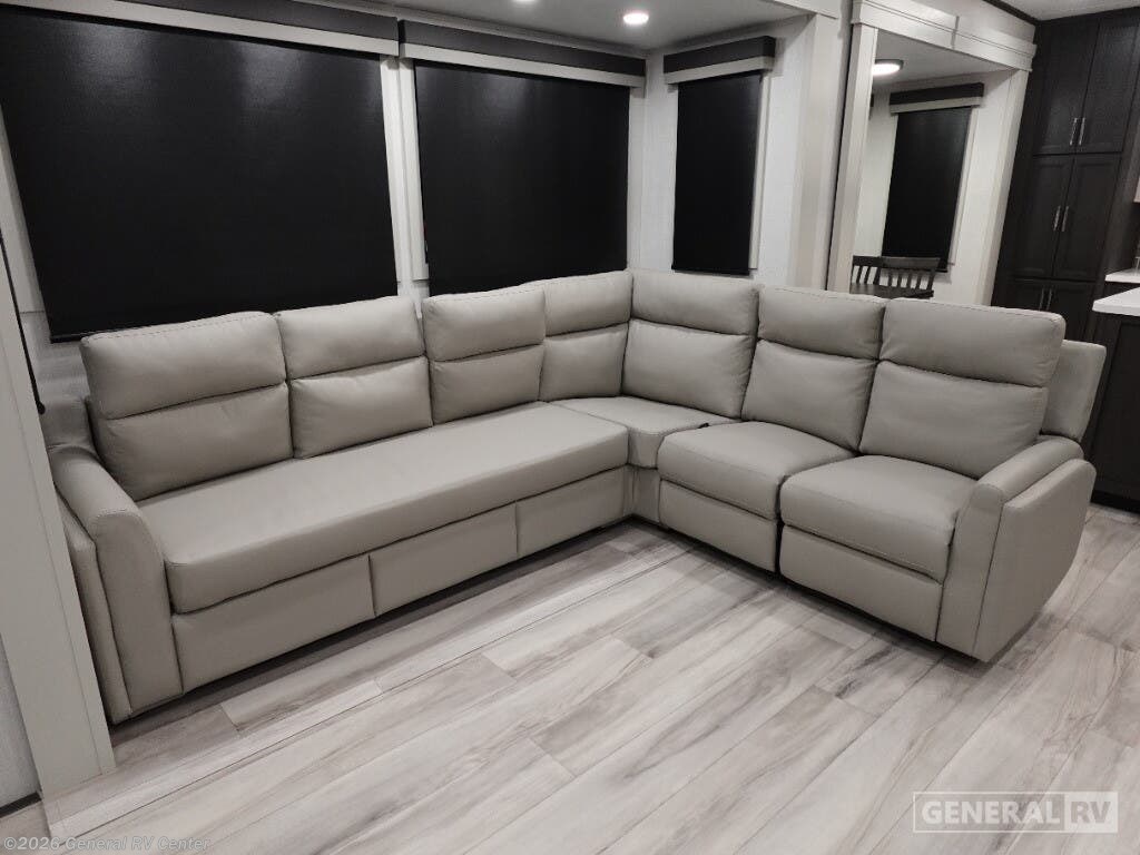 Experience the pinnacle of luxury and comfort with the 2025 Keystone Alpine 366LS. This exquisite fifth wheel is designed to elevate your adventures with its spacious and well-thought-out floorplan. The rear kitchen, equipped with a full-size electric refrigerator and a three-burner cooktop, offers a perfect space for culinary creations. The large island provides ample counter space, making meal prep a breeze. The center living area is a haven of relaxation, featuring the largest L-shaped sofa and recliners that invite you to unwind after a day of exploration. The front bedroom is a sanctuary of rest, boasting a king-sized bed with storage underneath and a master closet that’s prepped for a washer and dryer. The center bath, with its stylish plastic and glass shower, ensures convenience and privacy. With five slides, this RV offers expansive living space, and the dual powered retractable awnings extend your outdoor enjoyment. Whether you're embarking on a weekend getaway or a cross-country journey, the Alpine 366LS promises an unforgettable experience. For more details and to see this beauty in person, visit your nearest General RV dealership.