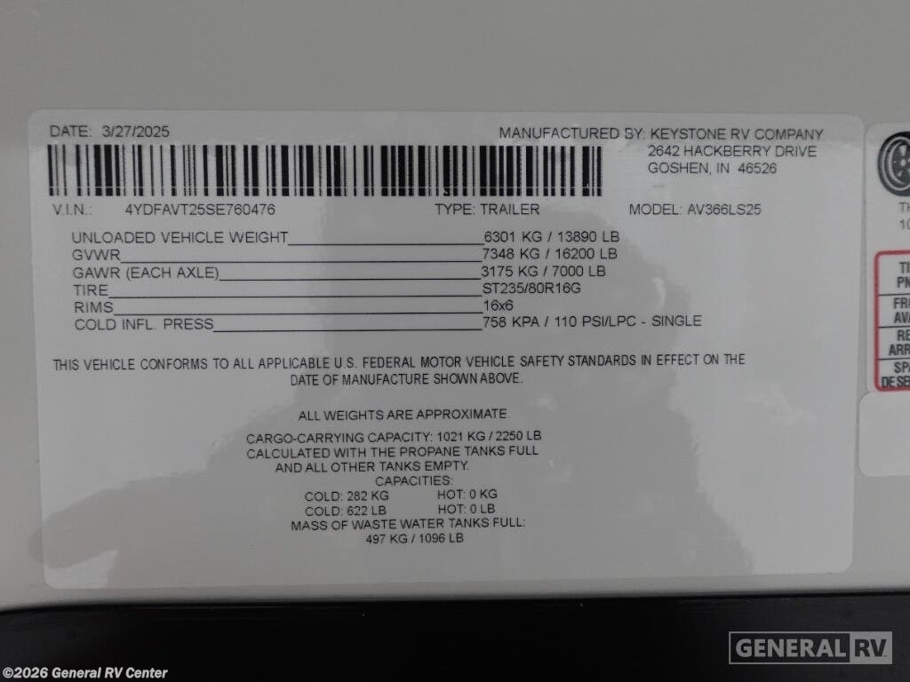 Request More Info on this 2025 Keystone Avalanche 366LS Offered for sale by General RV Center