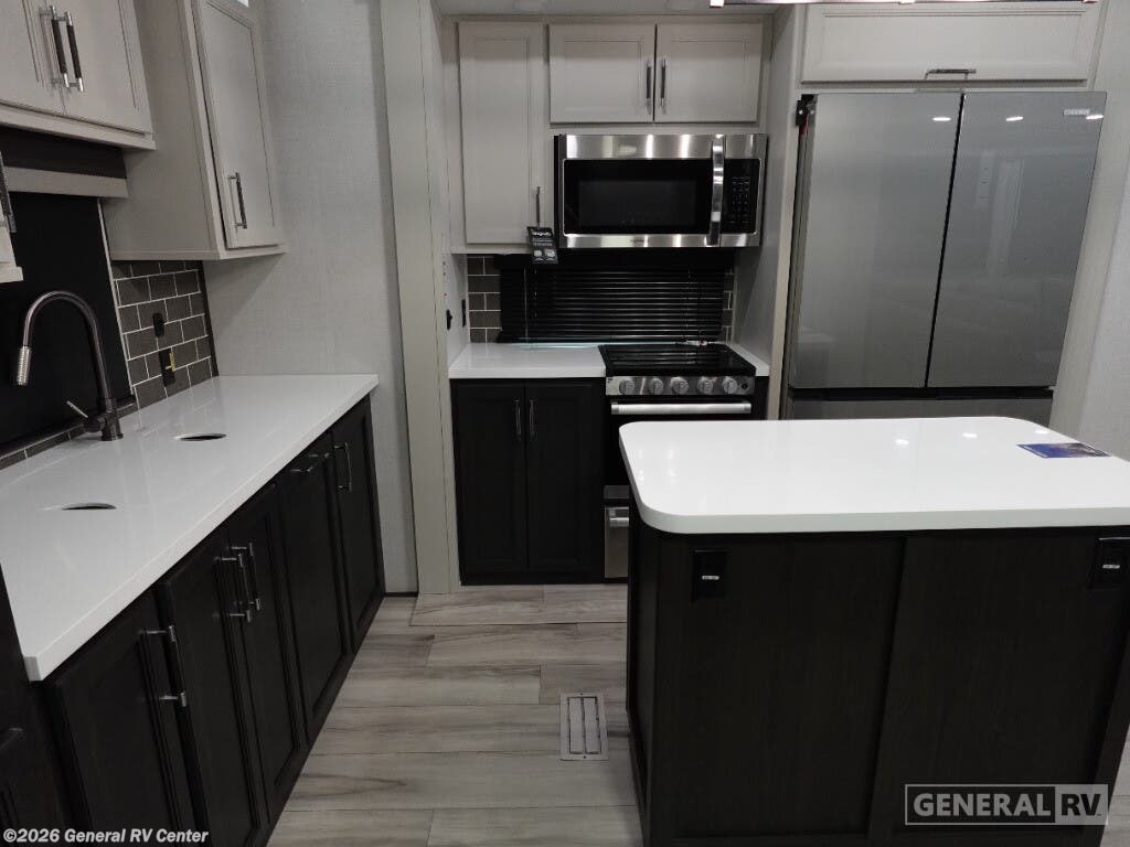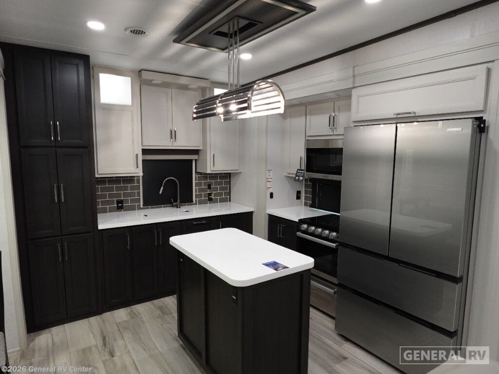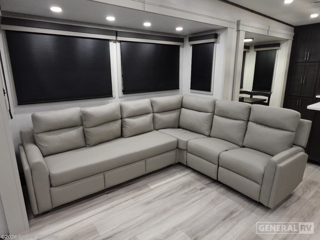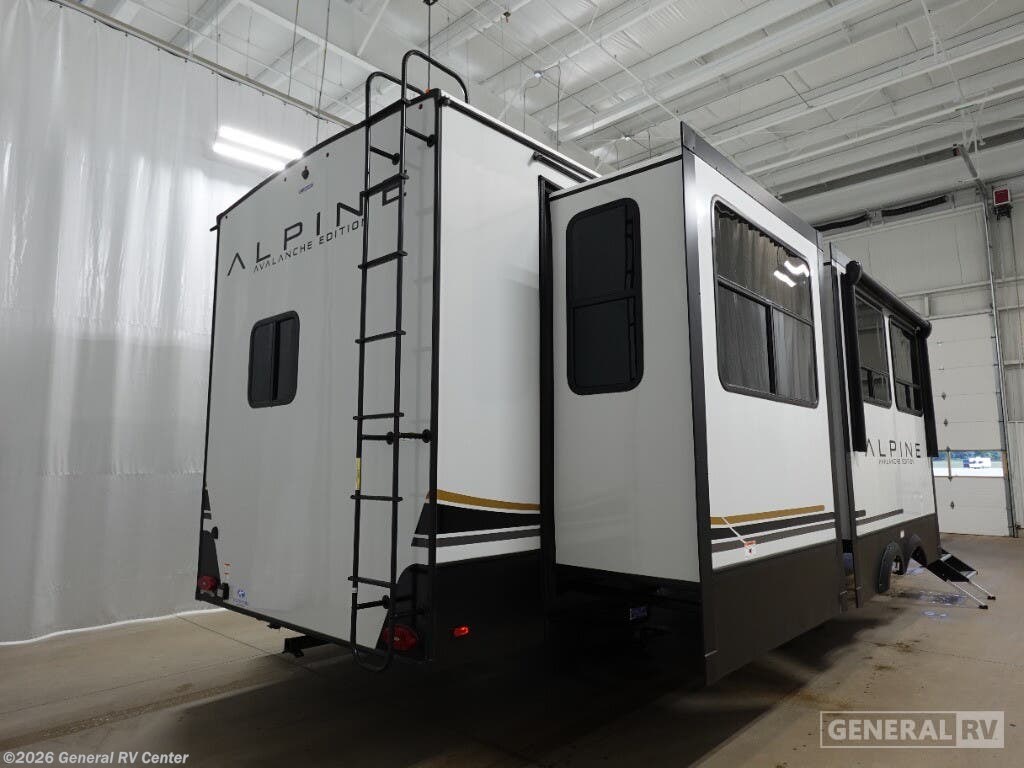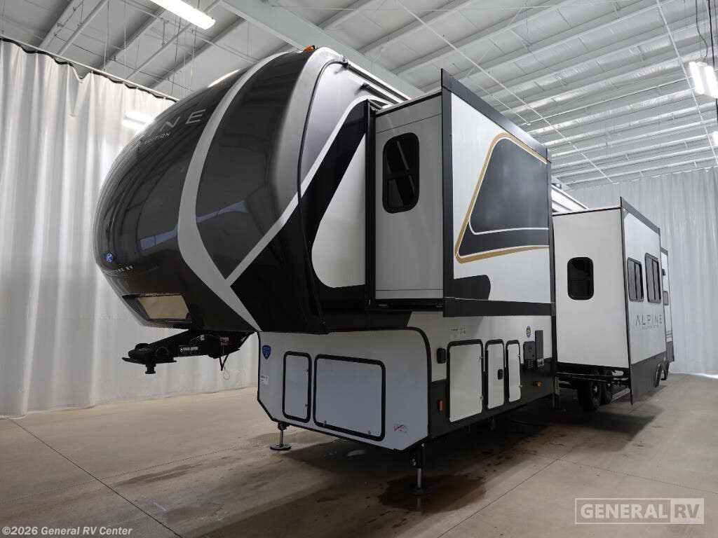 Experience the pinnacle of luxury and comfort with the 2025 Keystone Alpine 366LS. This exquisite fifth wheel is designed to elevate your adventures with its spacious and well-thought-out floorplan. The rear kitchen, equipped with a full-size electric refrigerator and a three-burner cooktop, offers a perfect space for culinary creations. The large island provides ample counter space, making meal prep a breeze. The center living area is a haven of relaxation, featuring the largest L-shaped sofa and recliners that invite you to unwind after a day of exploration. The front bedroom is a sanctuary of rest, boasting a king-sized bed with storage underneath and a master closet that’s prepped for a washer and dryer. The center bath, with its stylish plastic and glass shower, ensures convenience and privacy. With five slides, this RV offers expansive living space, and the dual powered retractable awnings extend your outdoor enjoyment. Whether you're embarking on a weekend getaway or a cross-country journey, the Alpine 366LS promises an unforgettable experience. For more details and to see this beauty in person, visit your nearest General RV dealership.