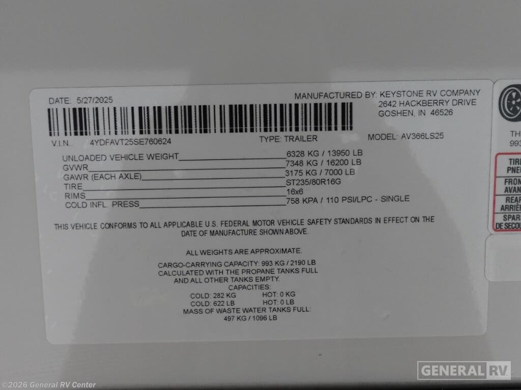 Request More Info on this 2025 Keystone Avalanche 366LS Offered for sale by General RV Center